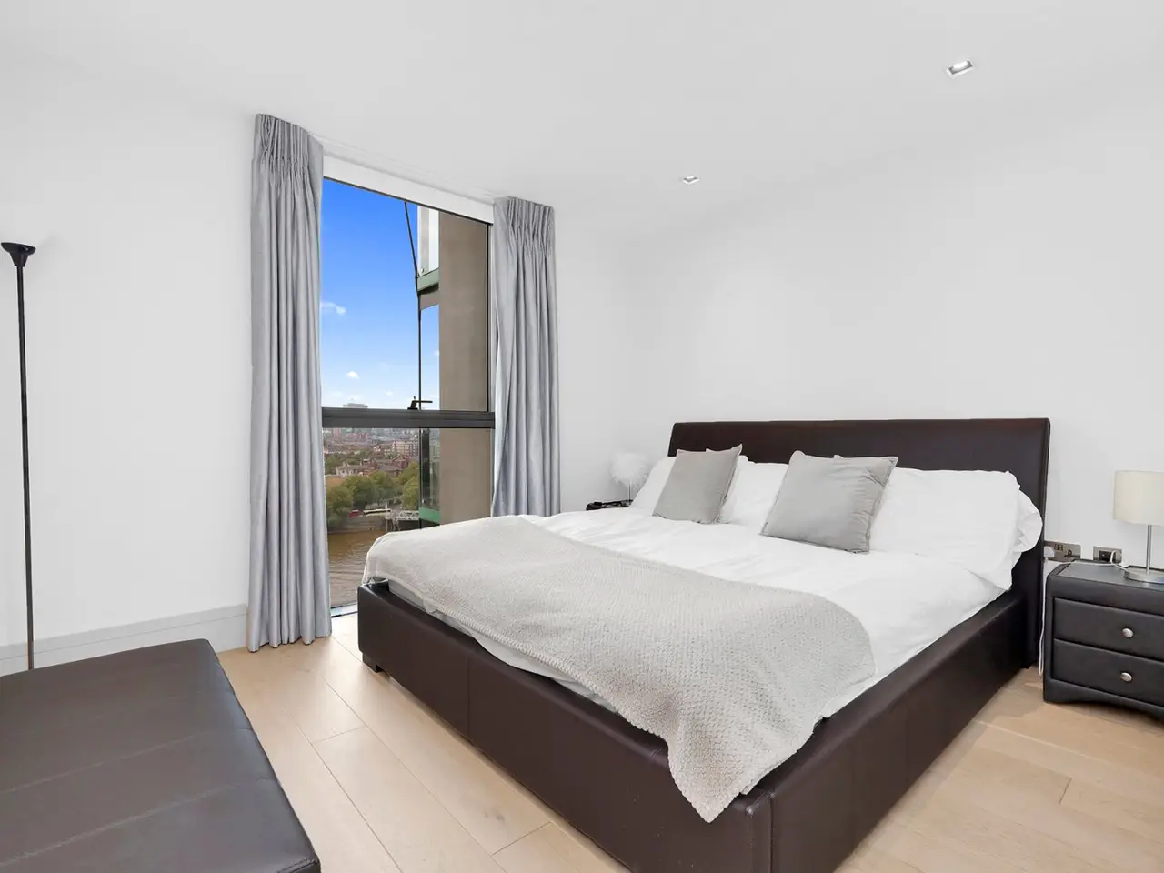 Contemporary two double bedroom, two bathroom apartment on the 12th floor of this new development. Residents benefit from shared roof terrace and concierge service. This apartment enjoys direct river views from its private balcony and comprises walk-in wardrobes to the master bedroom, two luxury ensuite bathrooms, large reception room and an open plan integrated kitchen. Merano Residences is located on the South Bank of the river and within easy reach of Westminster, Chelsea and Knightsbridge as well as being only 5 minutes’ walk to the transport links of Vauxhall with its excellent rail, tube and bus services. The river taxi pier at St George Wharf is also within easy reach. • Two double bedrooms • Two luxury bathrooms • 7th floor (with lift) • Concierge service • Shared roof terrace • Balcony with riverside views • Leasehold: 990 years • Service charge: £5,333.62 per annum • Ground rent: £750 per annum