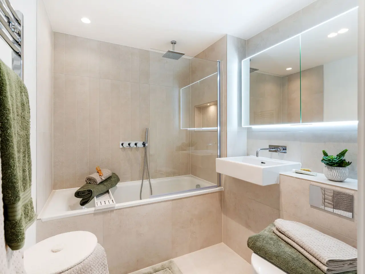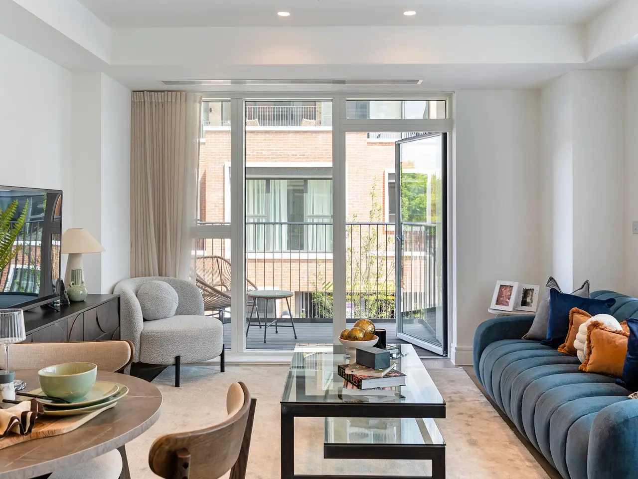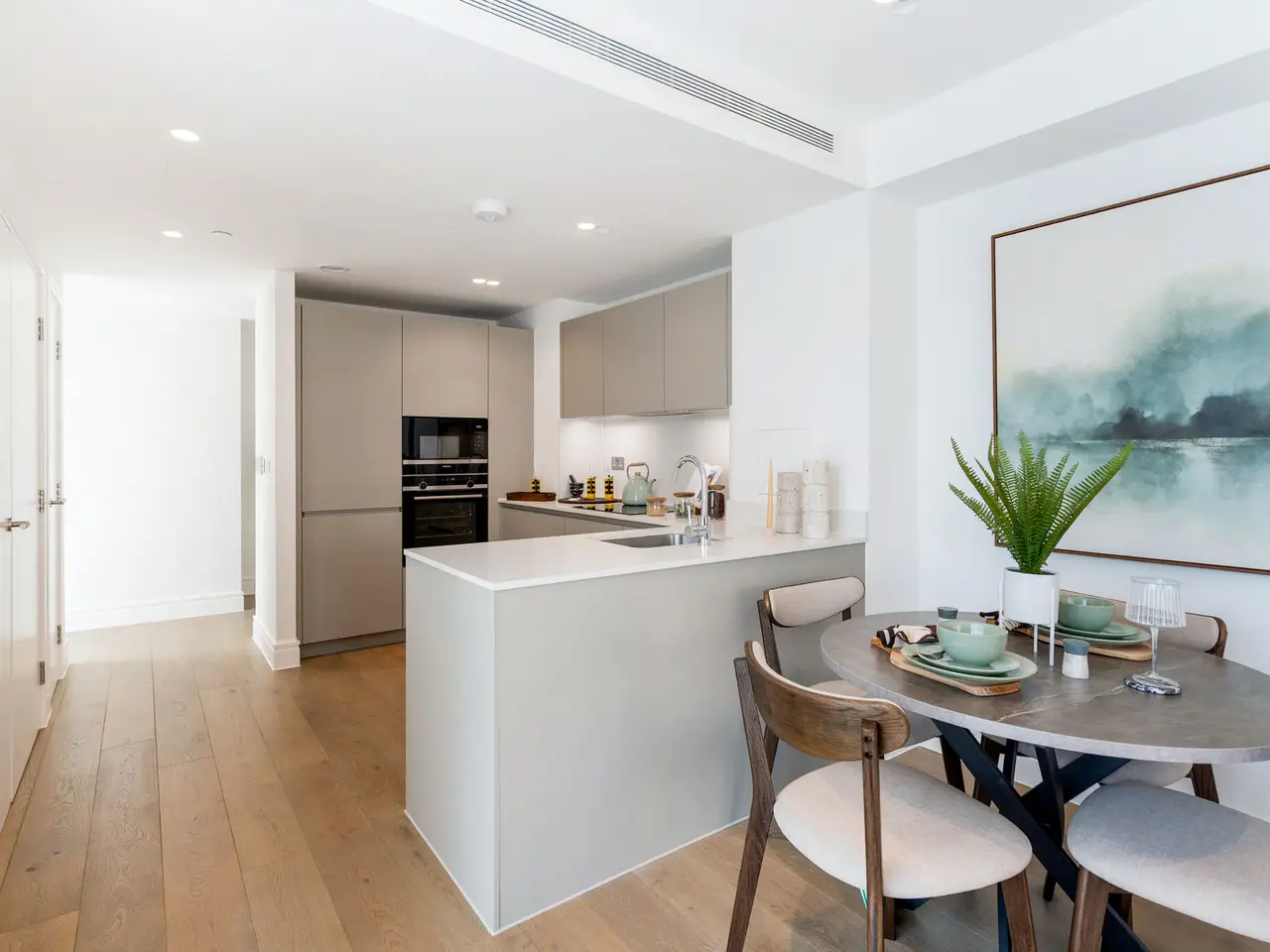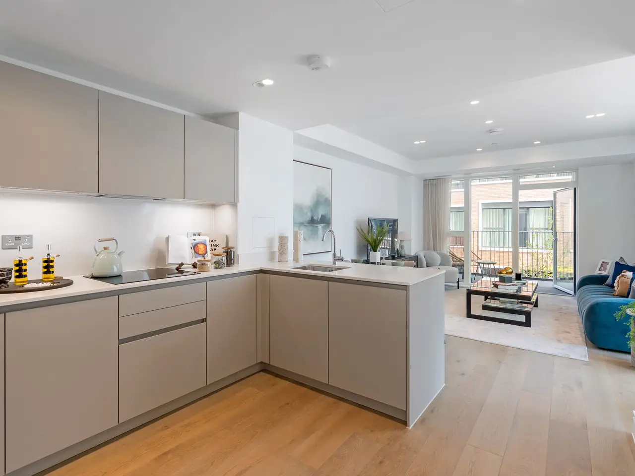 Welcome to Chiswick Green, where effortlessly sophisticated interiors by Millier meet the perfect blend of modern urban living in a beautiful green setting. Spilling onto the park at the heart of Chiswick, this contemporary collection of 1-, 2- and 3-bedroom apartments, penthouses and townhouses is arranged across four elegant buildings. This spacious two-bedroom apartment in Empire House spans 889 sq ft with a total balcony area of 65 sq ft. The thoughtfully designed layout features an open-plan living room and kitchen with access to a private balcony, plus two well-appointed bedrooms including a master bedroom with en-suite bathroom, and an additional family bathroom, offering comfortable modern living with excellent natural light throughout. Developed by Great Marlborough Estates, this award-winning development features apartments with elegant interior palettes complemented by high specifications of natural finishes and tactile detailing. Each home includes integrated Siemens appliances and private balconies or terraces. Residents benefit from a beautifully decorated entrance lobby with dedicated concierge service on the ground floor of Empire House, plus access to communal roof terraces. Four spacious penthouses with wraparound terraces sit atop Empire House, boasting sublime, uninterrupted views across London, including the City skyline and Canary Wharf. Two additional penthouses in Stoll House also feature private terraces and exacting design. The exclusive terrace of four contemporary family homes tucked behind Chiswick High Road provides flexible living over three storeys with private roof gardens, and parking is available for selected units. Perfectly positioned for connectivity, a short walk takes you to Chiswick Park Station (3-minute walk) for Underground services. Alternatively, choose Overground or Mainline trains from Gunnersbury Station (10-minute walk) or Chiswick Station (8-minute cycle). Enquire now to arrange a private viewing. Service Charge: estimated £4.88 per sq. ft. per annum Ground Rent: Peppercorn Tenure: 999 year leasehold