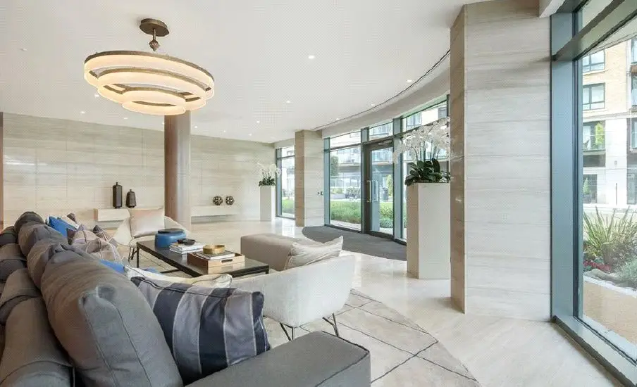 A luxurious two double bedroom, two bathroom apartment, with its own parking space, on a beautiful riverside location and unparalleled views of the river and landscaped gardens from a private balcony. Located on the 2nd floor of the sought after riverside development, Goldhurst House in Fulham Reach. Comprising fantastic open plan reception area with floor to ceiling windows leading on to a private balcony. Kitchen is fully integrated. Master bedroom has an ensuite and both bedrooms benefit from fitted wardrobes. Owners can further benefit from air conditioning, underfloor heating, wood flooring, guest cloakroom, 24-hour concierge, swimming pool, gym, sauna, spa, cinema, snooker room, wine cellar, virtual golf, and an additional storage room. Shops, bars and restaurants are within the development, which is situated within easy reach of Central London and walking distance to Hammersmith Underground station, which has the Circle, District, Piccadilly and Hammersmith and City lines. Has its own parking space. • Two double bedrooms, two bathrooms (one en suite) • Private balcony with river and garden views • Own parking space • Air conditioning and underfloor heating • 24/7 concierge, cinema room, virtual golf, snooker room • Swimming pool, gym, sauna, spa, wine cellar • Excellent location • Lease: 993 years