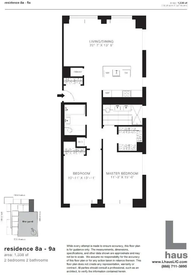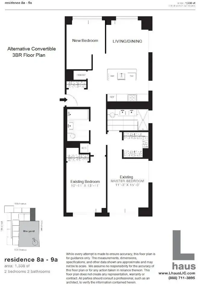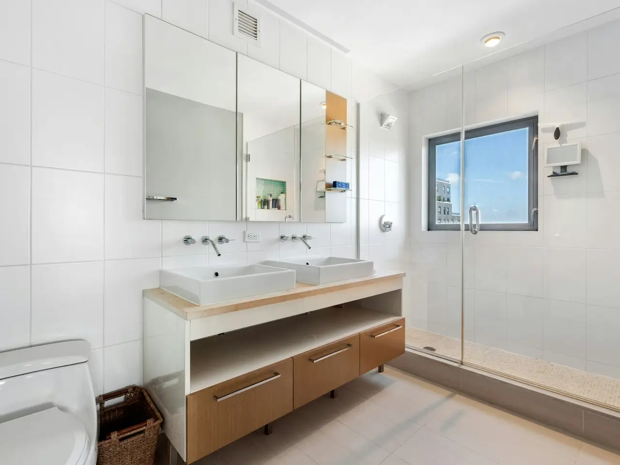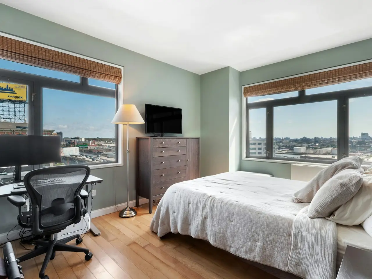 This spacious and bright convertible 3-BR home is now available at The L Haus Condominium in Long Island City! Currently configured as a 2BR/2BA, unit 8A offers space, ample storage, and bright natural light throughout. At 1,338 sq.ft., this is one of the largest 2BRs on the market in LIC right now. The living room is so big and the layout so efficient, it could easily be converted into a 3BR. Even better, this corner apartment offers three exposures--East, South, and North--which allows for an open and airy feel to the entire unit. Triple-pane windows, hard wood floors, and Bosch W/D add to both the luxury and functionality of this apartment. The modern chef's kitchen features Bosch and Liebherr appliances, a large counter space with breakfast bar, and the rare and wonderful window in the kitchen. The primary bedroom has both eastern and southern exposures and is large enough to fit a King-sized bed. Adding to the luxury, the primary bedroom includes a walk-in closet and an ensuite bathroom with double sinks, Kohler fixtures, limestone counter, and natural light. The second bathroom includes a deep-soaking Vita Bath Venetian tub, porcelain tile flooring, and a custom white-lacquered vanity. L Haus is stacked with high-caliber amenities, including a 24-hr concierge, live-in super, cold storage, a 1,700 sq.ft. fully-equipped gym, yoga room, playroom, and a 1,500 sq.ft. community room. The gym and community room both feature floor-to-ceiling windows that overlook the building's private "backyard." The backyard boasts more than 10,000 sq,ft. of landscaped green space, including a rolling lawn, tables, lounges, and an outdoor kitchen and grill. No other condo building in the neighborhood includes this unique community space. Additional amenities include garage, bicycle storage, dog bathing area, and laundry room. L Haus has a 15-year 421A tax abatement in place until June 30, 2025. Conveniently located just minutes from the 7 train, Grand Central and midtown Manhattan are just one stop away. The E and G trains are also nearby and take you to Manhattan and Brooklyn. Long Island City is one of the hottest neighborhoods in New York City, and many of the best LIC restaurants, shops, and cafes are all close proximity to the L Haus. Look no further for your new home. Reach out to schedule a showing today!