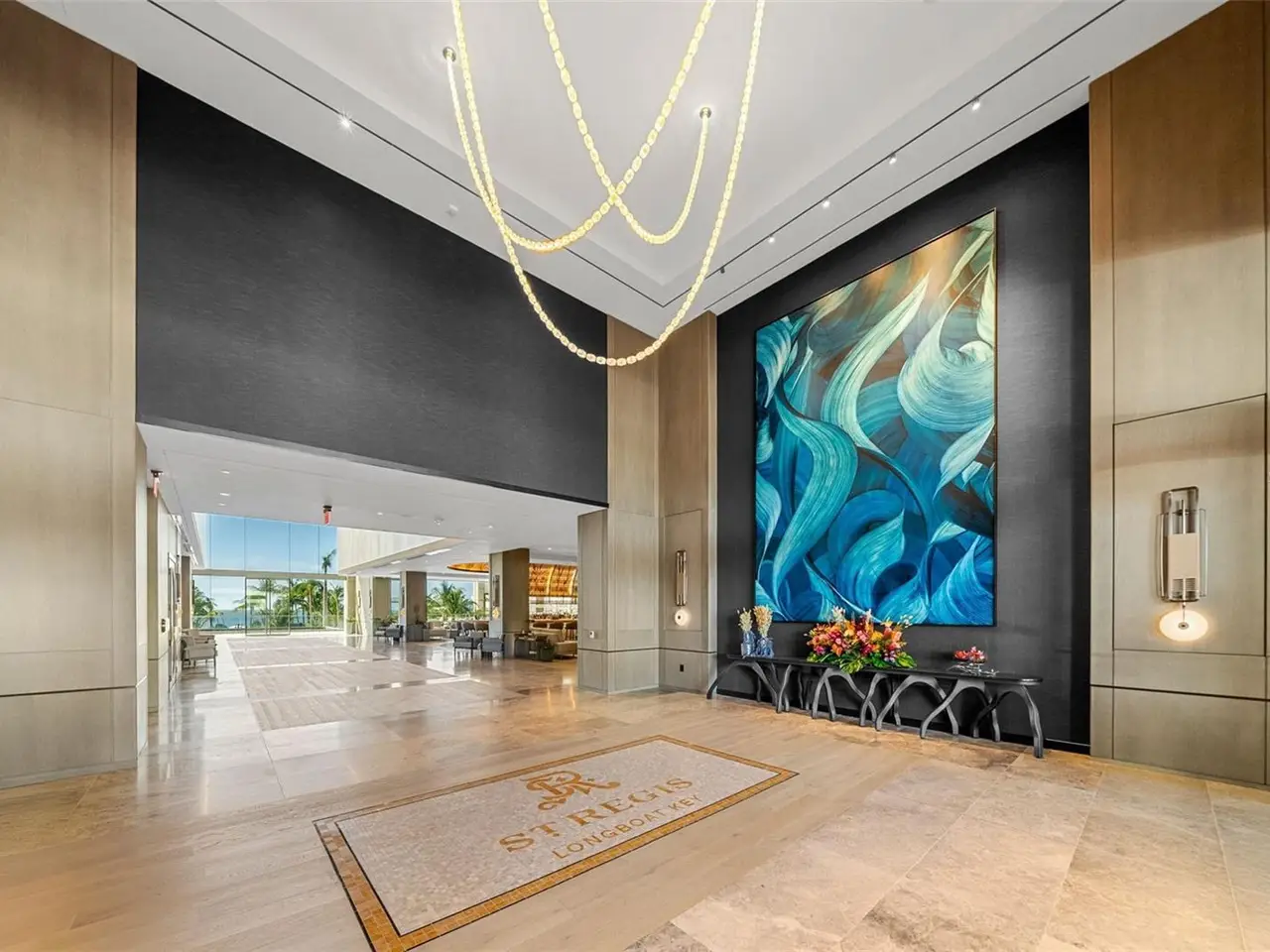 Welcome to this elegant and gracious one bedroom residence at the highly coveted and exclusive Residences at The St. Regis Longboat Key. Enter from your private elevator into a dramatic living area with high ceilings and expansive glass featuring spectacular views of Sarasota Bay. The living area opens to a large outdoor terrace with a Wolf gas grill for easy entertainment. The chef's kitchen is equipped Poggenpohl cabinetry, top-of-the-line Wolf and Sub-Zero appliances, including a gas cooktop, double ovens, microwave, large refrigerator and beverage center. If you don't feel like cooking, just order room service from one of The St. Regis's esteemed dining venues. The Earth finishes were curated by Marc Michales Interior Design and were selected to remain timeless. The owner's suite is luxurious and opens to the outdoor terrace for your morning coffee. Relax after a day at the beach or saltwater lagoon in the spa like bathroom boasting double vanities, water closet with Toto bidet toilet, soaking tub and oversize shower with seamless glass enclosure. The floor plan was altered to include two full bathrooms. Nestled within the first branded residential community and ultra-luxe 5 star resort on the Gulf of Mexico. The Residences at The St. Regis Longboat Key blend legendary service with the allure of a seaside getaway. Spanning over 17 acres with 800 feet of direct beachfront, this community offers unparalleled amenities, including the signature St. Regis Butler and Concierge services, a world-renowned St. Regis Spa, in residence dining. Resident only amenities include a clubhouse, fitness center, pool/spa and beach area. Enjoy your private resident only amenities, while having access to all the resort has to offer. Live like you are on vacation all year round!