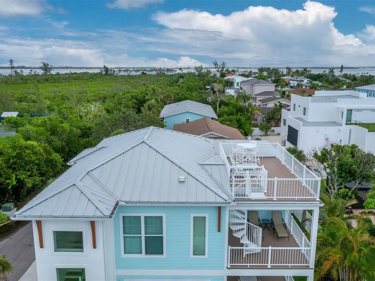 What’s better than a newly constructed home (2024) on fabulous Longboat Key? With carefully selected designer finishes, High Impact Sliding Doors and Windows throughout, four bedrooms and four and a half baths, covered balconies on every floor, including an amazing rooftop deck with gorgeous views: this is the epitome of luxury living meets laid back coastal charm! Everything has already been done for you to create the perfect island retreat. The elevated second floor living area features a gorgeous chef's kitchen with a large island that is open to the dining area and great room, all done up in coastal hues. Walls of sliding doors offer abundant light and open to a nice sized outdoor covered deck that overlooks the pool and offers the perfect balance for indoor, outdoor entertaining. One of the 4 bedrooms with an ensuite bath and an additional half bath are on this floor. The third floor living area features 3 more of the bedrooms, and all have their own ensuite bath. A covered porch is here for yet another outdoor moment and is the perfect spot to sit and enjoy the Florida breezes at the end of the day. A winding staircase on this deck leads to the showstopper rooftop balcony with stunning views to Sarasota Bay and partial views to the Gulf of Mexico. From here you can see just how close you are to the gorgeous stretch of beach, with your deeded beach access, just a short walk down the street. Uniquely positioned mid-key on the island, you are surrounded by multiple restaurants, shopping, and a true opportunity for an extraordinary way of life. Whether you are looking for your forever home, a vacation spot to call your own or an investment rental property, this may well be the one for you.
