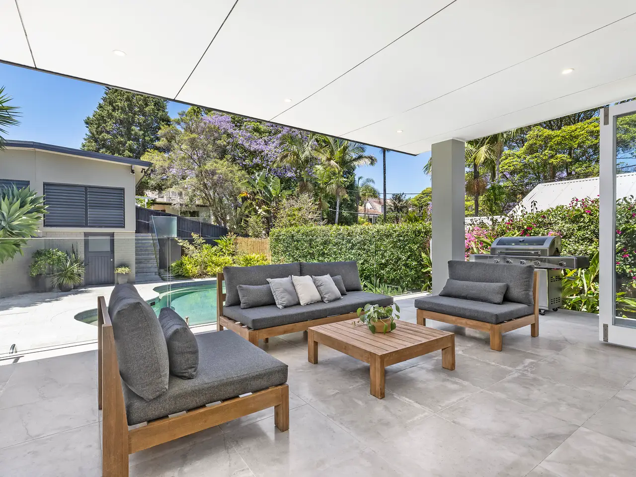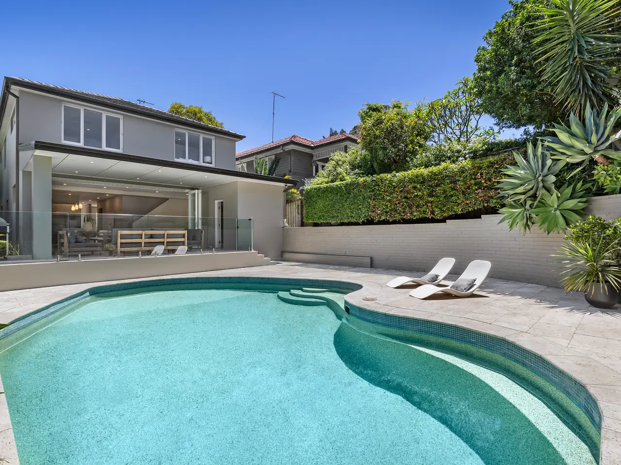 Custom built and selling for the very first time, this double storey home has many special qualities and offers blended indoor/outdoor living, entertaining ease and convenience in a prestigious neighbourhood. Flowing interiors feature superb functionality with wide windows capturing generous natural light and elevated leafy views, while a cul-de-sac laneway at the rear provides access to double garaging and a pedestrian shortcut through to Lane Cove Tennis Club, 'The Diddy', and village shops and buses on Northwood Road. Footsteps from a playground and Warraroon Reserve walking trails on the nearest corner, the home is impeccably presented and readymade for a growing family. - High ceilings, ducted r/c air con, gas bayonets and spotted gum floors - Bi-fold glass doors open to a covered patio for entertaining at the rear - Saltwater pool with heat pump and equipment room plus a firepit area - Spacious formal and casual living/dining zones, home office and study - Caesarstone kitchen w/ island bench, quality appliances, gas cooking - Five bedrooms including one on ground floor with adjacent bathroom - Upstairs master with built-ins, ensuite and a Jacaranda-view balcony - Main bathroom including a bath, near-poolside laundry/powder room - Easycare gardens feature sandstone, limestone and travertine paving - Auto double garage with rear lane access, separate pedestrian gate