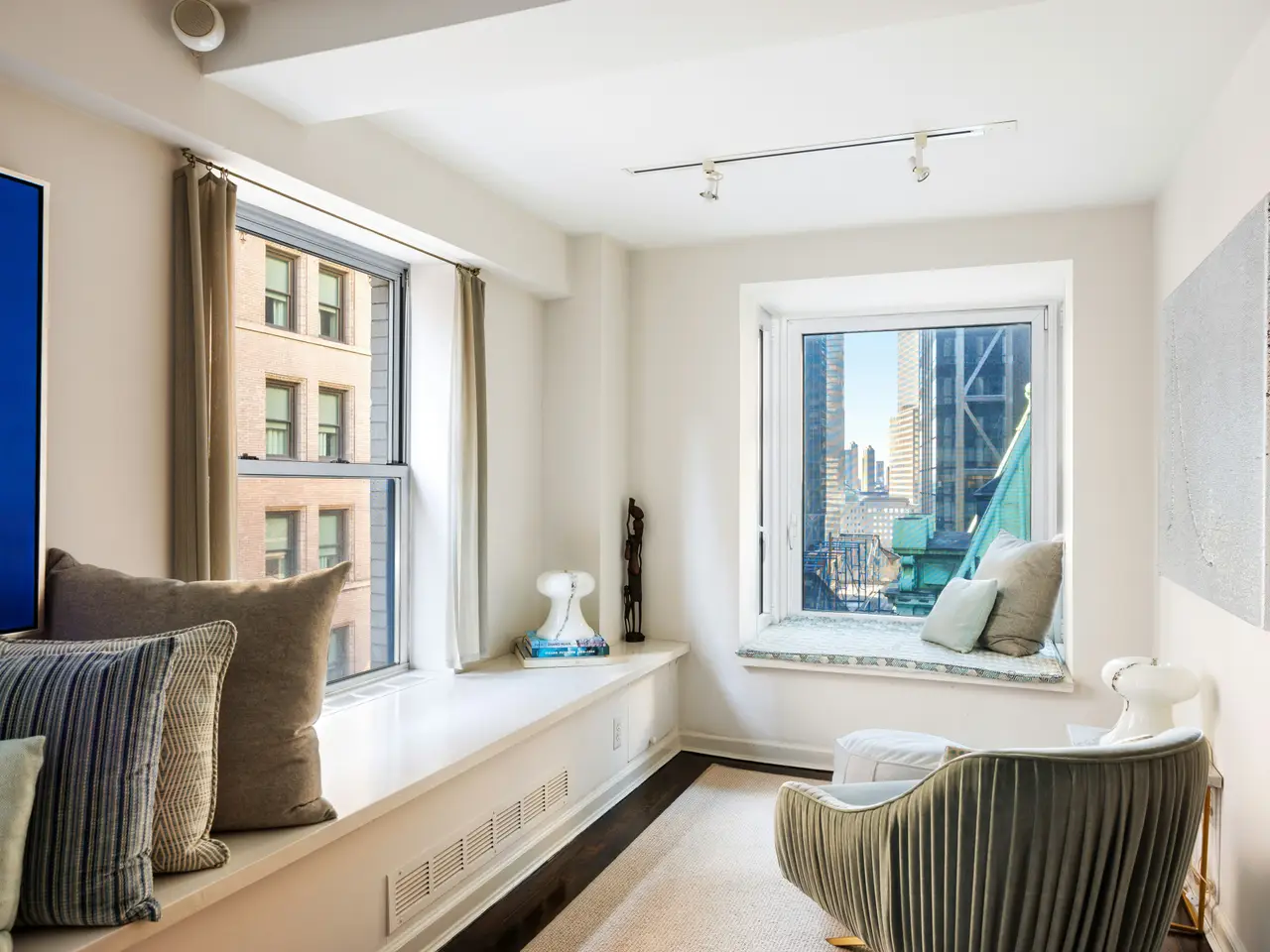 Upon stepping into Apartment 15E, it's immediately apparent this is far from a cookie-cutter space. This home harmoniously combines the warmth and charm reminiscent of a cottage in the Hamptons with the distinctive elements of urban loft living, all within the welcoming embrace of a well-managed cooperative boasting a dedicated staff. The apartment's four exposures let natural light into every room. The entryway, perfect for receiving packages without compromising your personal space, features a cozy bench ideal for shoe removal. It also sets the tone for a home that values privacy and convenience. The foyer and the practical closet-lined hallway lead you to the heart of the home with a sense of anticipation. Venture further to discover the living room, a vast and luminous space with four south- and west-facing windows, defies expectations. Spanning 30 by 25 feet, its size is generous by any standard, yet the room's distinct feel, amplified by its unique layout and natural light, truly sets it apart. The kitchen is a testament to modern luxury, equipped with top-tier appliances, water filtration, solid wood cabinetry, natural stone countertops, and a convenient dining bar, ensuring seamless integration into the living space. This kitchen is also a discrete alcove within the space, offering a modern twist on traditional designs; it allows for culinary activities to be tucked away, ensuring the living area remains a pristine retreat for entertaining. Nearby, an enchanting nook with a west-facing oversized bay window and seating ledge invites quiet reflection or lively social gatherings, enhanced by a quintessential NY view. Other distinctive features of this space are the beamed ceilings that add character, and extensive built-ins in the dining area adding further functionality, transforming the dining area into a space that rivals the formality and elegance of a dedicated dining room. The primary bedroom suite is a sanctuary of light and serenity, boasting north-facing windows and an ensuite bath with a spacious shower. There is also a full dressing room, complete with a whimsical sleeping loft offering layers of privacy and charm, making it a coveted space for relaxation and play for both owner and guests. A second full bathroom serves the dual purpose as 'day head', while an upstairs bedroom presents endless possibilities with its large walk-in closet and direct access to the roof deck. This apartment's comfort is further enhanced by a dual-zone HVAC system equipped with advanced ionization filters, ensuring a tailored environment for all occupants. 176 Broadway epitomizes the essence of meticulous care and management, highlighted by a comprehensive ten-year series of capital enhancements. This period of renovation has touched every corner of the building's infrastructure, ensuring that vital components such as elevators, water towers, heating systems, and the building's very roof and fa ade have been updated or replaced to meet modern standards. The lobby and hallways have been elegantly refurbished, creating welcoming common areas that residents can take pride in. Practical amenities have been thoughtfully improved as well; on-floor laundry facilities, bike storage, and private storage cabins cater to the convenience and needs of all residents. Perhaps most notably, the communal roof deck offers a serene escape, showcasing sweeping views and providing a space for relaxation and community. Together, these updates and amenities enhance the living experience at 176 Broadway and demonstrate a deep commitment to maintaining the building's quality and heritage for years to come. Nestled in a dynamic downtown locale, surrounded by iconic eateries, shopping destinations, and transit options, this building marries the elegance of Beaux-Arts architecture with the vibrancy of New York City living. Apartment 15E is not just a residence but a lifestyle, offering an unparalleled blend of comfort, convenience, and charm.