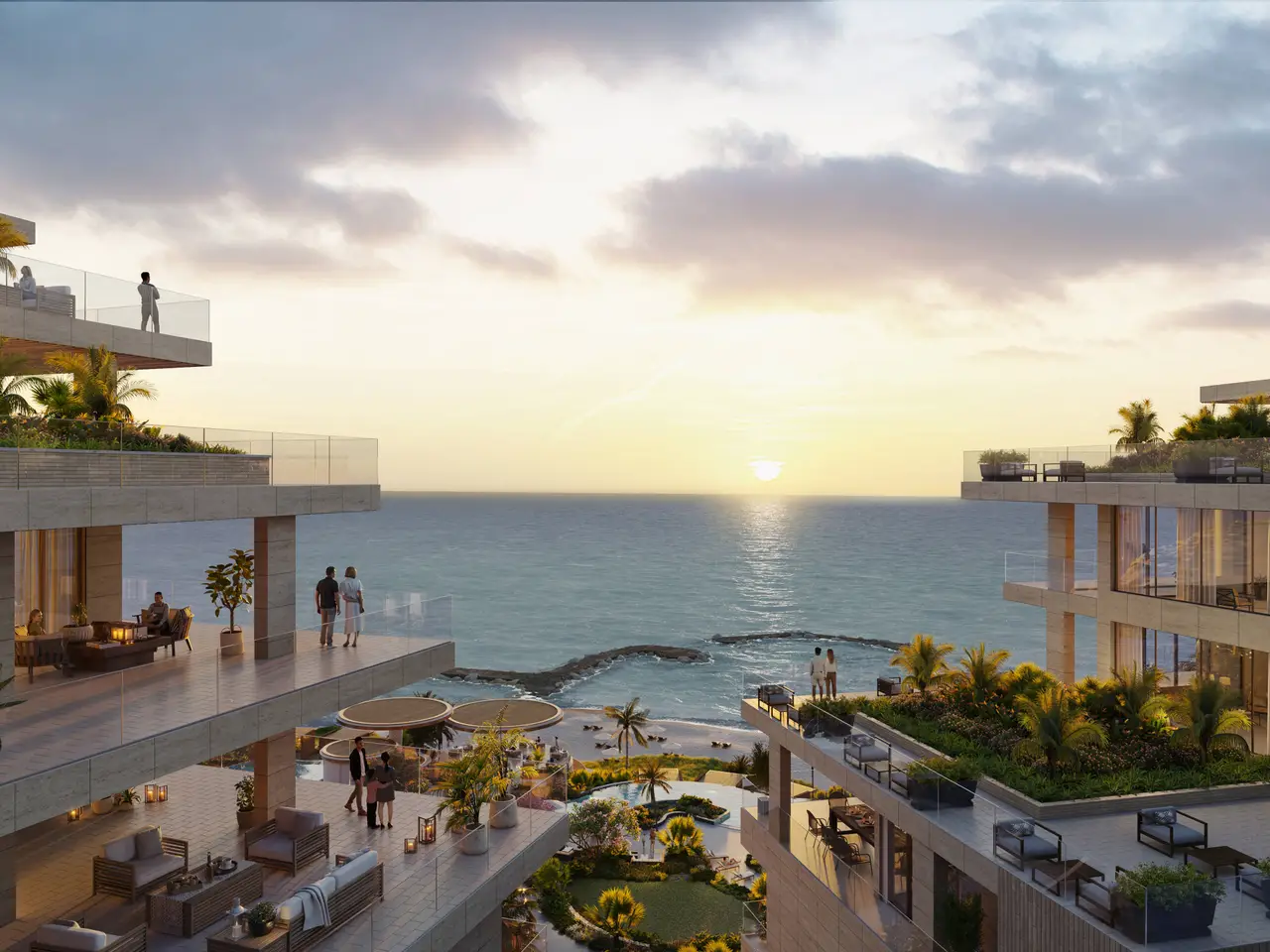 Oceanfront terrace with stunning sunset views
