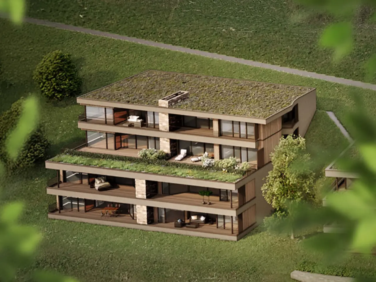 Just minutes from the city of Lucerne, Suncrest occupies a prime position on the sunny slopes of Kriens-Sonnenberg. Defined by light, nature, and sweeping views of Mount Pilatus, this exceptional residential ensemble offers a lifestyle of tranquility and modern comfort. The two houses, Solis and Lumen, form the northwest edge of the new development, directly bordering meadows, orchards, and forest. Eleven exclusive condominiums combine contemporary architecture, generous layouts, and refined materials to create a sense of space and ease – just a short distance from Lucerne’s vibrant city life. Highlights - 3.5–4.5-room apartments, 154–262 m² (living & usable area) - South-facing with panoramic Pilatus views - Elegant materials & open-plan design - Master suite with dressing room and ensuite bath - Loggia or terrace with select units - Direct lift access from underground parking - Geothermal heating & cooling, heat recovery ventilation Flooded with natural light and designed with timeless elegance, Suncrest offers the feeling of a private home – with all the advantages of contemporary condominium living, just minutes from the heart of Lucerne.
