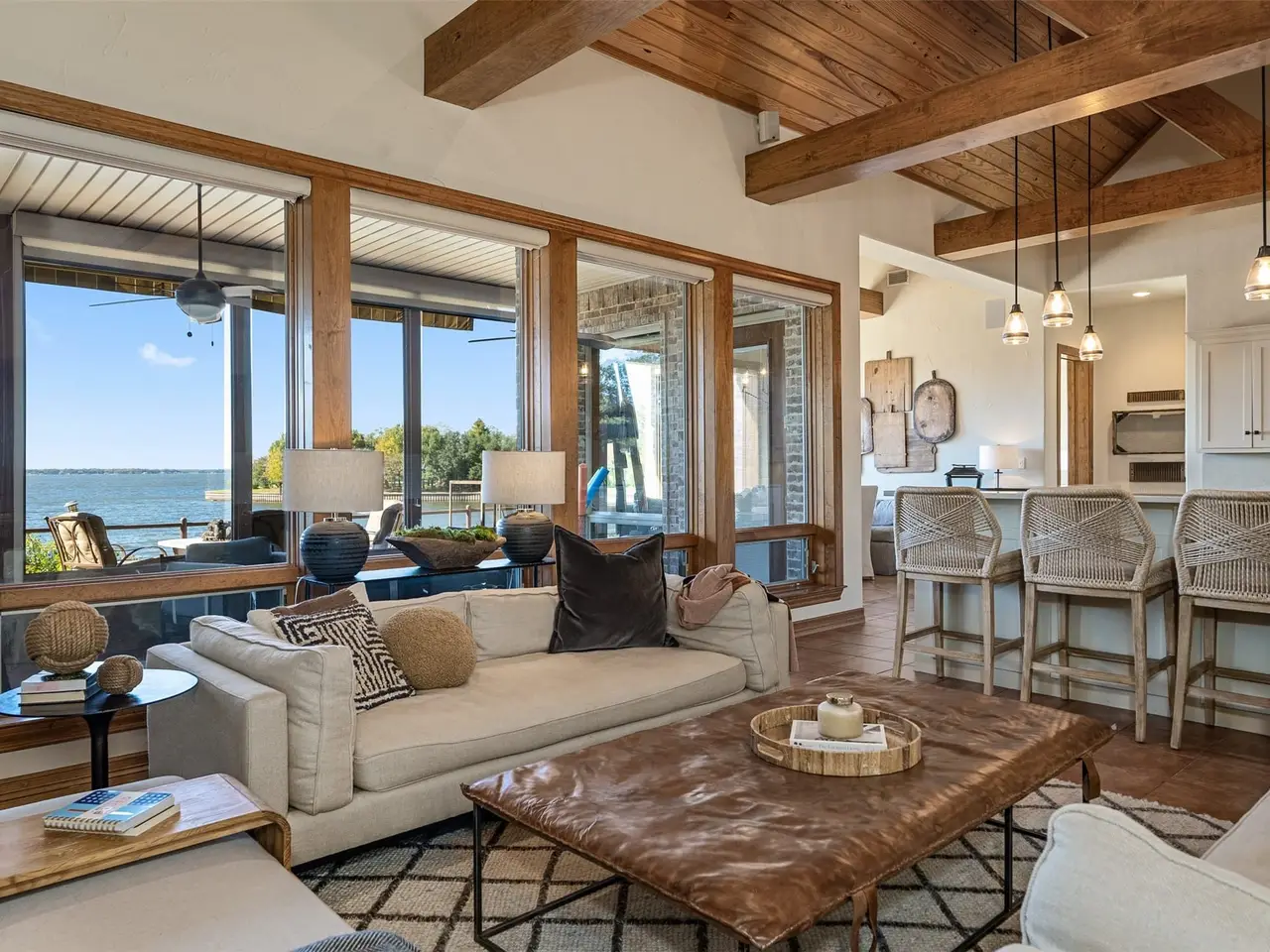 **Luxurious Lakefront Living at Pinnacle Golf Club** Welcome to your dream home at Pinnacle Golf Club, the premier golf club community on the shores of Cedar Creek Lake-- this breathtaking 4-bedroom, 3.1-bathroom retreat impeccably blends modern design with unparalleled comfort. Constructed with a durable steel frame, this home is a testament to quality and endurance. The heart of the home features an inviting open living concept where the living room, kitchen, and dining space seamlessly unite, all framed by the serene backdrop of the lake. The primary bedroom, adjoining this main gathering area, offers a tranquil sanctuary overlooking the water. The three car garage offers a unique elevator that provides access to tons of attic storage, with possibilities to be finished for additional space. A see-through fireplace connects the main living area to a second living space configured as a game room complete with a full bar. Three additional bedrooms, including darling custom modern bunk room, branch off from the game room. The screen porch extends the home's living space outdoors and the patio has a retractable awning and cozy outdoor fire pit overlooking the cove, ideal for swimming. Boating enthusiasts will revel in the newly constructed boathouse, completed in early 2024, perfectly positioned for easy and direct access to the water, which is as pretty as it is functional with wood ceiling, recessed lighting and full spider control system, metal roof, and two PWC lifts. Come see for yourself and make this extraordinary property your forever home. Ask agent for more info! One year social membership to Pinnacle Club included with purchase. Buyer responsible for HOA fee of .002% of sales price at closing. Club offers restaurant and clubhouse, access to our 24 hour fitness center, enjoyment of the junior Olympic size swimming pool, use of the tennis courts, and attendance to a wide variety of special member events.