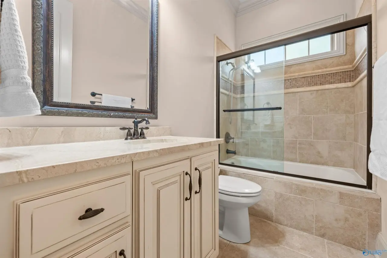 Elegant & comfortable 4 bedroom 5 bath Waterford home! Exquisite details: luxurious (iron doors, custom ceilings, extensive moldings) & practical (spray foam, 2 tankless water heaters, 2 laundries, walk-in closet & full bath for each bedroom). Open layout foyer to formal dining & great room. Dream kitchen w/48 gas stove w/2 ovens, wall oven w/waming drawer & microwave, built in 60 refrigerator, island w/prep sink & custom pantry. Primary suite wows w/beautiful bath & custom closet, 2nd bedroom on main. Upstairs: equipped media room, 2 bedroom suites, bonus room w/wet bar. 3 season porch completes this amazing home. Storm shelter in oversize garage. New roof! View to HOA lakes & paths.