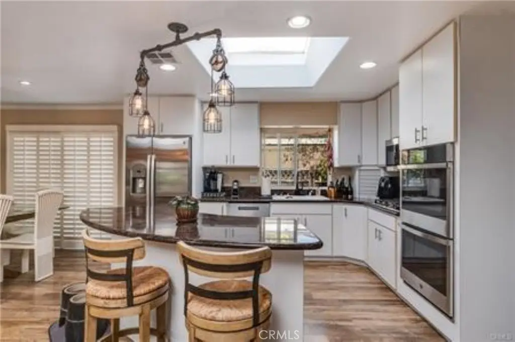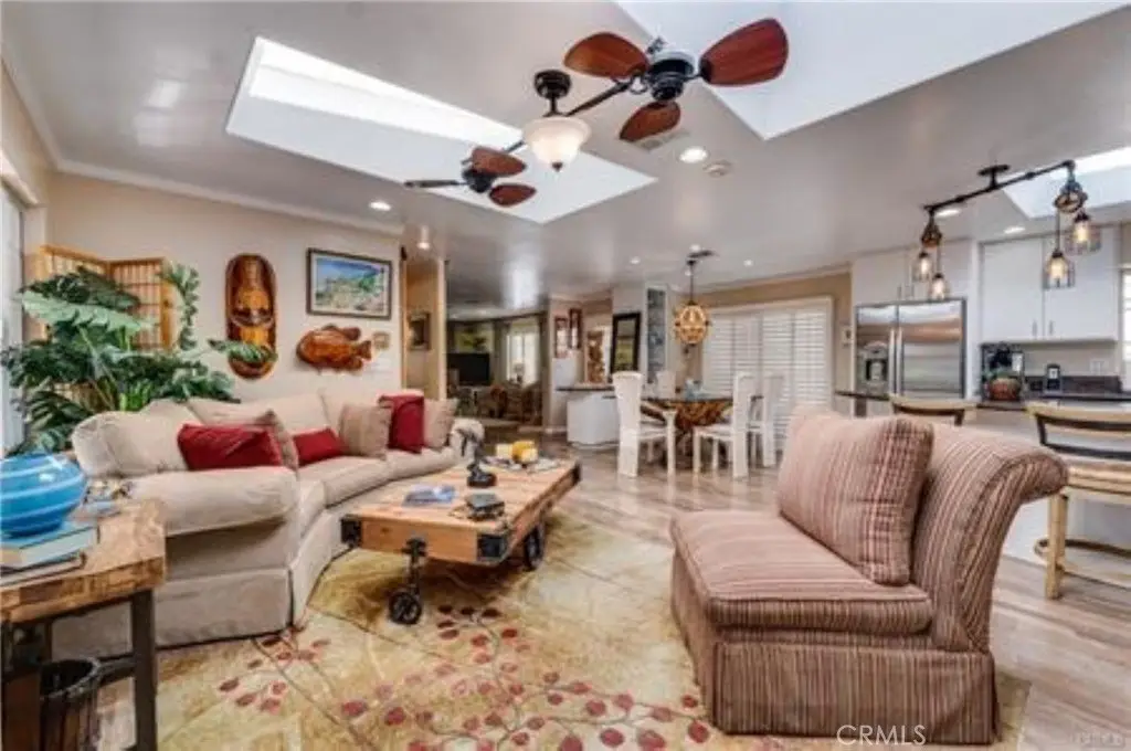 Welcome to a stunning, completely remodeled 2-bedroom, 2-bath open-concept home on the highly desired bluff of Paradise Cove in Malibu. This beautifully landscaped property features a modern 2-year-old aluminum roof with solar panels, an updated electrical panel with a designated exterior plug for a generator, and copper plumbing and electrical wiring throughout. The gourmet kitchen boasts new stainless steel appliances, including a double oven and 5-burner cooktop, granite countertops, custom cabinets, and a spacious granite-topped island with ample storage. A large skylight and custom lighting enhance the bright and inviting atmosphere. The dining area, adorned with a custom chandelier and China cabinet, opens to an expansive Trex deck via a sliding door. The family room, designed for entertaining, features two skylights and a double ceiling fan, while the large living room showcases an ocean-themed frieze at ceiling framed with marine rope, a corner travertine-faced gas fireplace, and art alcoves. The updated guest bath includes wainscoting, an enclosed shower over the tub, and ample storage. The open and bright primary bedroom has sliding doors leading to a back Trex deck and deck-level spa. The primary bath features a large walk-in shower with designer tile, a quartzite-topped custom dual sink vanity, and a skylight. Throughout the home, you'll find engineered wood flooring, recessed lighting, and plantation shutters. Outdoor amenities include a large built-in BBQ with a counter and seating area, a Rumford gas fireplace, a well-lit large shed with interior electrical outlets and shelving, and over 190 square feet of concrete-lined rolling storage hidden by sliding doors. The property is equipped with under-coach lighting for easy night access, a kayak storage bay, and extensive outside lighting controlled from the inside. Additional features include a tankless water heater, a covered driveway, an outside hot and cold water shower, a golf cart with its parking and charger, and an earthquake cradle for safety. This exceptional property offers unparalleled luxury and comfort in a prime Malibu location. Don't miss this incredible opportunity to own this beautiful retreat in the heart of Paradise Cove, Malibu. Embrace the beauty of coastal living and make this enchanting home yours today! Low space rent.