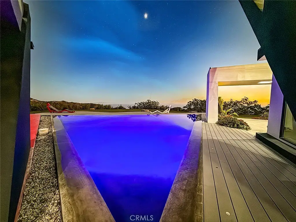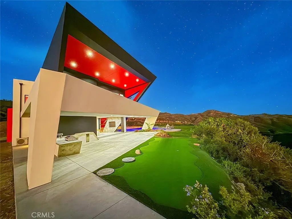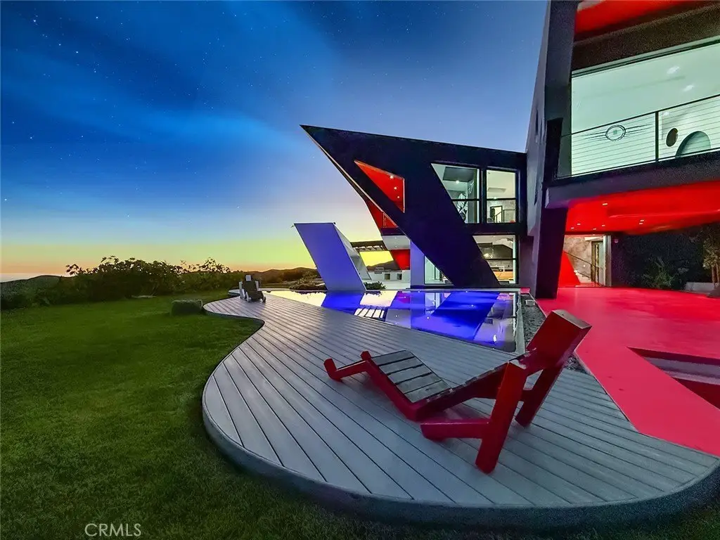 Soaring jetliners & sweeping views spanning Catalina to Santa Monica set the stage at The Aviator—a striking, architecturally significant Malibu escape by renowned designer Amit Apel. Perched at the end of a private road at the top of the world, this bold, modern sanctuary draws inspiration from the grace and precision of flight. A sculptural interplay of steel, crisp architectural lines, and signature circular windows create a sense of movement and lift, giving the residence its unmistakable presence. This one-of-a-kind retreat is equipped with a state-of-the-art Smart Home system that controls lighting, security, pool, and solar system—all automated & effortlessly accessible. Through the glass entry, the home unfolds into a dramatic open-concept living space defined by custom art, rich textures, & dynamic architectural forms. Floor-to-ceiling retractable walls vanish to frame endless ocean, canyon, and skyline views, blurring the line between indoors & out. The sleek European-inspired kitchen features premium stainless steel appliances, a six-burner gas cooktop & spacious center island with a breakfast bar with custom seating. A warm yet sophisticated ambiance flows seamlessly into the dining and family areas, where bold style and comfort unite. The main level also includes a bedroom with and a circular window. Ascending the stairs, 2 luxurious primary suites await. The first boasts sweeping ocean & Malibu city vistas and an Art Deco–inspired bath with stunning glass-enclosed shower, soaking tub, dual sinks, & mountain views. The second primary suite mirrors the home’s refined design language, showcasing bold lines and vibrant accents, with panoramic views of Santa Monica and the Pacific. Its spa-like bath offers a deep soaking tub, dual sinks, and custom shower. A third “hidden” room serves perfectly as an office, lounge, or creative studio. The outdoor living spaces are a world unto themselves. A dramatic triangular zero-edge pool and spa appear to float above the horizon. The fully outfitted outdoor kitchen—complete with BBQ, grill, refrigerator & pizza oven—invites unforgettable alfresco dining. Additional highlights include a private putting green, oversized fire pit with flame wall, and an open-air movie screening area for evenings under the stars. Designed for both spectacular entertaining and self-sustaining independence, The Aviator offers the rare ability to live comfortably “off the grid.” This is more than a home—it is a statement of vision.