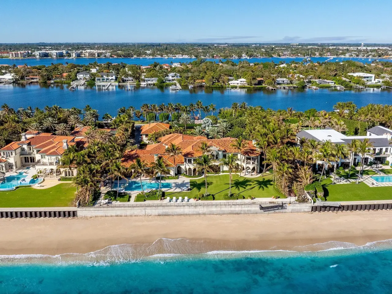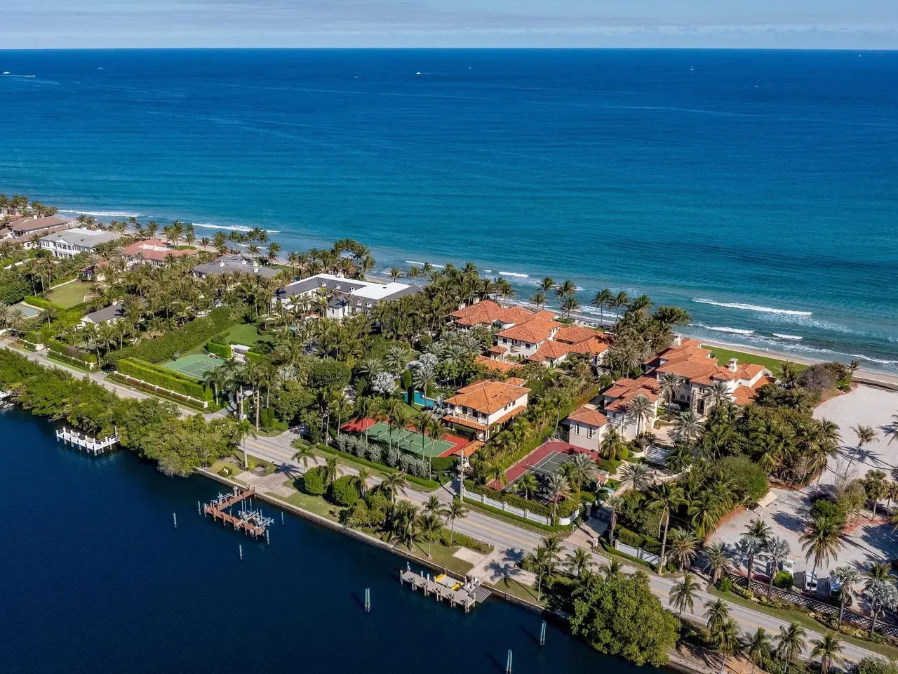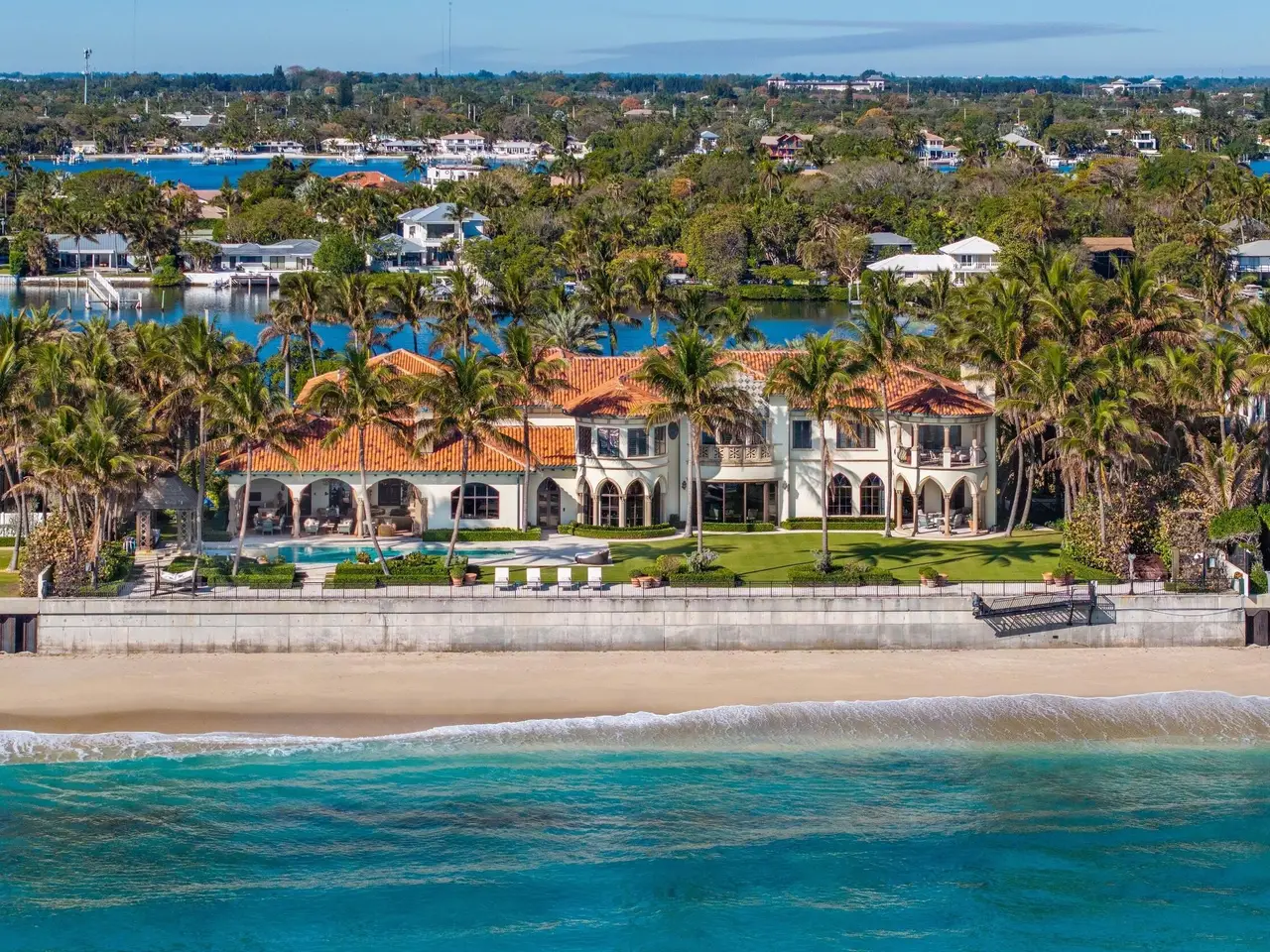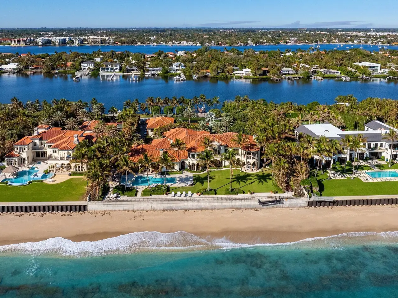 Unrivaled in scale, beauty, and prestige, this ocean-to-lake Mediterranean marvel is a one-of-one triumph of architectural elegance in the heart of Manalapan. Encompassing over 2 lush acres with an astonishing 215 feet of direct ocean frontage, this substantial compound is bar none one of the most important residences to ever become available in South Florida. Set within the ultra-private enclave of Manalapan, this palatial estate spans nearly 28,000 square feet across a grand main structure, a separate guest house, and a dedicated security house. With 9 lavish bedrooms and 16 impeccably appointed bathrooms, every inch of this property has been curated for refined living on a world-class scale.