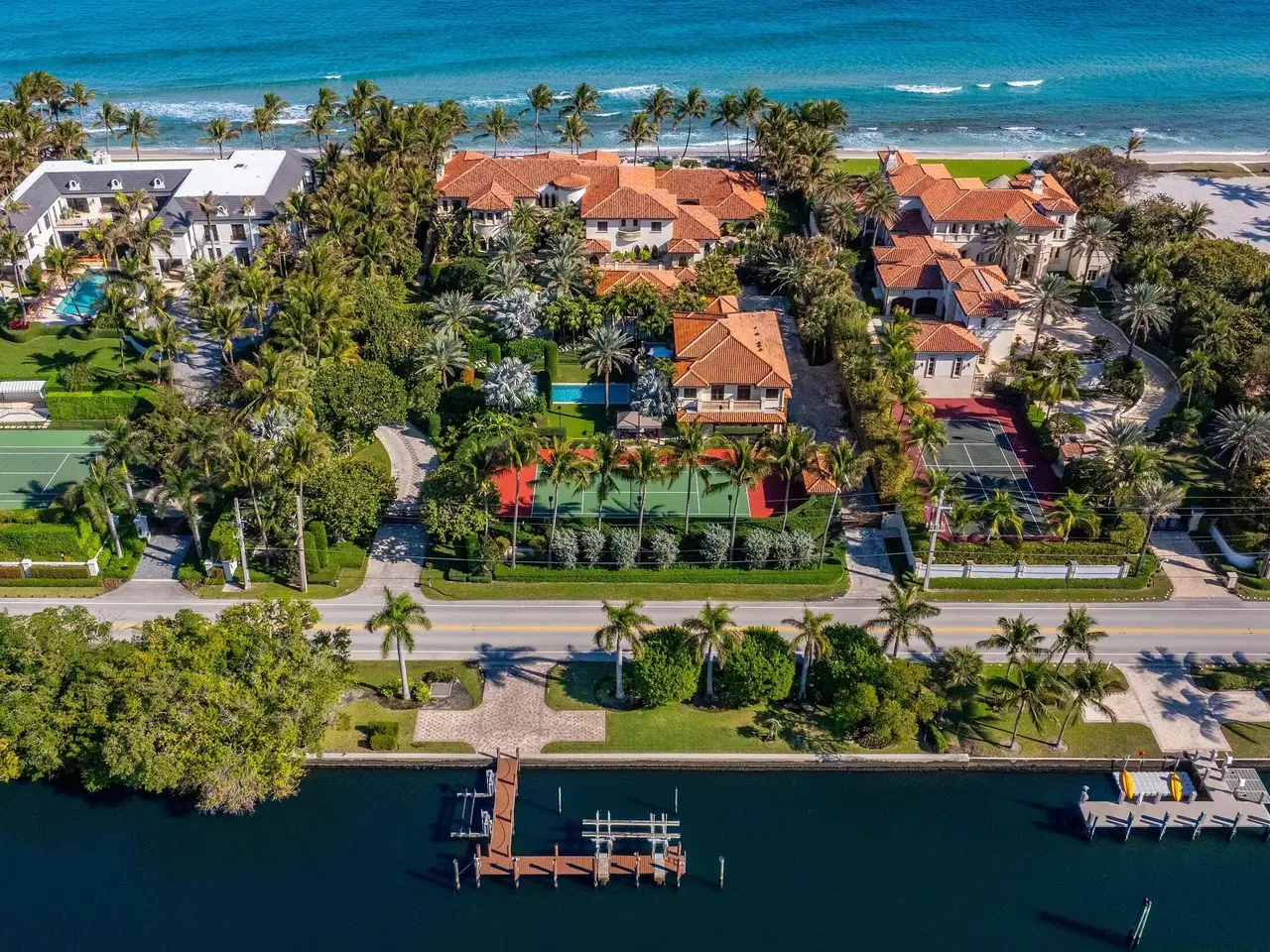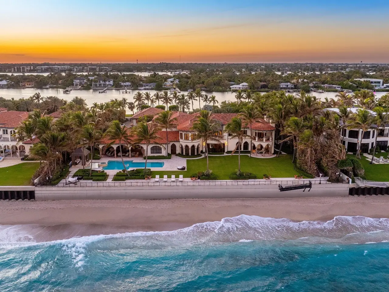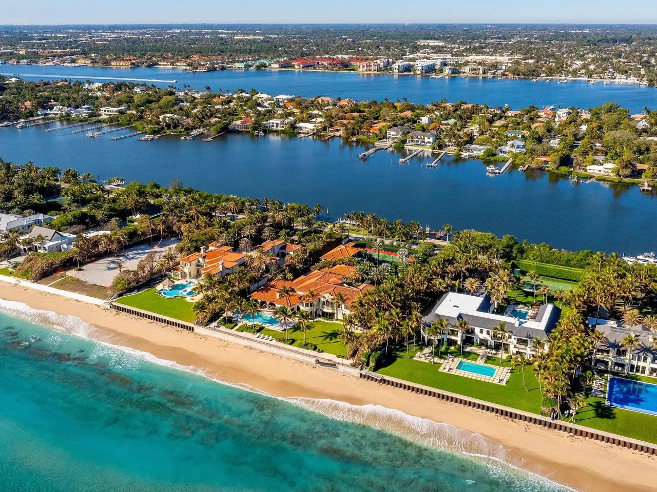 Unrivaled in scale, beauty, and prestige, this ocean-to-lake Mediterranean marvel is a one-of-one triumph of architectural elegance in the heart of Manalapan. Encompassing over 2 lush acres with an astonishing 215 feet of direct ocean frontage, this substantial compound is bar none one of the most important residences to ever become available in South Florida. Set within the ultra-private enclave of Manalapan, this palatial estate spans nearly 28,000 square feet across a grand main structure, a separate guest house, and a dedicated security house. With 9 lavish bedrooms and 16 impeccably appointed bathrooms, every inch of this property has been curated for refined living on a world-class scale.