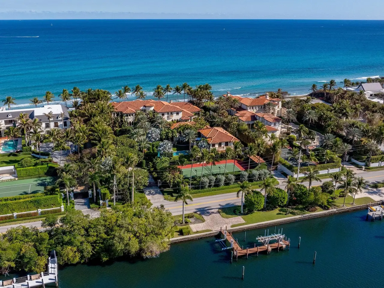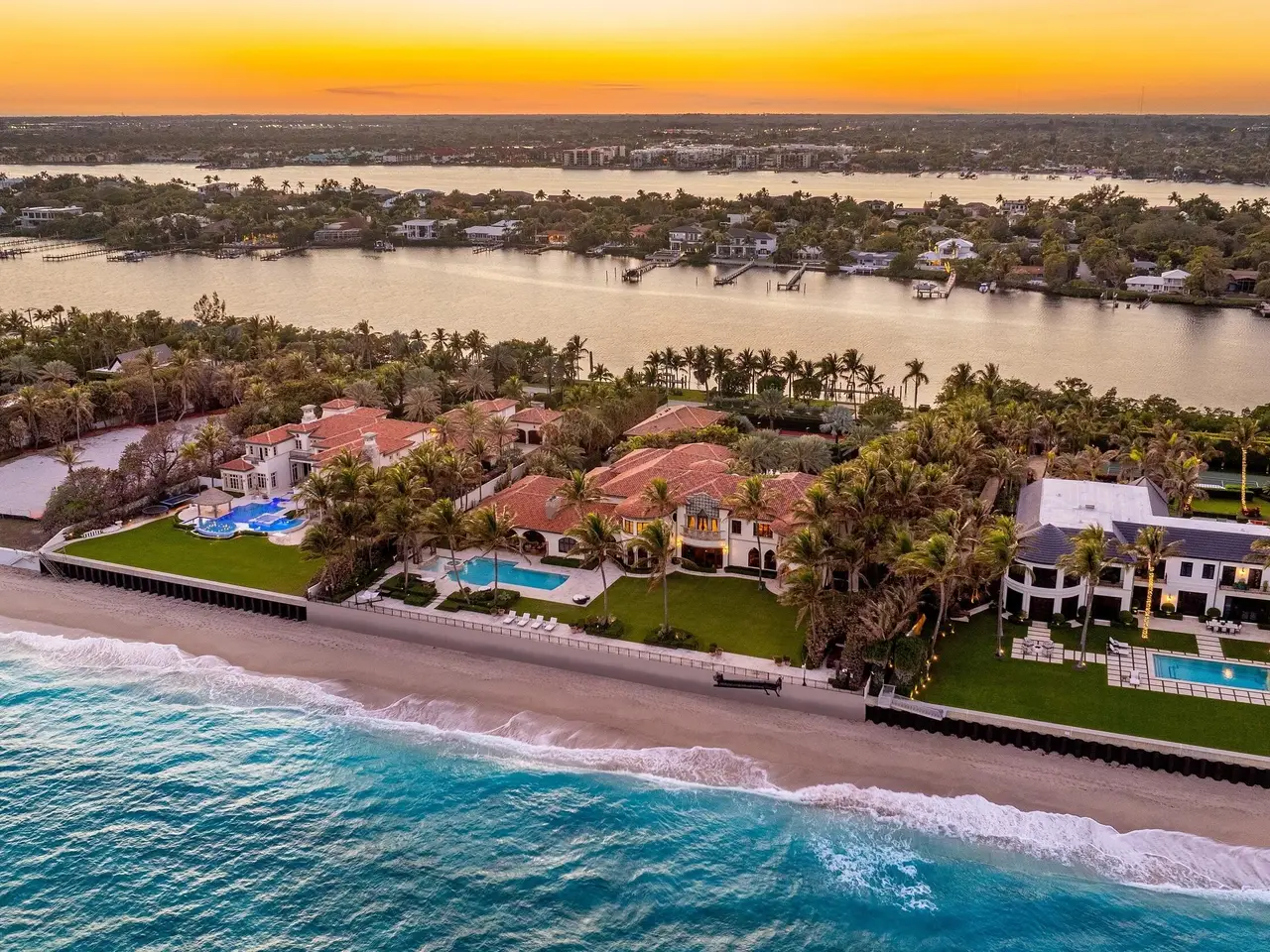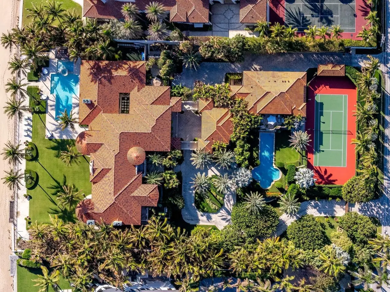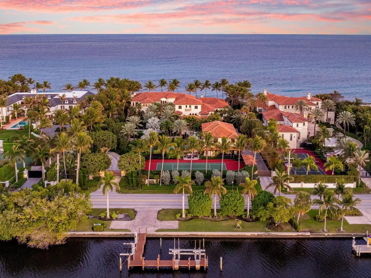 Unrivaled in scale, beauty, and prestige, this ocean-to-lake Mediterranean marvel is a one-of-one triumph of architectural elegance in the heart of Manalapan. Encompassing over 2 lush acres with an astonishing 215 feet of direct ocean frontage, this substantial compound is bar none one of the most important residences to ever become available in South Florida. Set within the ultra-private enclave of Manalapan, this palatial estate spans nearly 28,000 square feet across a grand main structure, a separate guest house, and a dedicated security house. With 9 lavish bedrooms and 16 impeccably appointed bathrooms, every inch of this property has been curated for refined living on a world-class scale.