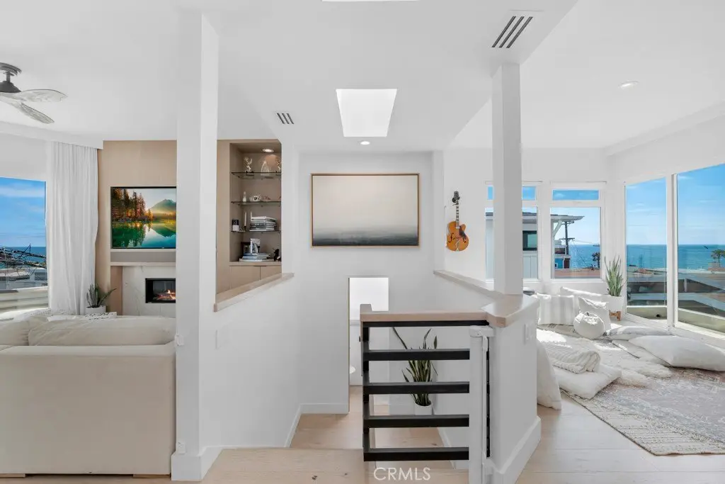 YOUR PRIVATE ARCHITECTURAL CONTEMPORARY BEACH HOUSE AWAITS! BREATHTAKING, PANORAMIC 180-DEGREE WHITE WATER AND COASTLINE VIEWS FROM MALIBU TO PALOS VERDES! MAJOR REMODEL RENOVATION COMPLETED 2021! MODERN FLOORPLAN, ELEVATION AND DESIGN! PREMIUM LOCATION IN THE SAND SECTION OF MANHATTAN BEACH, JUST FOUR HOUSES UP FROM THE STRAND, JUST STEPS TO THE BEACH & BOARDWALK YET ELEVATED TO GIVE YOU THE MOST INCREDIBLE PANORAMIC VIEWS, THE PERFECT LOCATION! Luxury and effortless BEACH LIVING converge at 129 Moonstone Street, architecturally stunning, with TEN FOOT CEILINGS, contemporary (2,143 SQ FT) SINGLE FAMILY HOME. (NO HOA!) This rare residence sits quietly WEST OF HIGHLAND on a PRIVATE and QUIET STREET offering the ultimate in exclusivity and tranquility. Inside, nearly every inch has been thoughtfully reimagined for modern luxury, from the ten-foot ceilings and walls of glass to skylights to the wide-plank white oak hardwood floors and designer finishes throughout. The sun-lit, open-concept floorplan is ideal for sophisticated entertaining or laid-back coastal beach days, featuring a state-of-the-art chef's center island gourmet kitchen with quartzite stone countertops, Viking and Sub-Zero appliances, a wine fridge, dry bar with ice maker, and a seamless transition to indoor/outdoor dining on one of four private balconies. Retreat to the palatial primary suite with marble fireplace, TWO WALK-IN CLOSETS, spa-like bath with freestanding tub and oversized shower. ALL THREE BEDROOMS ARE ENSUITES and OVERSIZED with lavish, modern baths, and an additional versatile DEN/OFFICE ADDS flexible space for work or guests. Enjoy peace of mind and effortless living with a fully integrated SMART HOME SYSTEM--security, cameras, Sonos whole-home sound, lighting and climate--all controlled via Apple HomeKit. Additional highlights include a built-in marble fireplace entertainment center in living room, interior laundry room, tankless hot water heater, whole-home filtration and softener, central A/C and heat, recessed and under-cabinet lighting and ceiling fans throughout. The finished two-car garage with Tesla charger and extra storage adds convenience, while a city-funded undergrounding project (now in Phase 3 of 4 phases), promises future value and EVEN BETTER panoramic white water and coastline VIEWS! CAN BE SOLD FURNISHED. 'BRUSH-FREE NEIGHBORHOOD!' JUST MINUTES TO LAX. CONCESSIONS.