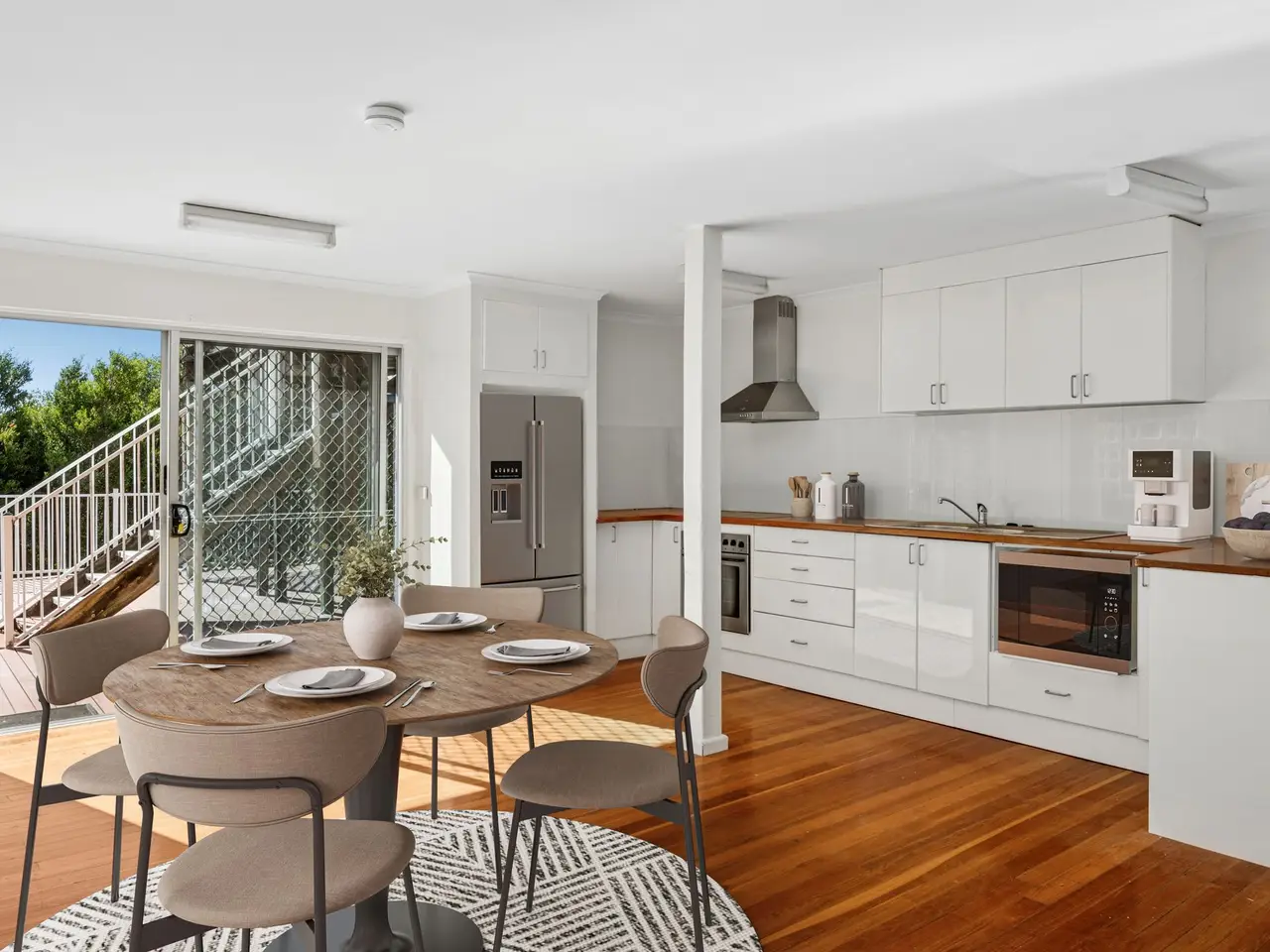 Tucked away in one of Manly Vale's most peaceful pockets, this character-filled dual-level home is a haven of space, privacy and versatility-perfect for growing families or multi-generational living. Beautifully presented and filled with natural light, it offers leafy outlooks from every angle and exceptional convenience just moments from schools, parks, cafés and transport. - Light-filled main living area with timber floors and a charming decorative fireplace - Three generous upstairs bedrooms with built-in robes; two fitted with air conditioning - Flexible lower-level retreat with private entrance, living area, kitchenette, bedroom and bathroom-ideal for in-laws, guests or teens - Two stylish bathrooms, including main with a combined shower and bathtub - Sunny, north-facing backyard with two elevated entertaining decks - Single lock-up garage plus an additional off-street car space - Classic high ceilings and timeless character details throughout - Easy access to Passmore Reserve, local playing fields and Manly Dam walking tracks - Just a short stroll to local schools, shops, cafés and city buses