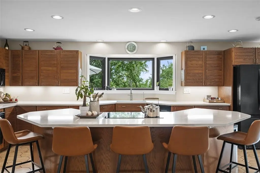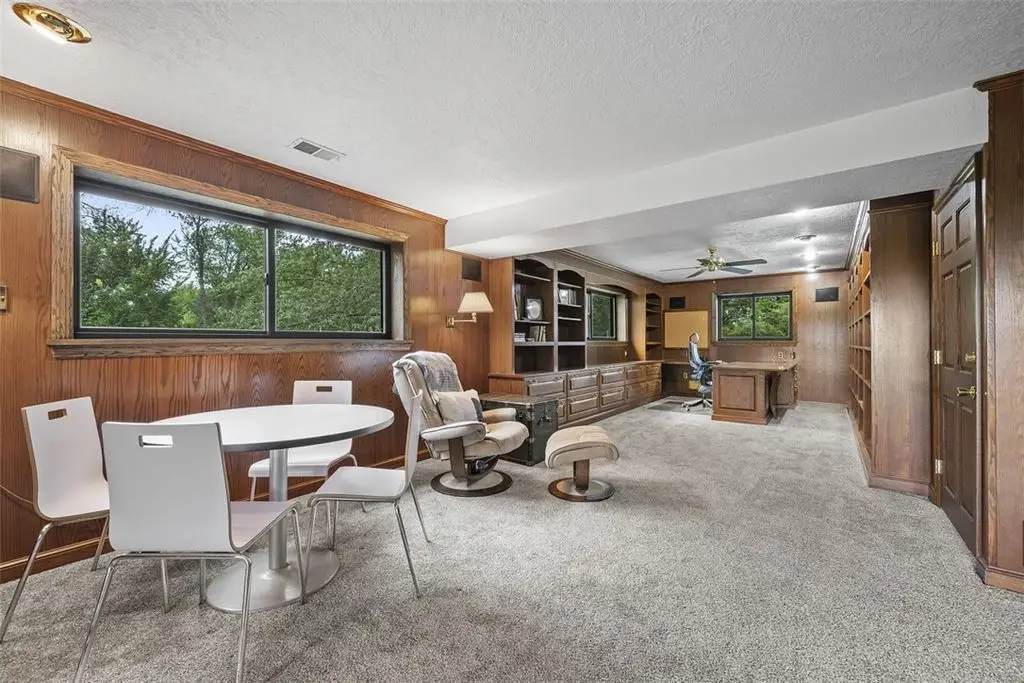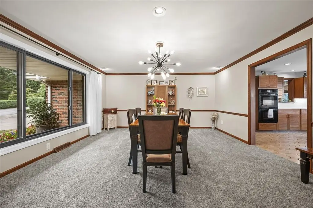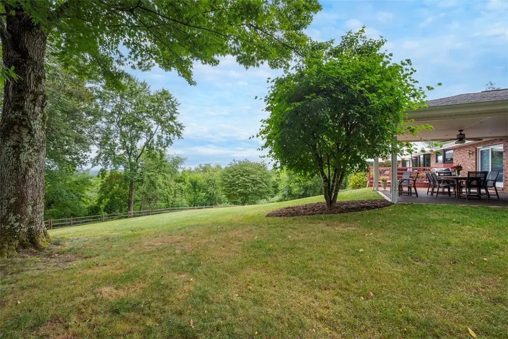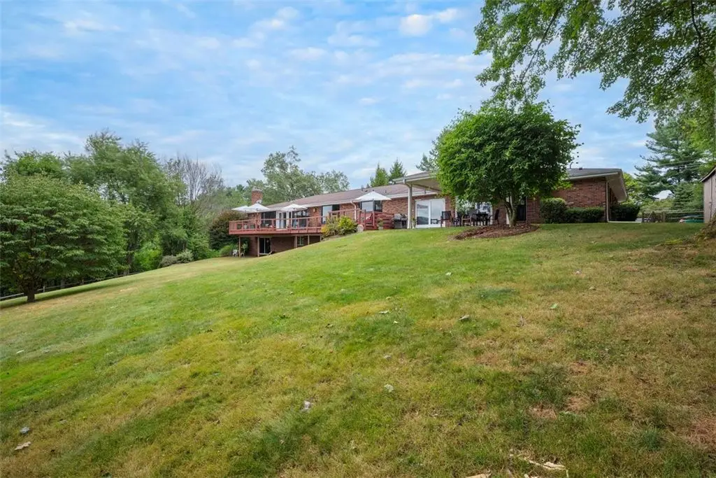 Nestled on 4.373 acres with breathtaking panoramic vistas, 1000 Pleasant Hill Road is a stunning 5-bed, 5-bath sprawling brick ranch offering over 5,000 sq ft of finished living space. Recently updated with new windows, quartz kitchen countertops, appliances, flooring, lighting, landscaping, and fencing, this home blends elegance and comfort. The grand foyer opens to a spacious dining room and a magnificent kitchen with abundant cabinetry, walk-in pantry, desk, and eat-in area. The expansive living room features a stone fireplace, wet bar, and deck access. A main-level sunroom and two powder rooms add convenience. The primary suite boasts a cozy fireplace, walk-in closet, and private bath. The lower level includes a large family room with pellet stove, storage, office nook, four bedrooms, and two full baths. Take a leisurely stroll on the path which leads to Knob Hill Park or enjoy the glorious sunsets from the covered patio overlooking the rolling countryside of Western Pennsylvania.