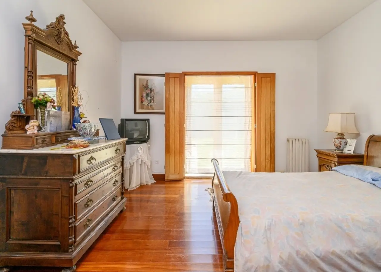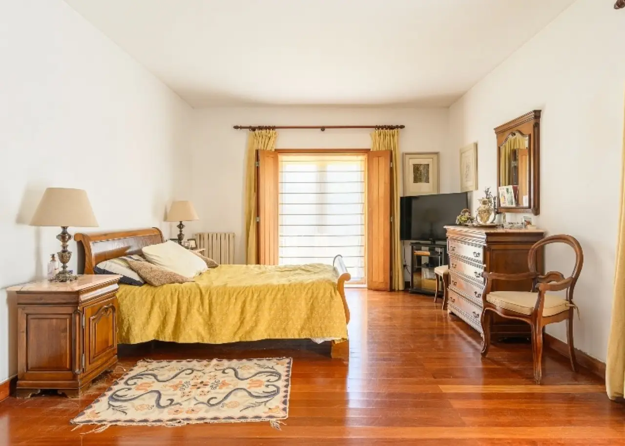 Fantastic four-bedroom detached villa, located in a noble and quiet area of Leça da Palmeira, a 2-minute walk from the beach. This incredible villa, with a huge garden and surrounded by a granite wall, has spacious and bright areas, all of which have access to the outside garden space. The generously-sized living room has various seating and dining areas and is around 60 m2. Next to the kitchen there is a fifth room that can be used as an office or playroom and is served by a bathroom. In the private area of the villa there are four bedrooms, one of which is a huge suite, all with access to the outside. On the upper floor there is a large room, served by a bathroom, which functions as a second living room, giving access to three terraces and wonderful views. There is also a large basement of around 60 m2 and a garage with capacity for 3 cars. All the accesses to the garden, as well as the windows, are protected by interior wooden shutters. Located in the center of Leça da Palmeira, with shops and services nearby. Good access to the highway and easy access to the center of Matosinhos and the center of Porto. CHARACTERISTICS: Plot Area: 1 008 m2 | 10 850 sq ft Deployment Area: 390 m2 | 4 198 sq ft Building Area: 538 m2 | 5 791 sq ft Bedrooms: 4 Bathrooms: 4 Garage: 3 Energy efficiency: C