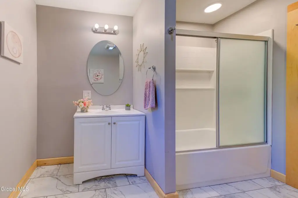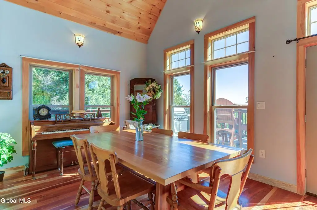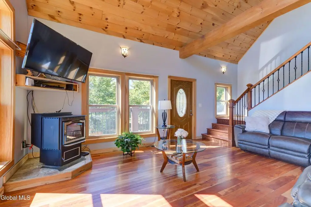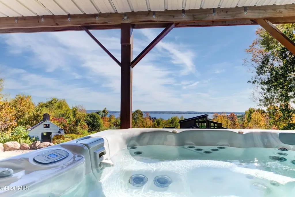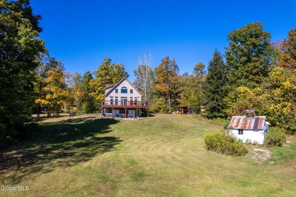 Stunning Lake & Mountain Views! Perched high on a ledge overlooking the Great Sacandaga Lake, this custom Chalet-style home sits on over 10 acres with a 10' beach permit a short drive away for lake access. Tucked away on a private dead-end road in the Mayfield School District, this 4-bedroom, 3-bath home offers the perfect blend of seclusion and convenience.Inside, the soaring vaulted ceilings and wall of windows in the Great Room showcase breathtaking lake and mountain views. The gourmet kitchen features custom hand-crafted cabinetry, granite countertops, and a spacious breakfast bar - a perfect gathering place for family and friends. A full walkout lower level provides additional living space potential, ready for your finishing touches. Step outside to the expansive wraparound deck, the ideal place to entertain or simply relax surrounded by nature. Unwind on the covered patio in the newer hot tub - perfect for soaking in the peaceful setting after a long day. A true Adirondack retreat with endless possibilities!