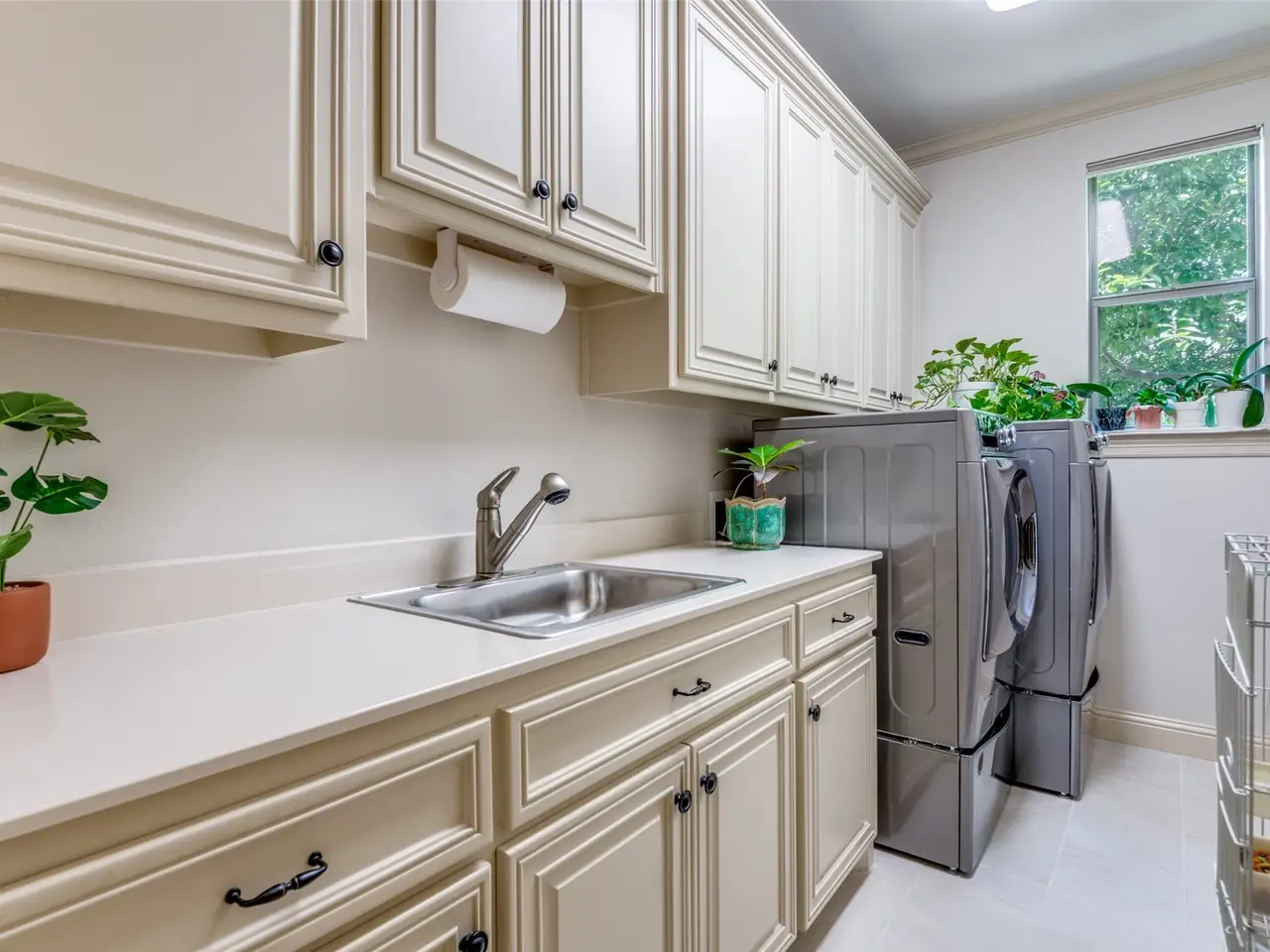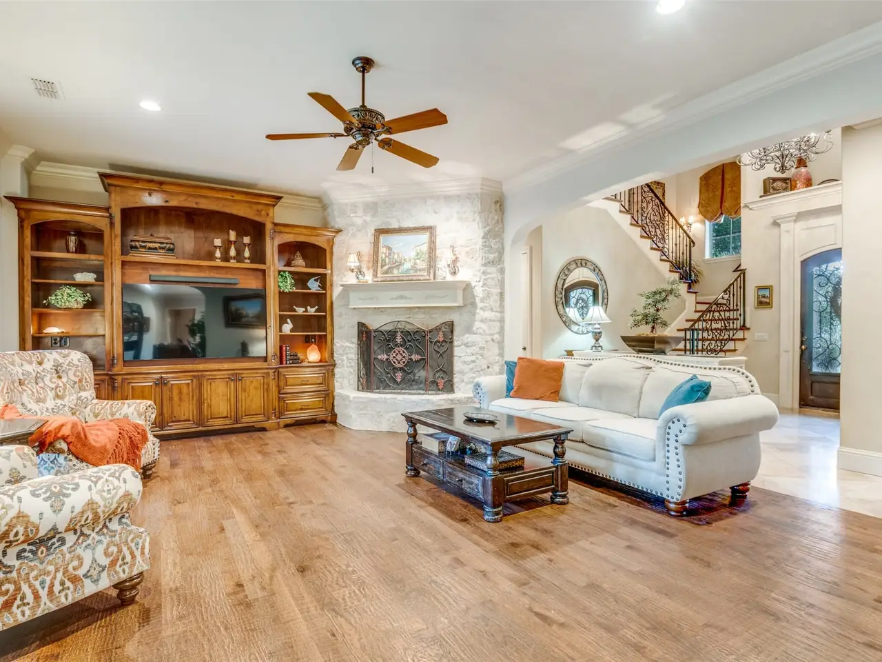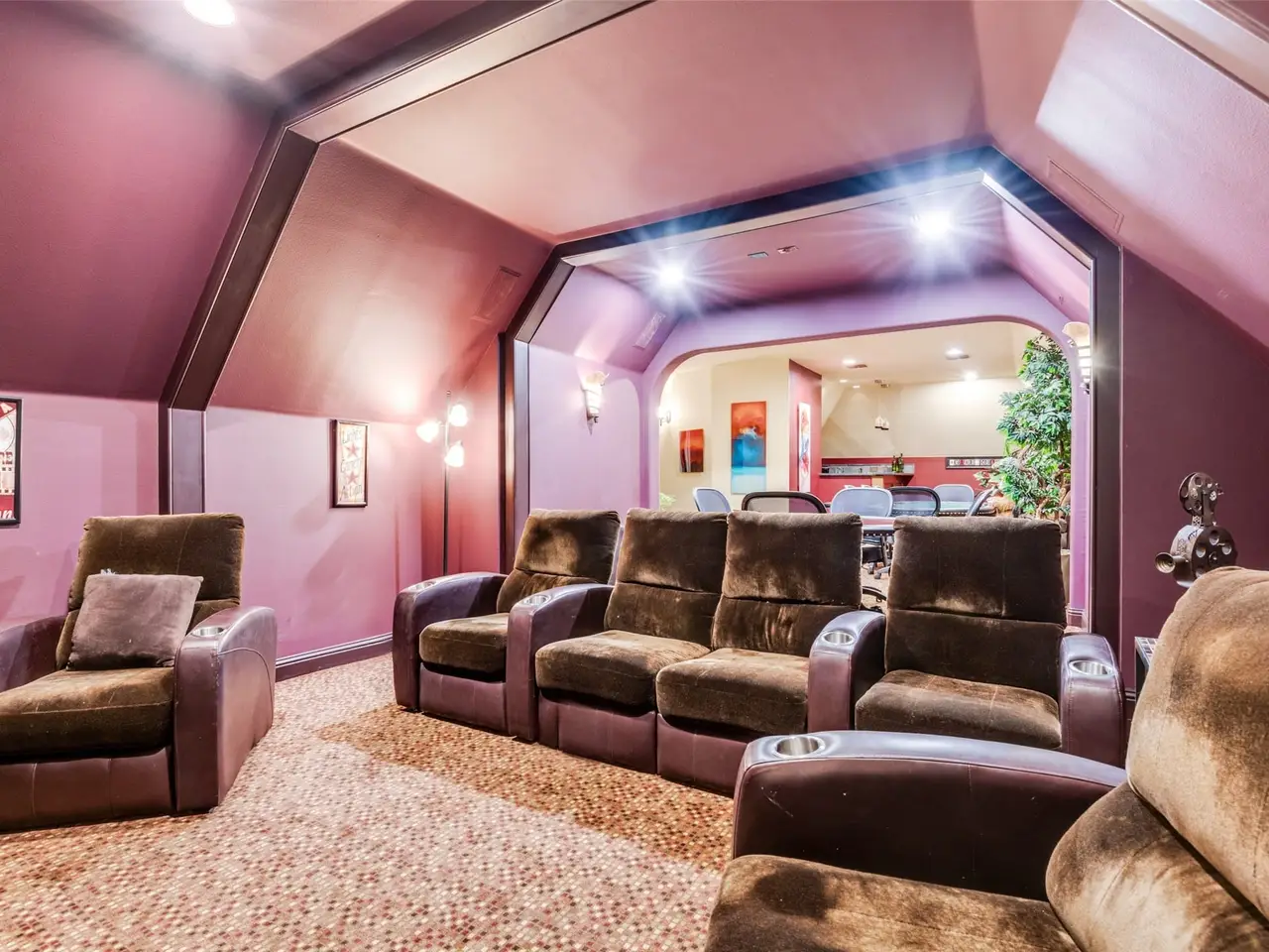 Stunning CUSTOM built home on an enchanting .43 acre CREEK lot is nestled in the tall TREES of the prestigious Village Creek neighborhood. This impressive home features an exquisite finish out of superior detailing, craftmanship, and construction throughout! Tall ceilings and windows, art niches, solid core doors, crown molding, 7.5 inch baseboards, wired for sound, storage galore, Juliet balconies, radiant barrier, 3 CAR GARAGE, and so much more! The open and flexible FLOORPLAN design is perfect for family and entertainment flow, both inside and out! The private and serene BACKYARD RETREAT enjoys an extensive covered patio area with travertine flooring, a sparkling POOL and SPA with remotes, waterfall, tanning ledge, and amazing VIEWS of the wooded creek setting! A perfect blend of sun and shade makes it ideal for relaxing or entertaining year round. The gourmet KITCHEN features a central island, Viking dbl ovens, 5 burner gas cooktop, SS appliances, 15 foot breakfast bar, walkin pantry and a large eating nook and views! The kitchen is open to the welcoming FAMILYROOM with lovely hardwood flooring, an elevated Austin stone hearth fireplace, builtins, and walls of windows offering more views of the backyard oasis. The DININGROOM with polished travertine flooring and accent chandelier is just off the beautiful and grand two story FOYER with exquisite architectural details and winding staircase. The EXECUTIVE STUDY with pocket door entry, coffered ceiling, and closet, also enjoys front and backyard views, and a FLEX LIVINGROOM area across hall. Down the hall is the PRIMARY SUITE with sitting area, trey ceiling, views, and a spa like bath with jetted tub! Private GUEST SUITE is downstairs with ensuite bath and walkin closet. Upstairs features 3 spacious additional BEDROOMS, one ensuite bath, one large Jack N Jill. There is also a 17x14 FAMILYROOM, and down the hall is fabulous GAMEROOM with wet bar, and a MEDIA ROOM with tiered seating, sconces, and floor lighting!