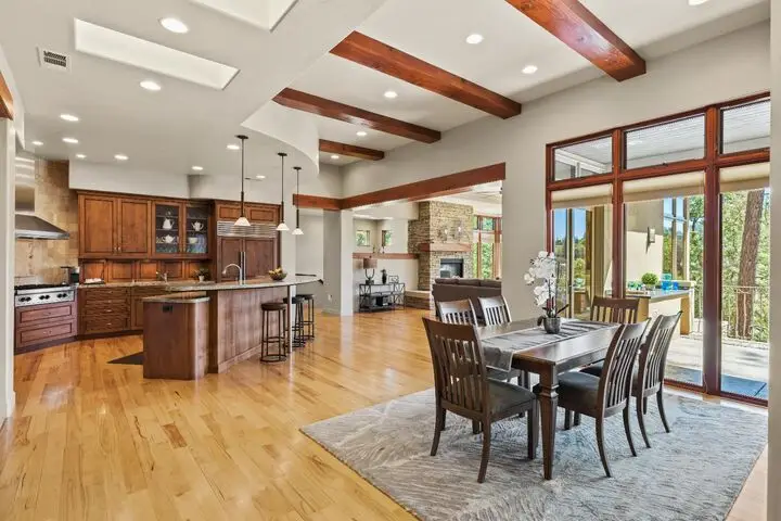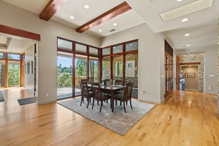Welcome to this stunning 4,600 square foot custom home situated on a 1.1-acre lot. Featuring 4+ bedrooms and 3.5 bathrooms, it offers a luxurious living experience in Meadow Vista's Winchester Country Club community. Upon entering, you're greeted by sweeping forested views, an open floor plan, and an abundance of natural light streaming through expansive floor-to-ceiling windows that beautifully enhance the space. The home exudes a peaceful and inviting atmosphere throughout, with its beautiful hickory wood flooring and numerous skylights! The Chef's kitchen is equipped with high-end Wolf appliances, a Sub-Zero refrigerator, and ample space for entertaining. A large temperature-controlled wine cellar and butler's pantry enhance the kitchen experience. The expansive primary suite includes a private balcony, perfect for enjoying morning coffee or relaxing evenings while taking in the scenic surroundings, free standing bathtub, gorgeous marble vanities and large walk-in closet. Enjoy exclusive access to two private clubhouses, including the Swim & Tennis Club, and the highly acclaimed Robert Trent Jones Jr.-designed golf course, voted one of the toughest courses in Northern California. The community offers resort-style amenities, and 24/7 security patrol.