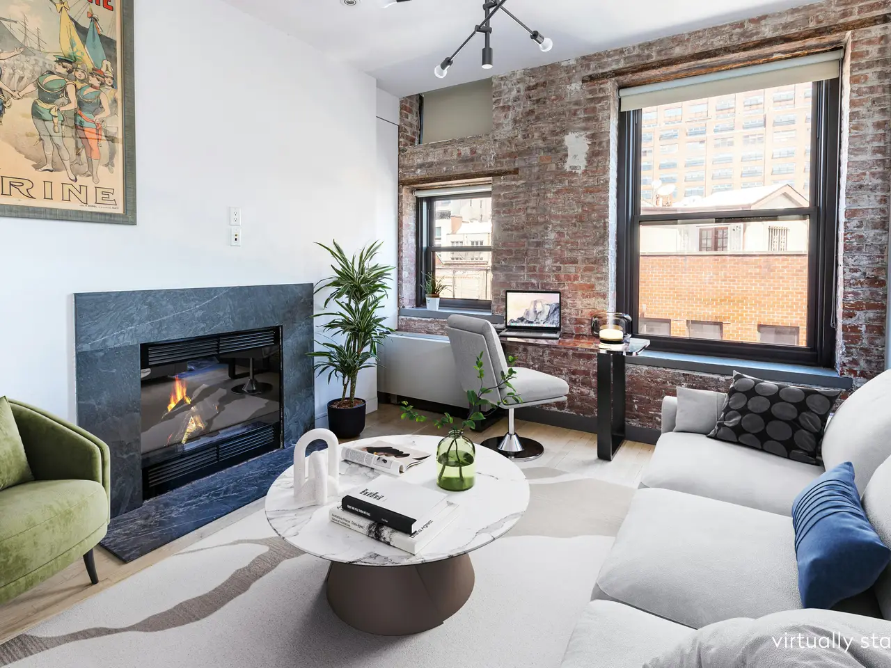 Truly unique in detail and design, this approximately 1,200 square foot two bedroom apartment blends all the charm of the West Village with your downtown TriBeCa loft. THE APARTMENT; - 11-foot beamed ceilings - Wood-burning fireplace - Loaded, renovated kitchen with tons of cabinets, stainless steal counters and top of the line appliances like a Viking stove with vented hood, Sub-Zero refrigerator and Miele dishwasher - Grey tinted oak floors - Exposed brick throughout - Expansive living room with space for a 8-10 person dining table - Numerous floor to ceiling closets - Two tall north facing bedroom windows - Renovated bathroom with a frameless walk-in glass shower, attached overhead shower and handheld sprayer, built-in bench and a large separate soaking tub. - Separate laundry and storage area with wine fridge THE BUILDING: - Impeccable, boutique condo building with elevator - Only three lofts per floor - Common roof deck - Full time super (lives nearby) - Extra Storage Cage available (for a separate fee) THE NEIGHBORHOOD: - The crossroads of the West Village and the Meatpacking District - Moments to Highline Park, The Standard Grill and Beer Garden, Chelsea Market and more - Close to A/C/E subway lines
