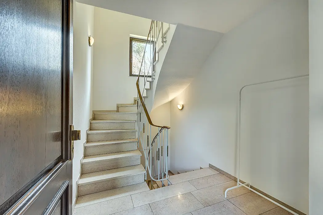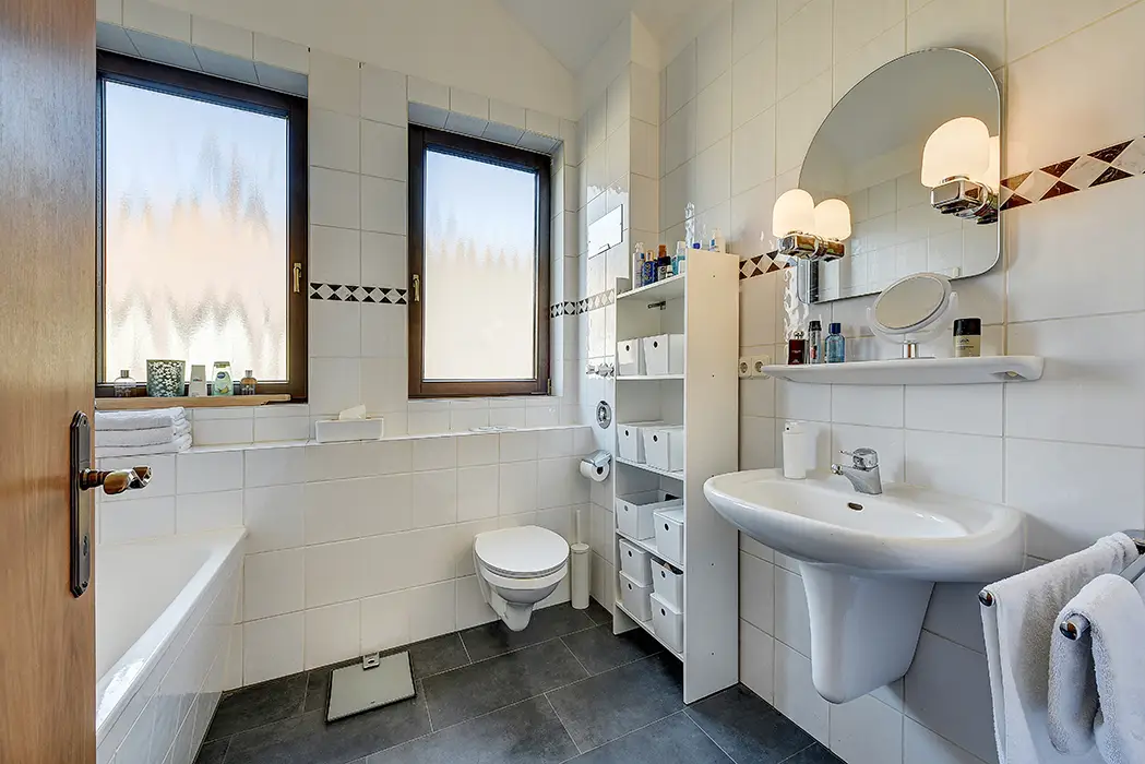 For sale is an extremely well-maintained two-family house that was built in 1992 on a generously proportioned plot of approx. 600 m². The property has been continuously maintained and modernized and is in excellent condition today. With a living space of approx. 250 m², the house offers enough space for a large family or two separate residential units - ideal for multi-generational living or as an investment. Apartment 1 - first floor & basement (approx. 195 m² of living and usable space, of which approx. 152 m² is living space): Access to the apartment is via a private path through the front garden. A spacious entrance area welcomes you and leads to the right into the light-flooded living and dining area with floor-to-ceiling windows and a view of the secluded garden. The stylish fireplace provides warmth and a cozy atmosphere in the colder months of the year. The semi-open fitted kitchen in classic country house style is functionally designed - with direct access to the garden through a glazed door, perfect for sociable evenings in the countryside. The entrance area leads to the quiet bedroom on the left and a modern shower room with WC. The bedroom has floor-to-ceiling windows on two sides and offers a wonderful view of the garden. A staircase in the entrance area leads to the basement, which was extensively renovated and modernized in 2021. Here you will find three further bedrooms, a spacious bathroom with bath and shower, a large storage room and a utility room. The floor tiles in the bathroom in the basement were replaced during the renovation. The gas central heating is also from 2021. Apartment 2 - upper floor (approx. 99 m² living space): The separate 3-room apartment on the upper floor has its own entrance as well as a separate staircase. A light-flooded living room with large window fronts creates a friendly, open atmosphere and offers plenty of space for individual design. Two bright bedrooms, two bathrooms and a kitchen with a new stove and modern dishwasher make this apartment particularly comfortable. The adjoining balcony offers a pleasant outdoor area with a view of the greenery. The upper apartment is currently rented out. Both apartments are each designated as separate properties by the declaration of division, but can only be purchased here together as a package. This constellation also offers the buyer potential financing and tax advantages. Outdoor area & facilities: The well-kept garden is easy to maintain and offers plenty of space for leisure activities or relaxing hours outdoors. A newly designed terrace (completion August 2023) invites you to linger. The house also has a garage and another parking space. This attractive property impresses with its flexible room layout, excellent condition, diverse usage options and quiet, family-friendly location. It offers an ideal combination of comfort, style and functionality - perfect for anyone looking for a long-term home or a solid investment. We would be happy to send you more information or arrange a viewing. We look forward to hearing from you!