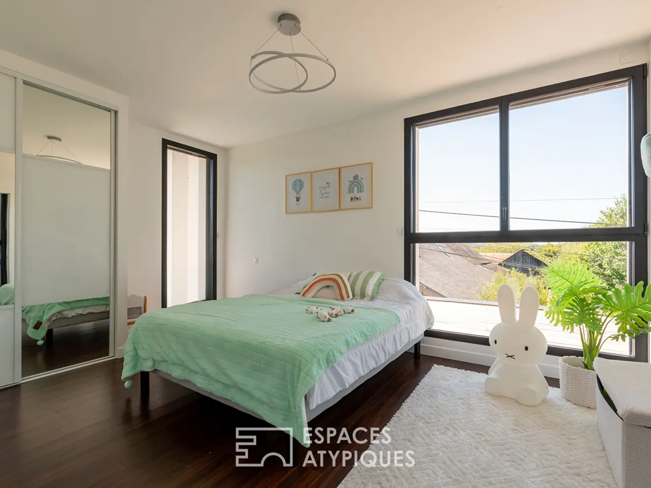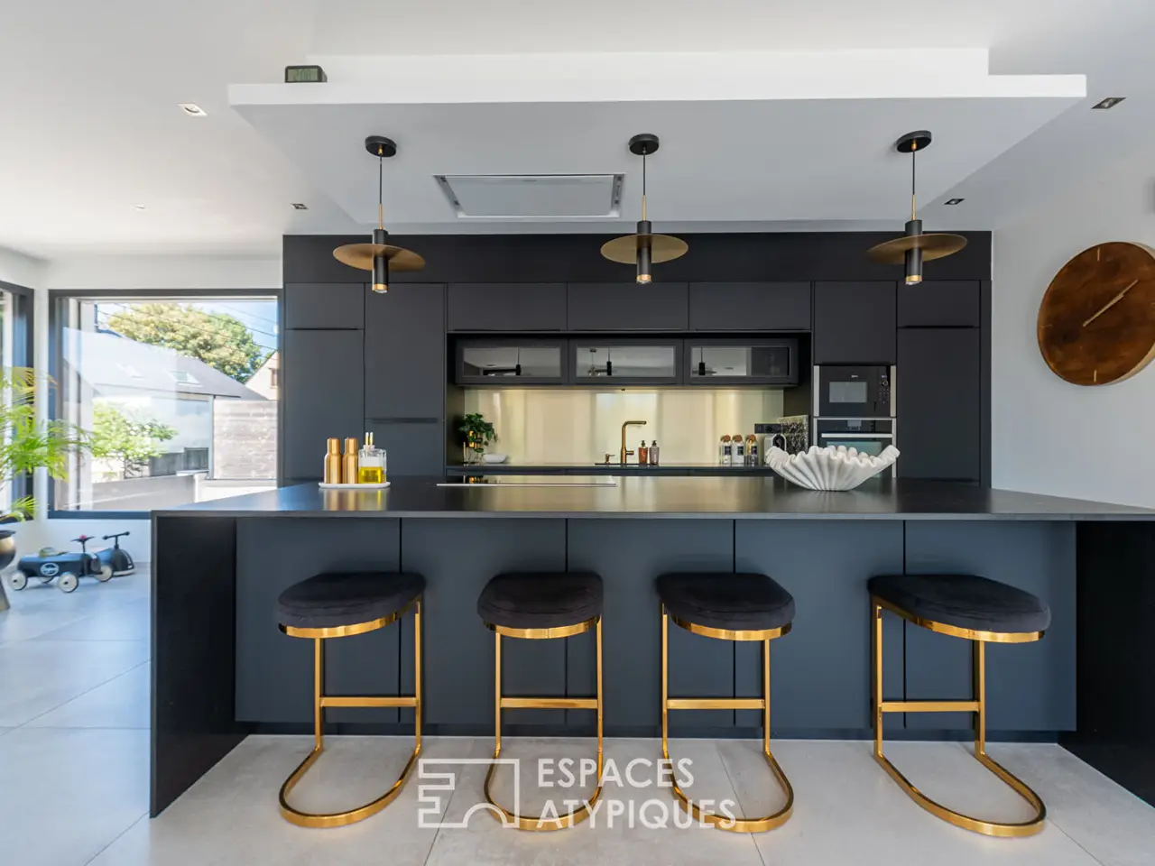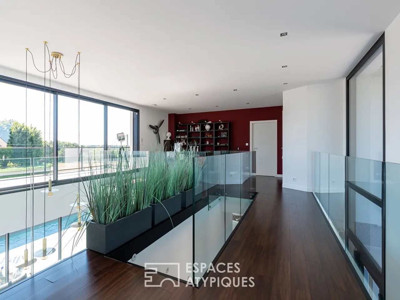 Just ten minutes from the outskirts of Rennes, this 252 sqm contemporary villa located in the town of Melesse boasts elegant, designer architecture on a 600 sqm plot. Inspired by the Californian style, it combines clean lines, beautiful volumes, and large glass openings.Its layout offers optimal comfort and a playful character thanks to its landscaped exteriors and swimming pool. The garden level is organized around a vast and bright living space combining a fitted and equipped open-plan kitchen, a dining room, and a living room. The interior landscaped patio offers a beautiful breath of fresh air and extends the beautiful fluidity of the space. The contemporary kitchen and its scullery combine design and functionality. This first level also features a master suite with a dressing room and a shower room, as well as a junior suite with a bathroom and storage. A laundry room and a tiled garage provide practicality and comfort for everyday use. The upper floor houses two junior suites with bathrooms, a mezzanine opening onto the living room, and a terrace, providing independence and privacy for everyone. Outside, the landscaped garden, not overlooked, offers a peaceful living environment.The elegantly designed swimming pool extends into a large terrace, partially protected by an awning, ideal for enjoying the beautiful weather. A dedicated technical room facilitates maintenance. The architecture highlights the permanent dialogue between interior and exterior, in a sought-after residential environment. Technical elements: home automation, high-efficiency ventilation, adjustable sunshades, optimized insulation and orientation contribute to the performance of this recent construction.A unique property, designed as an inhabited work, which combines refinement, modernity, and the art of living, close to all services and shops.REF. 12403Additional information* 6 rooms* 4 bedrooms* 1 bathroom* 3 shower rooms* 1 floor in the building* Outdoor space : 597 SQM* Parking : 3 parking spaces* Property tax : 2 772 €Energy Performance CertificatePrimary energy consumptiona : 35 kWh/m2.yearHigh performance housing*35kWh/m2.year1*kg CO2/m2.yearA*B*C*D*E*F*GExtremely poor housing performance* Of which greenhouse gas emissionsa : 1 kg CO2/m2.yearLow CO2 emissions*1kg CO2/m2.yearA*B*C*D*E*F*GVery high CO2 emissionsEstimated average annual energy costs for standard use, indexed to specific years 2021, 2022, 2023 : between 590 € and 850 € Subscription IncludedAgency feesThe fees include VAT and are payable by the vendorMediatorMediation Franchise-Consommateurswww.mediation-franchise.com29 Boulevard de Courcelles 75008 ParisInformation on the risks to which this property is exposed is available on the Geohazards website : www.georisques.gouv.fr
