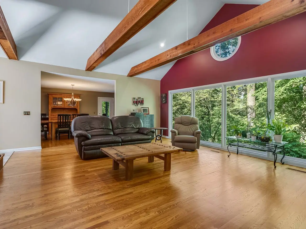 Welcome to this breathtaking ranch-style retreat, ideally situated on a quiet, private cul-de-sac in desirable Mendham Township. Step into the grand foyer, where soaring ceilings, exposed wood beams, and floor-to-ceiling windows flood the space with natural light, setting the tone for this expansive and inviting home. Designed for both tranquility and functionality, this 4-bedroom ranch offers the ease of single-level living with luxurious touches throughout. Enjoy the custom gourmet kitchen outfitted with high-end stainless steel appliances, flowing seamlessly into a dramatic dining room, perfect for hosting gatherings. Just beyond, a charming side porch offers peaceful views of the lush, tree-lined backyard. At the heart of the home is the living room, featuring striking wood beams, oversized windows, and a cozy fireplace, making it the perfect space to relax or entertain. The main level includes three spacious bedrooms with a serene primary suite and spa-inspired bath. Downstairs, the walk-out lower level offers exceptional versatility with a large billiards room, a home gym, private office, fourth bedroom and a fully equipped in-law suite with a kitchenette and its own entrance. Step outside to enjoy the beautifully landscaped grounds, complete with a bluestone patio and a sparkling pool surrounded by nature creating a true resort-like atmosphere in your own backyard. Located on the east side of town with direct access to Patriot's Path, this home combines convenient one-floor living, a peaceful setting, and a premier location. A rare opportunity not to be missed.