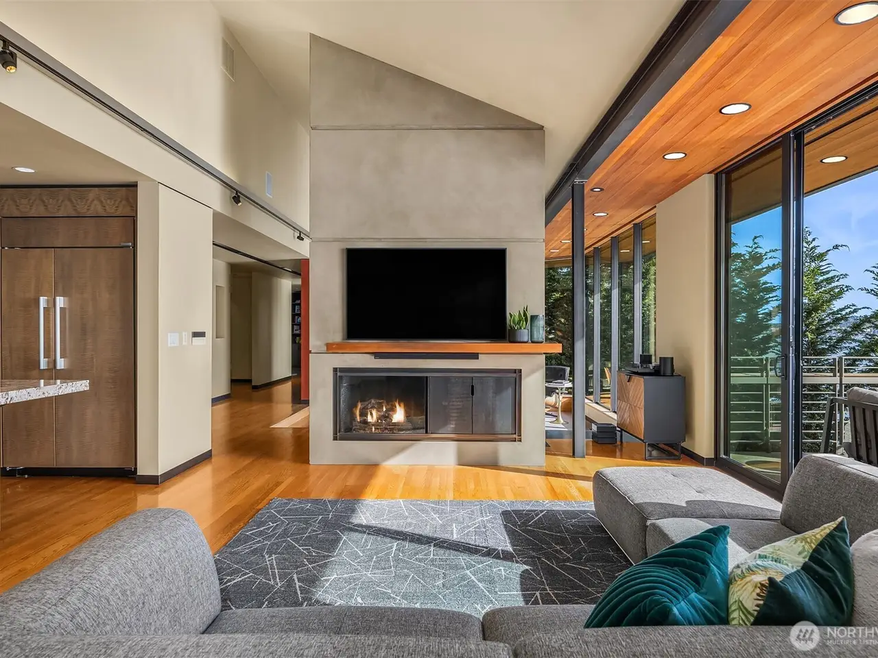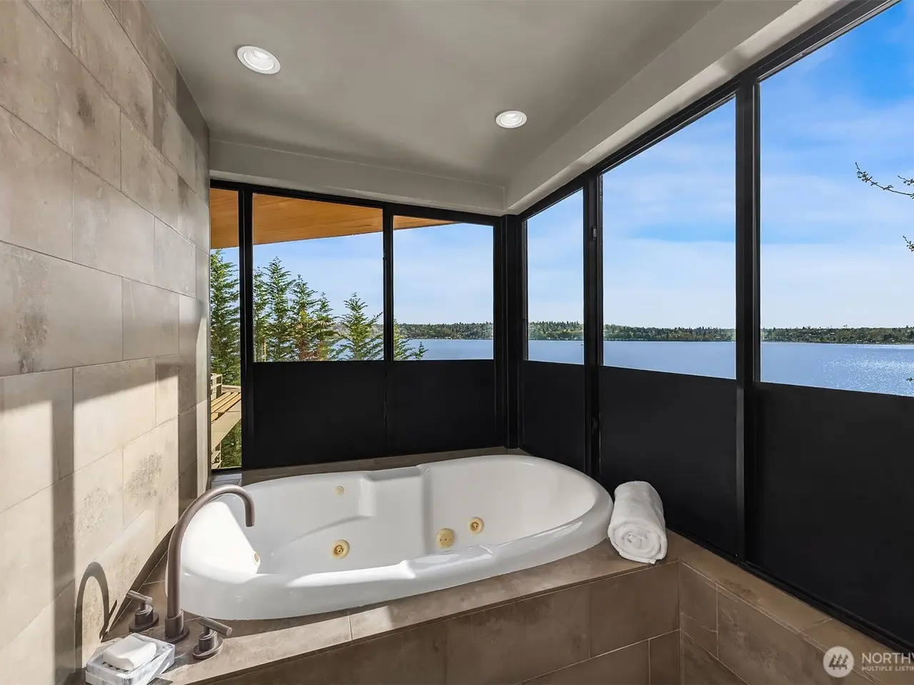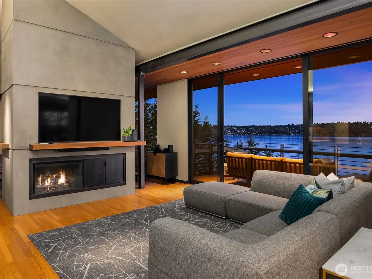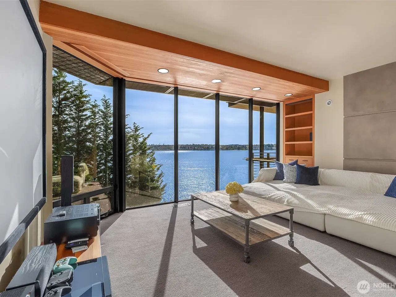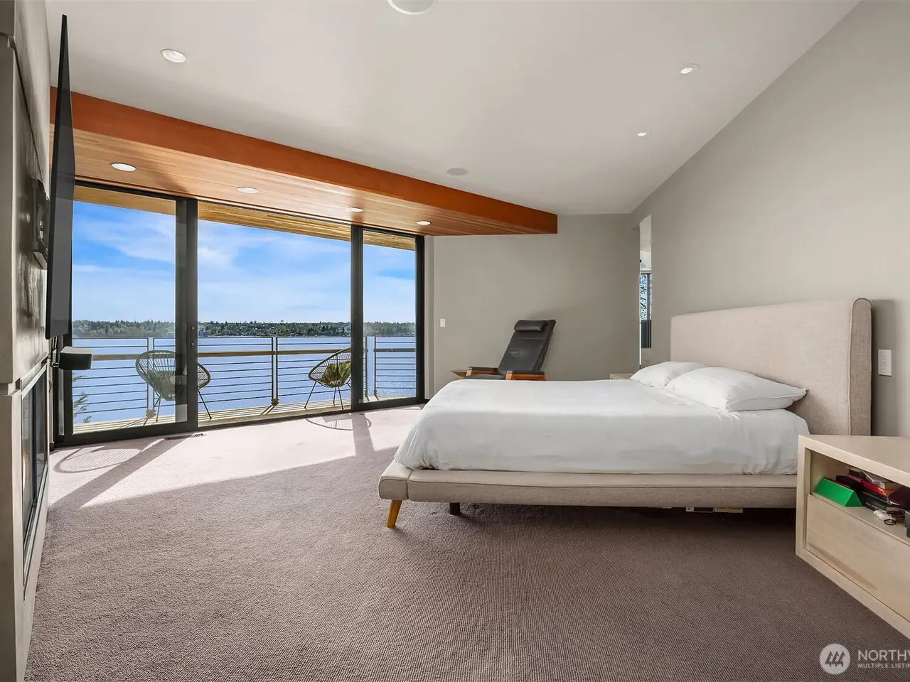 Olson Kundig design set upon the shores of Lake Washington. Light finds you in every space & the views are inescapable in your modern jewel-box home of glass, steel, wood & concrete, artfully reimagined by world renowned architect, Jim Olson, in 2008. Mt Rainier & the Olympics are your backdrop for all-day sun along 65' of coveted West-facing Mercer Island waterfront with new dock in 2017 & boat lift. Enter near waters edge to vaulted gathering spaces with seamless indoor/outdoor flow for social nights by the lake, quiet & intimate zones for retreat & relaxation, primary suite & two additional bedrooms share their own floor centered around a communal family room hub, & lakeside-level entertaining room with additional bedroom & 3/4 bathroom.