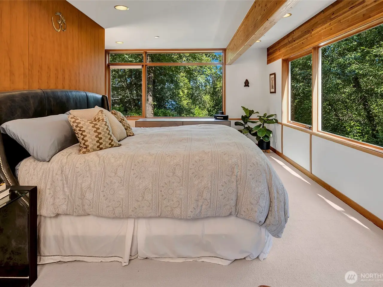 New exciting price for the classic Pacific NW home w/34 feet of no-bank waterfront shared with just 1 neighbor plus 100 foot dock. This custom-designed Jim Cutler masterpiece is an architectural gem by the renowned mind behind Bill Gates' home. Classic & timeless, the residence features VG fir-trimmed walls of windows that dissolve the boundary between indoors & out. So much privacy, no need for blinds. Sophisticated entertaining space combined w/cozy family areas. Dream all weather deck. Short path leads to the water. Hop on the boat, paddle board or just soak up the sun with western exposure. Tucked away in tranquil privacy yet moments to the S'End shopping center, Beach Club, & schools. NOT cookie cutter! This is quiet luxury with soul.