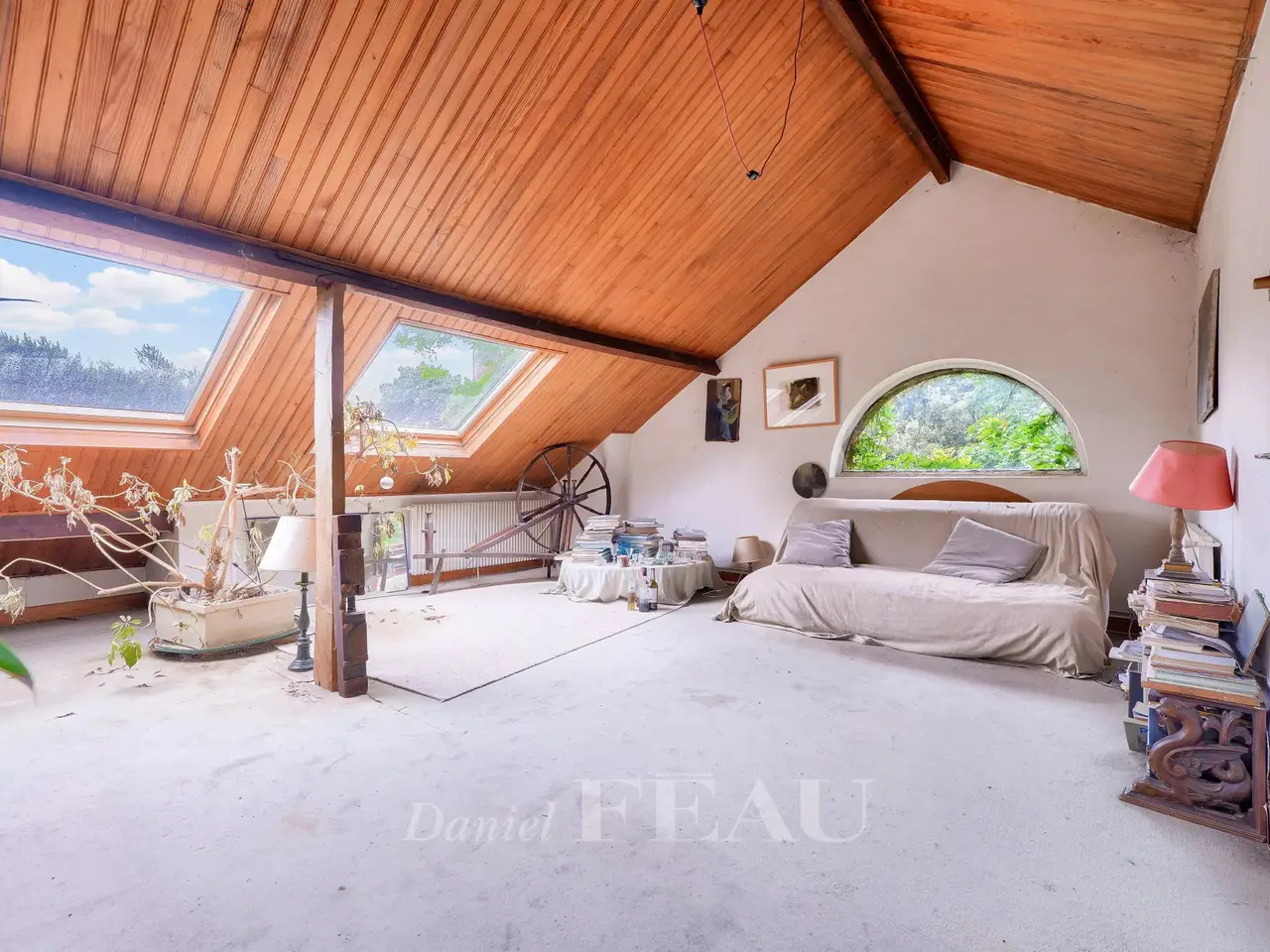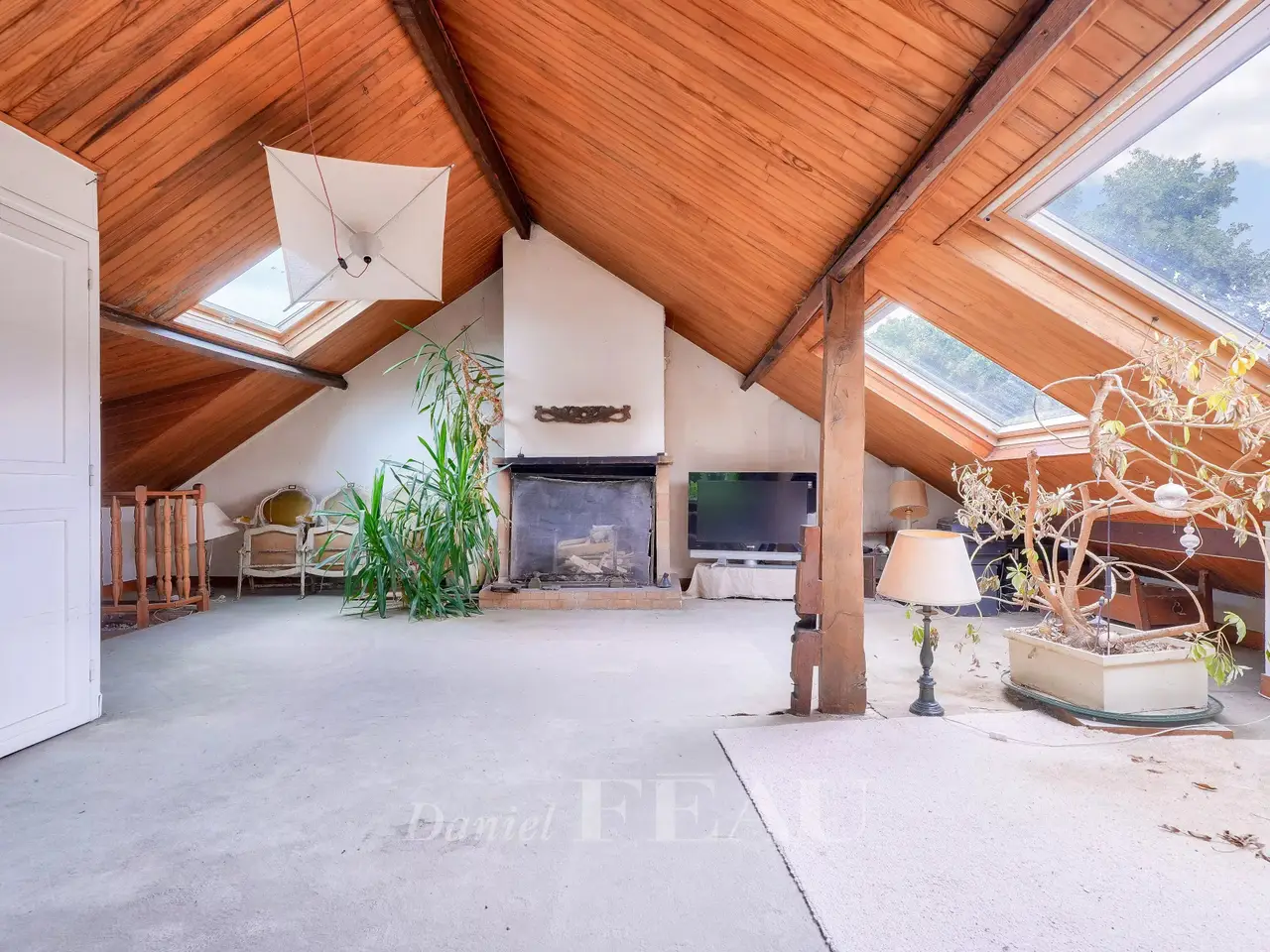 This late 19th century millstone-built property featuring parquet flooring, fireplaces and panelling is located in the sought-after Meudon Bellevue neighbourhood. South-facing and set in a 635 sqm plot, it includes a spacious double living/reception room with a library area, a generously proportioned separate kitchen, and a dining room with a fireplace. Upstairs are four bedrooms and a bathroom. The top floor comprises a spacious room with a fireplace currently used as a recreation room/workshop and which could create a master suite with a bathroom and a dressing room. On a total basement and with a self-contained studio apartment. With several parking spaces. In a prime location just a five-minute walk from the station and near the shops and the schools.