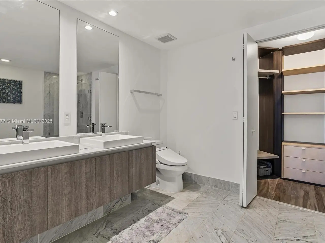 Wonderfully furnished & equipped 2 bed/2 bath unit in SLS Lux sold turn key! Biscayne bay & Miami skyline views await you. Private foyer elevator, 1 covered parking space. Designer furniture and furnishings. Upgraded unit finishes include: Italian Ciot green marble countertops & LED lighting in kitchen, white Calacatta Luxor marble vanity tops & Toto washlets in bathrms, Italkraft closet system in closets, automated window roller shades throughout. Bldg amenities include: SLS Hotel - 2 pools - Roof top private pool for residents only, Cabanas, bar & restaurant, Fitness Ctr & sauna, Spa, children's playground w/rock climbing, Billiard, Wine & cigar room, game room, putting green, tennis, 45th fl residents wine lounge. Brickell City Center w/entertainment & dining. Close to airport & M.Beach