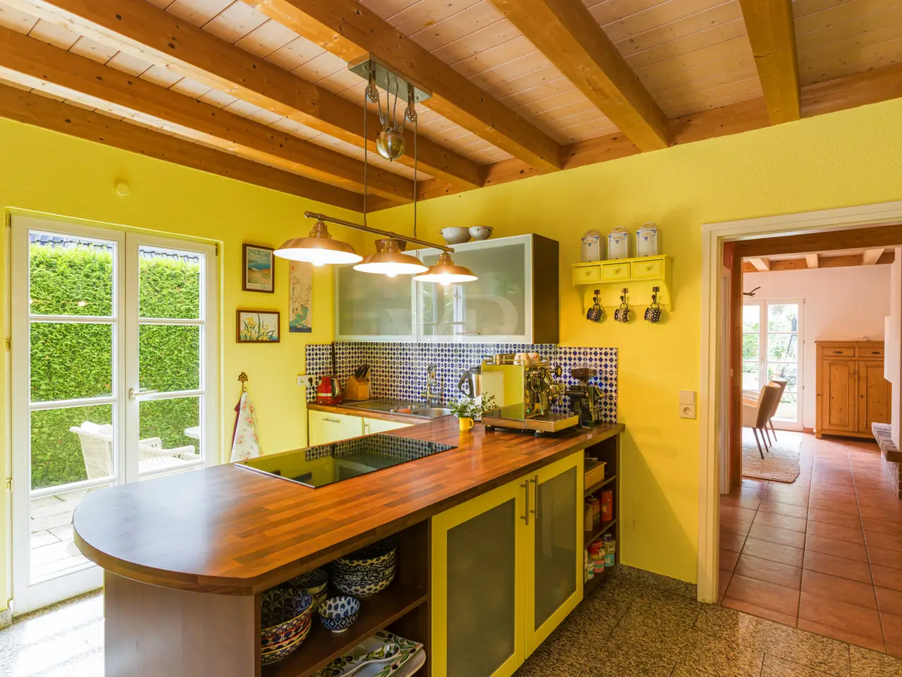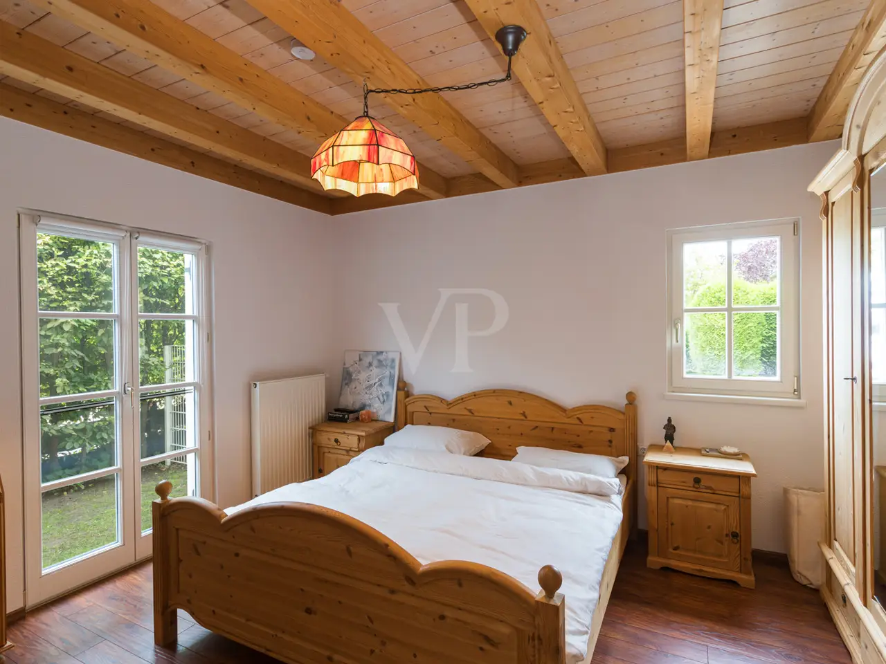 This well-kept detached house from 1995 boasts a spacious layout and a quiet residential area right next to Seddiner See golf club. With a living space of approx. 232.76 m² on a plot of approx. 895 m², the property offers a wide range of options for individual living concepts - ideal for families or couples who value living comfort and privacy. An inviting entrance area awaits you on the first floor, from where you enter the spacious, light-flooded living and dining area. Large windows and direct access to the terrace create a harmonious connection between the indoor and outdoor areas. An awning provides pleasant shade on the main terrace on sunny days. The kitchen is equipped with a fitted kitchen, offers plenty of space for culinary activities and also has access to one of the two terraces. There are a total of six well-proportioned rooms, including four bedrooms spread over two floors. Two bathrooms ensure comfort in everyday life and offer enough space for the whole family. The majority of the windows are fitted with blinds so that light and privacy can be customized. There is also a converted attic, which is currently used as a yoga room. The property also has a spacious balcony, which also covers the large main terrace, as well as a well-tended garden with a brick-built barbecue, perfect for socializing with family and friends. There are two garages for the vehicle fleet in the separate outbuilding, which also offers storage space for garden tools, bicycles and other utensils. Thanks to the well thought-out layout, there is enough space for every member of the family - even if you need more space. The location impresses with absolute tranquillity in the midst of natural surroundings. The proximity to the renowned Seddiner See golf club is a particular highlight for golf enthusiasts. At the same time, shopping facilities, schools and other everyday amenities are within easy reach. This detached house combines high-quality living with practical furnishings and an idyllic location and can be occupied at short notice. See for yourself during a viewing - we look forward to hearing from you.