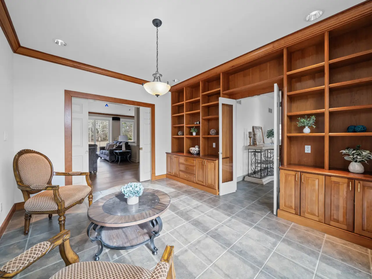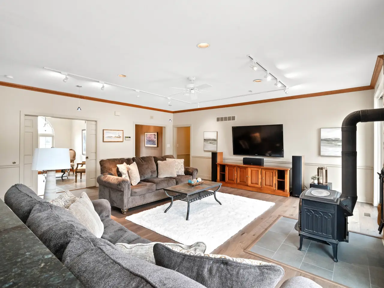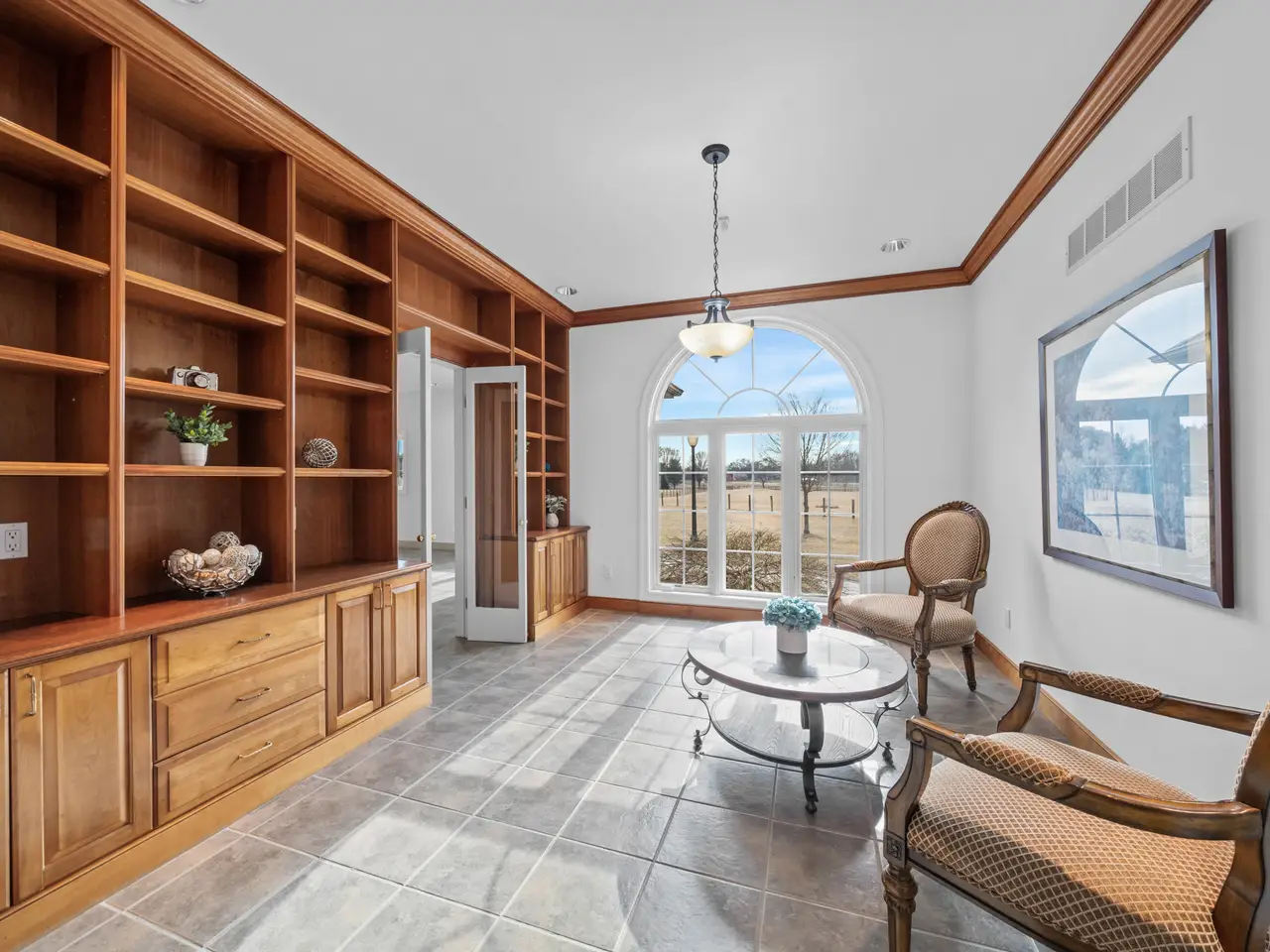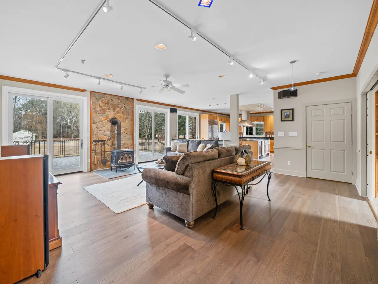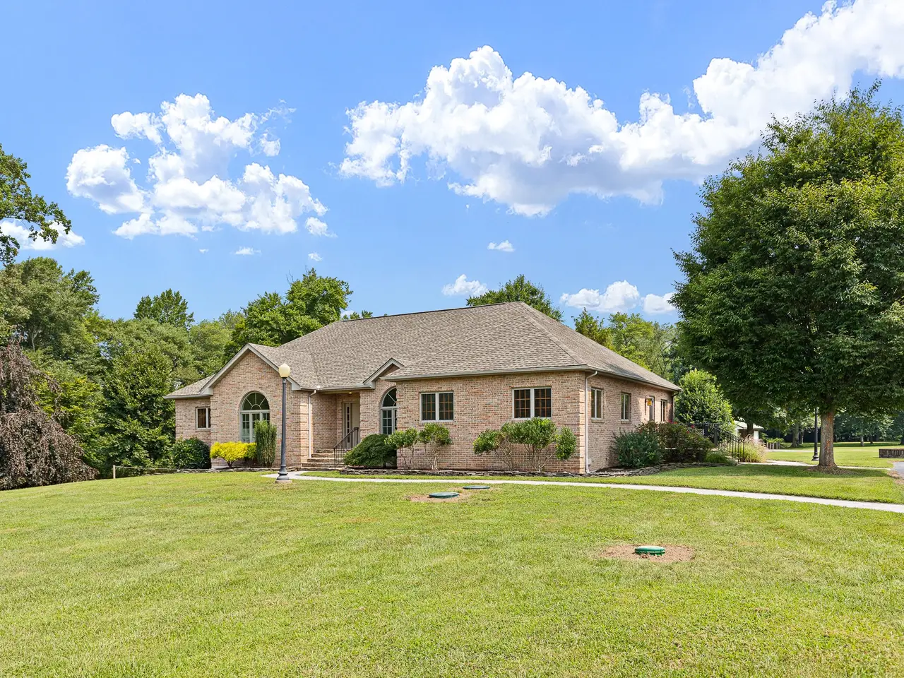 Welcome to Windmere Farm – a stunning country estate situated on 14.21 acres, recently enhanced with over $135,000 in updates. This custom, all-brick ranch blends comfortable living with casual luxury, offering features that go well beyond the ordinary. As you enter the spacious foyer, your eye is immediately drawn to the family room and the expansive views beyond, visible through two tall sliders leading to the patio and backyard. To the right, the open dining area offers another slider for seamless indoor-outdoor living. The chef’s kitchen is a true showpiece, equipped with: 6-burner Viking gas range with two ovens (one gas, one convection); Sub-Zero refrigerator/freezer; two Bosch dishwashers; under-counter ice maker; and custom hickory cabinetry with soft-close drawers and under-cabinet lighting. Just off the family room is a charming library, featuring custom cherry built-ins and a large arched window. It can be closed off with pocket doors for privacy. Beyond the library, glass French doors open to a large flex room—ideal for a second office, playroom, or studio—which also connects to the kitchen. On the opposite wing, a pocket door leads to the bedroom quarters. The primary suite boasts a triple arched window, a spacious en-suite bath with updated fixtures and lighting, and a large walk-in closet. Two additional bedrooms share a beautifully updated hall bath. The fully finished lower level—with walk-out access to the hot tub - features new LVP flooring, a private office space, and a mini-split system for year-round comfort. Step outside the family room to a large patio with custom wrought iron railings and Cambridge pavers. Across from the kitchen is the four-car, all-brick garage, complete with: tile flooring; EV charging station; wall-mounted vacuum system; gas heat and full insulation. For additional space, a 42' x 60' insulated pole barn with heat, A/C, water, and electric sits nearby. The property also includes: fenced pasture with run-in shed (currently home to Teddi, the llama); backyard cedar woodshed; heated/cooled kennel with auto-fill water station and two garage bays; and 8 water hydrants throughout the property. Recent updates include: roof (5 years old); Marvin Ultimate windows & sliders (new); engineered hardwood flooring; full interior repaint (2024); septic inspection & repairs (2024). Windmere Farm offers peace and quiet, with horses as your neighbors, while being just minutes from restaurants, shops, and all that Middletown has to offer. The home is not visible from the street—showings are by appointment only. Call Renée with any questions.