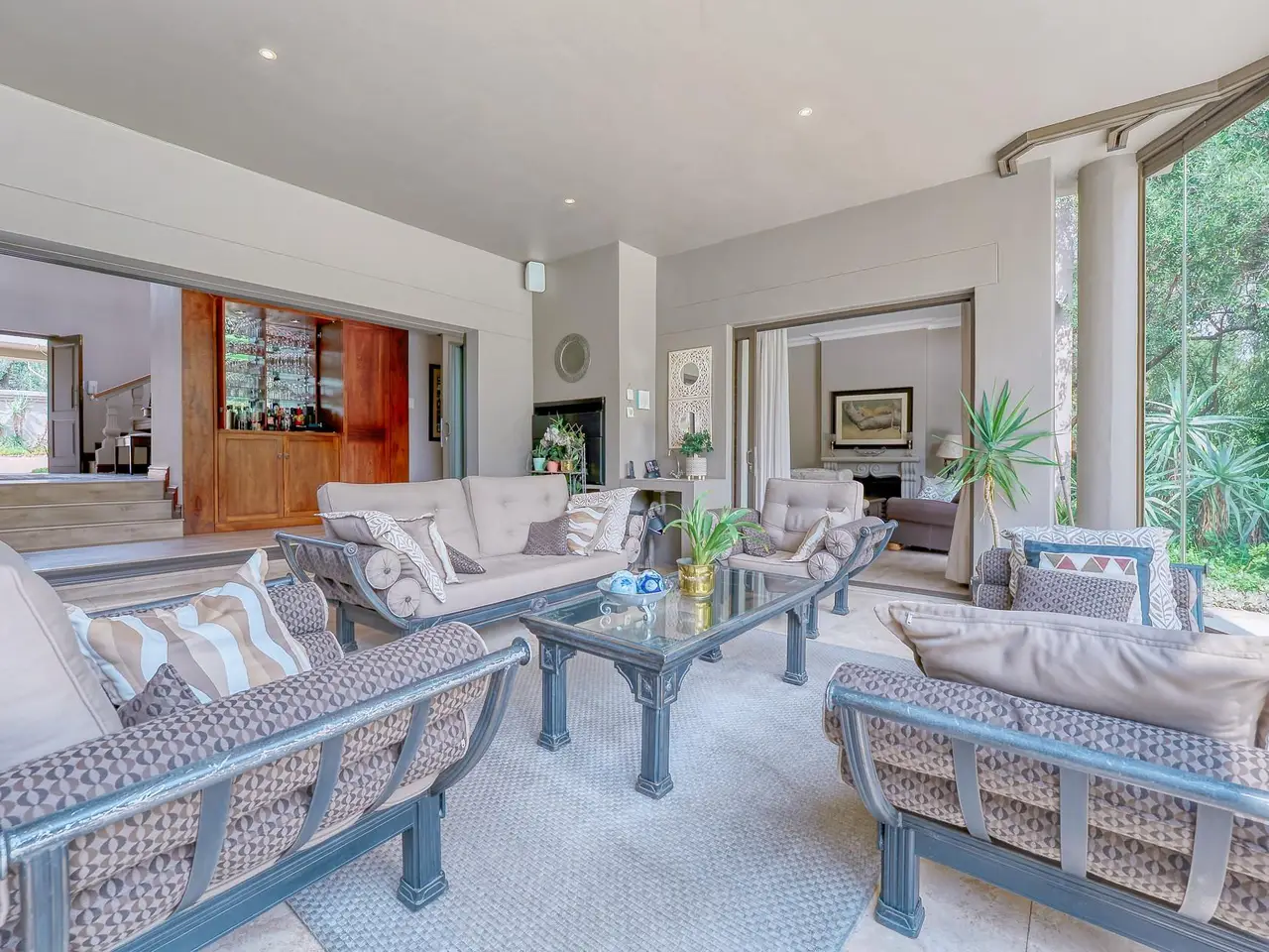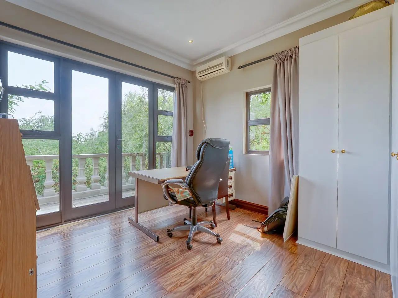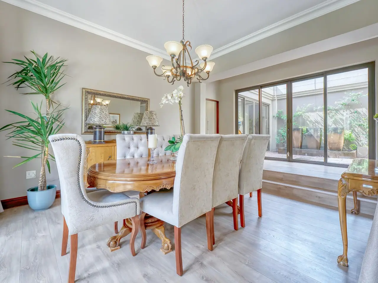 A Luxury Home Nestled in a sought after Estate in Kyalami! Step into luxury with this stunning 5-bedroom home, designed for both comfort and entertainment. The grand entrance hall, with its striking staircase, seamlessly flows into the informal lounge, where floor-to-ceiling glass doors open to the lush garden. Built-in speakers and a stylish bar area set the scene for relaxed gatherings. The formal dining room offers picturesque views of the atrium, while the open-plan kitchen boasts ample cupboard space, built-in ovens, a microwave, and a gas stove. A separate scullery leads to the informal dining area, which transitions effortlessly into the third lounge, creating a perfect space for family living. Of the homes 5 bedrooms,2 of them can be used as additional accomadation or guest wings. In addition there are house keeping quarters on the property. A private study provides the ideal work-from-home setup, while the pajama lounge offers a cozy retreat. It can double as a craft room or display area. The formal lounge, also fitted with built-in speakers, adds another layer of sophistication. Upstairs, the main bedroom impresses with a walk-through closet and a full en-suite bathroom, while all bedrooms feature air conditioning for year-round comfort. Speakers are thoughtfully placed throughout the home, enhancing the living experience.Elegantly staged to allow guests to absorb all that this luxury property has to offer.Outdoor living is just as impressive, with a beautifully landscaped garden and a sparkling pool, perfect for relaxation and entertainment. A balcony offers exclusive access to the rooftop, where you can enjoy breathtaking views. A double garage completes this exceptional property, ensuring both convenience and security. This home is an entertainerGÇÖs dream, combining elegance with modern functionality in every detail.So call today.!!!Make your dreams come true!!