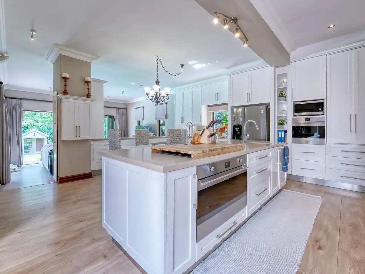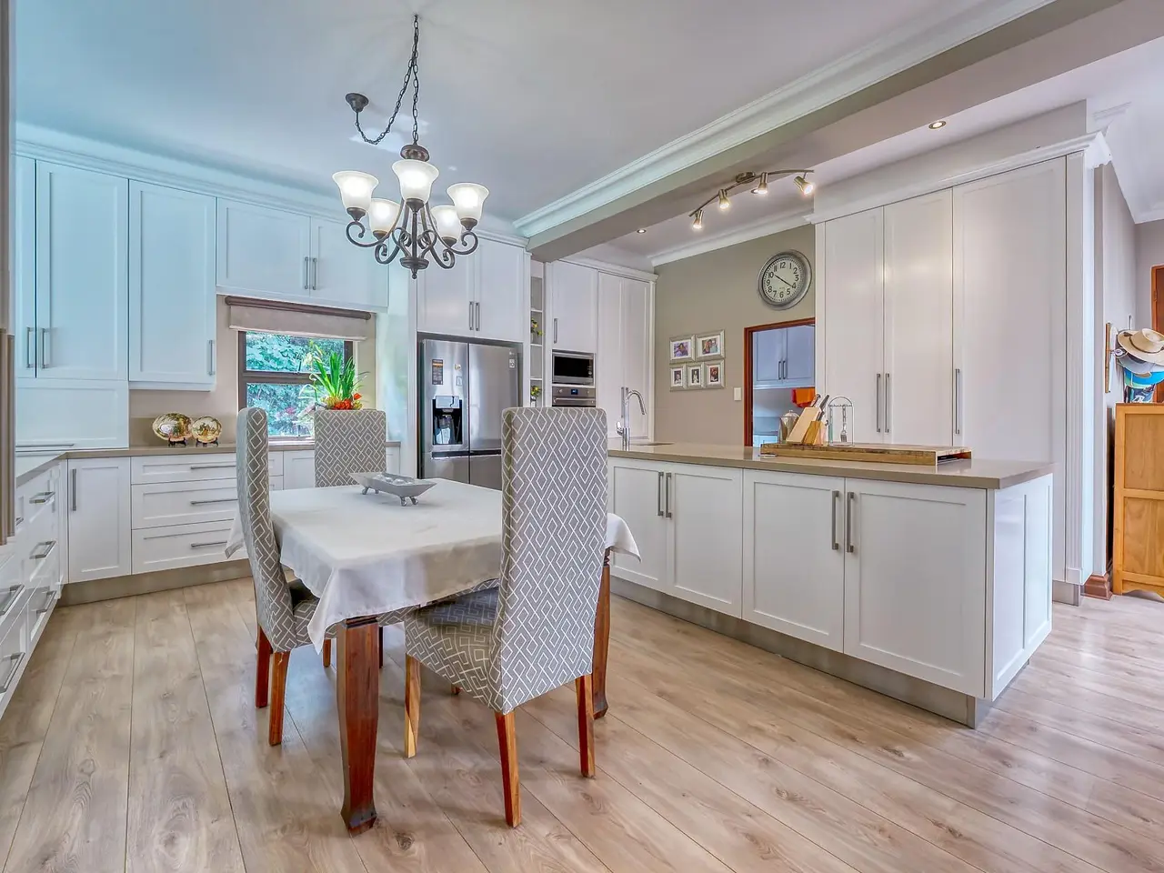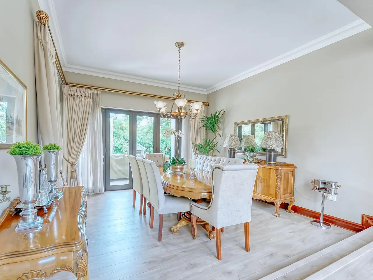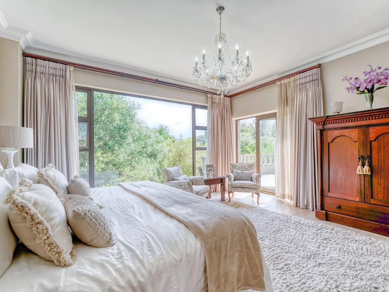 A Luxury Home Nestled in a sought after Estate in Kyalami! Step into luxury with this stunning 5-bedroom home, designed for both comfort and entertainment. The grand entrance hall, with its striking staircase, seamlessly flows into the informal lounge, where floor-to-ceiling glass doors open to the lush garden. Built-in speakers and a stylish bar area set the scene for relaxed gatherings. The formal dining room offers picturesque views of the atrium, while the open-plan kitchen boasts ample cupboard space, built-in ovens, a microwave, and a gas stove. A separate scullery leads to the informal dining area, which transitions effortlessly into the third lounge, creating a perfect space for family living. Of the homes 5 bedrooms,2 of them can be used as additional accomadation or guest wings. In addition there are house keeping quarters on the property. A private study provides the ideal work-from-home setup, while the pajama lounge offers a cozy retreat. It can double as a craft room or display area. The formal lounge, also fitted with built-in speakers, adds another layer of sophistication. Upstairs, the main bedroom impresses with a walk-through closet and a full en-suite bathroom, while all bedrooms feature air conditioning for year-round comfort. Speakers are thoughtfully placed throughout the home, enhancing the living experience.Elegantly staged to allow guests to absorb all that this luxury property has to offer.Outdoor living is just as impressive, with a beautifully landscaped garden and a sparkling pool, perfect for relaxation and entertainment. A balcony offers exclusive access to the rooftop, where you can enjoy breathtaking views. A double garage completes this exceptional property, ensuring both convenience and security. This home is an entertainerGÇÖs dream, combining elegance with modern functionality in every detail.So call today.!!!Make your dreams come true!!