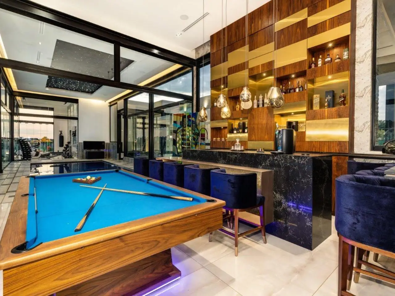 A Materpiece of Luxury and design An architectural triumph of international acclaim GÇö crowned at the CEDIA Awards and a contender for the 2022 International Design & Architecture Awards GÇö this home stands as a beacon of modern South African luxury. Every inch of this 2000sqm home has been meticulously curated, a symphony of world-class design, art, and innovation. Fully furnished with exclusive pieces from the worldGÇÖs most coveted design houses, this residence is a statement of success GÇö a living gallery where bespoke craftsmanship and global sophistication converge. It commands attention, not by excess, but by its effortless mastery of form, flow, and opulence. Monumental entrance with a sinking gate and Iconic statue , a cascading water feature and imported, book-matched marble walkway welcome you through the grand entrance, leading into spaces that celebrate artistry at every turn GÇö from the Versace-designed home office to the Roberto Cavalli spa and salon. The glass-encased five-car showroom showcases automotive perfection GÇö a collectorGÇÖs dream and a testament to refined taste. On the ground floor, two private guest suites offer comfort and discretion, while wellness reigns supreme with an indoor heated pool, gym, spa, sauna, and bespoke hydro showers. This sanctuary spills out to expansive entertainment zones GÇö custom his and hers bars, a vast infinity pool, jacuzzi, and a sunken boma firepit GÇö merging the boundaries between indoor and outdoor luxury living. The Italian-imported kitchen, fitted with premium Siemens appliances, anchors the homeGÇÖs heart, flowing seamlessly to an outdoor putting green and childrenGÇÖs play paradise. The formal piano lounge creates a guest enclave that transforms at a touch into a private cinema with drop-down projector and blackout automation GÇö a subtle nod to the homeGÇÖs mastery of multi-sensory living. Descend beneath a glass walkway welcome to discover the ultimate indulgence: a 15-seater private cinema, nostalgic art gallery, candy and snack bar, temperature-controlled wine cellar with capacity for over 1,500 bottles, champagne display, and a statement poker suite GÇö a haven for entertainment and distinction. The home is a fully automated smart masterpiece, effortlessly merging technology and luxury. The grand spiral staircase leads to an upper level where a cinematic pyjama lounge opens to three exquisite en-suite bedrooms and an indulgent master wing GÇö complete with boutique-style dressing room, lavish bathroom, and private balcony. Offering: GÇó 7 Bedrooms | 9 Gessi Bathrooms | 2 Atriums | 2 Designer Offices GÇó 2 Fully Equipped Playgrounds & Playroom | Multi-Court | Walk-In Linen Room GÇó Cold Room | Staff Quarters | Vegetable Garden | Treatment Plant/Borehole | Eco-Tank GÇó Dual Generators | Full Solar System | Inverters | Centralised Vacuum System GÇó Fully App & Remote Controlled | Centralised Server Room | HVAC Integration GÇó Motorised Curtains & Blinds | 6 Gas Fireplaces | 14 Drop-Down Plasma Screens GÇó Surround Sound Indoors & Outdoors | Pop-Up Bar Displays | Hand-Sensor Flush Systems