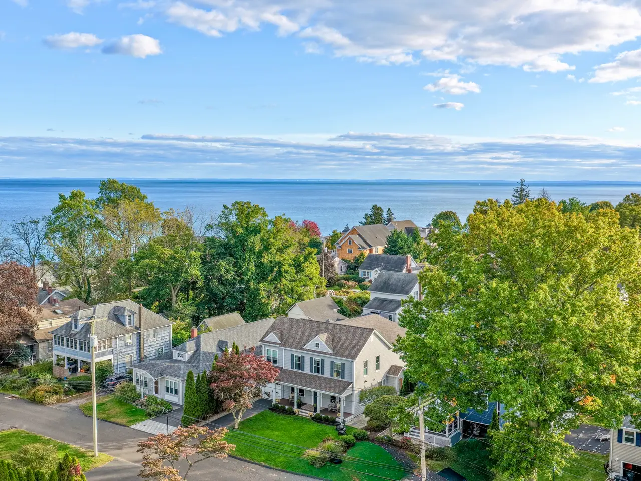 Wake up to sea breezes from Long Island Sound in this beautifully rebuilt 4-bedroom, 2.5bath home in Milford's highly desirable Morningside neighborhood. No flood insurance required! Completely transformed inside and out in 2019, this home blends coastal charm with modern luxury. Sunlight fills the open living spaces, featuring a chef's kitchen with high-end appliances, walk-in pantry, and cozy breakfast nook that opens to the dining and family rooms, perfect for gatherings big or small. A spacious laundry room with built-in storage is conveniently located off the family room. Upstairs, the vaulted primary suite is a private retreat with a spa-inspired bath, freestanding soaking tub, walk-in shower and generous walk-in closet. Three additional bedrooms plus a versatile room with distant water views provide space for guests, an office or nursery. Enjoy morning coffee on the covered front porch or cocktails on the back deck while taking in sunsets over the Sound. Steps from the water and minutes to downtown Milford's beaches, restaurants, and train station, this home perfectly captures the best of coastal Connecticut living.