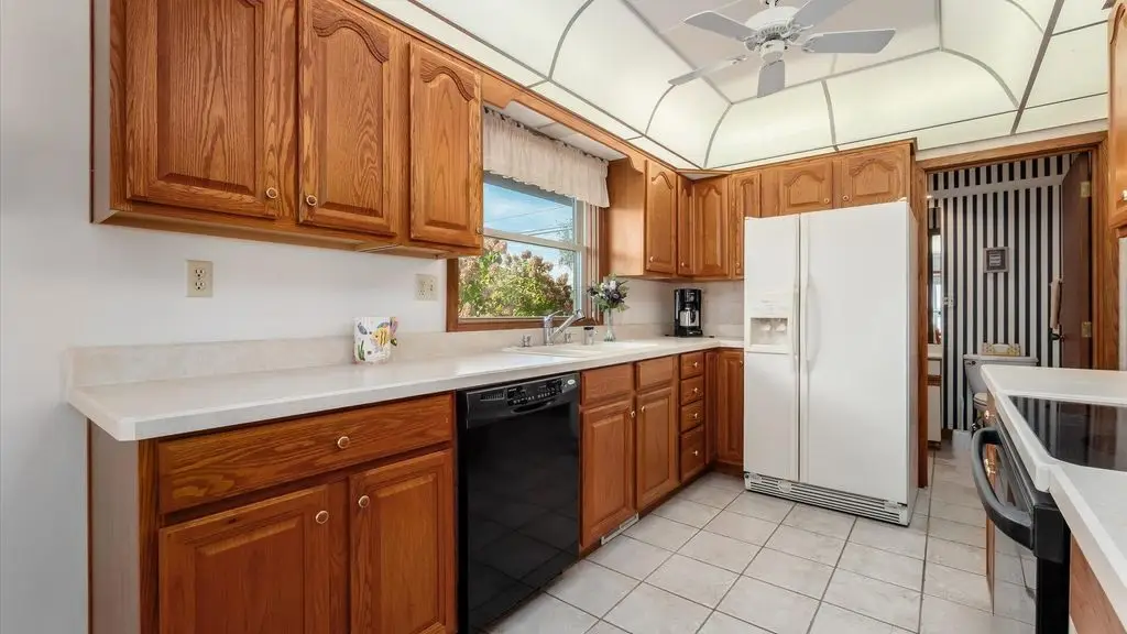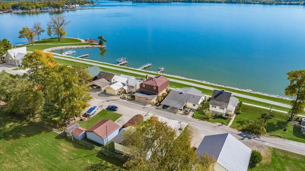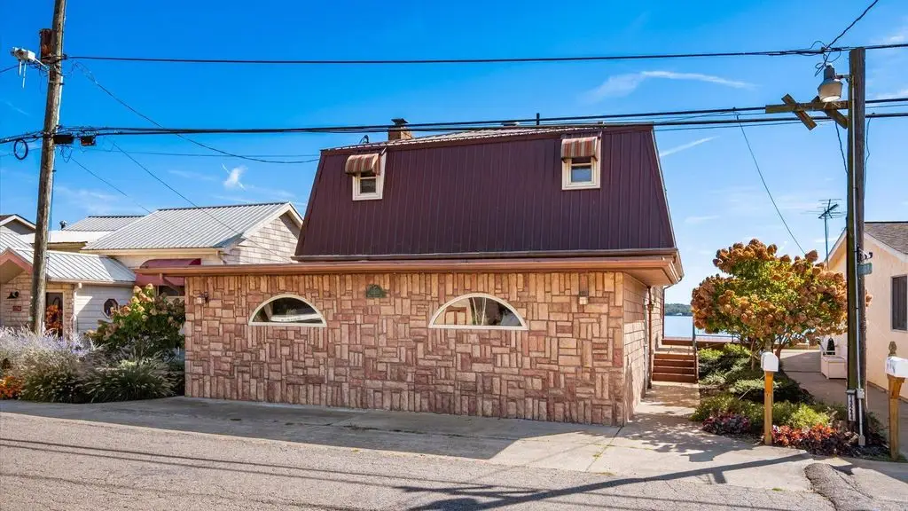 Experience one of the most spectacular views at Buckeye Lake! Located along the highly desirable West Bank, this stunning, 2776 sq ft, 3BR, 3 bath, two-story home offers unobstructed views of the widest stretch of the lake and the largest natural, undeveloped shoreline. Whether you're enjoying morning coffee on the screened porch, cozy evenings by the fireplace, or sunset gatherings with friends, this home is designed for lake living at its best, and it's being offered fully furnished and ready to enjoy immediately! The main lake level features a spacious Great Room with panoramic lake views, an impressive stone fireplace, dining area, and galley kitchen. Step out to the large screened-in porch with composite decking overlooking the water - ideal for relaxing or entertaining. This level also includes a guest bedroom (or den/office) and a full bath. An open staircase leads to the owner's retreat/loft, which overlooks the Great Room and opens to a private three-season room with breathtaking lake views. The upper level also offers a split walk-in closet, full bath, and third bedroom. The intermediate lower level provides a spacious 27'x18' family/media room with a large TV, gas fireplace, daylight windows, and egress door. Below that, the finished basement includes a game and recreation area complete with a full kitchen, bar, game table, and full bath - perfect for entertaining family and friends. Thoughtful updates enhance comfort and peace of mind, including a whole-house generator, new exterior water service line, new metal roofs on the house, garage, and shed, and newer windows, siding, and mechanical systems. The property also features refreshed landscaping and the addition of the second-floor three-season room, creating a harmonious blend of modern convenience and timeless lakefront charm.