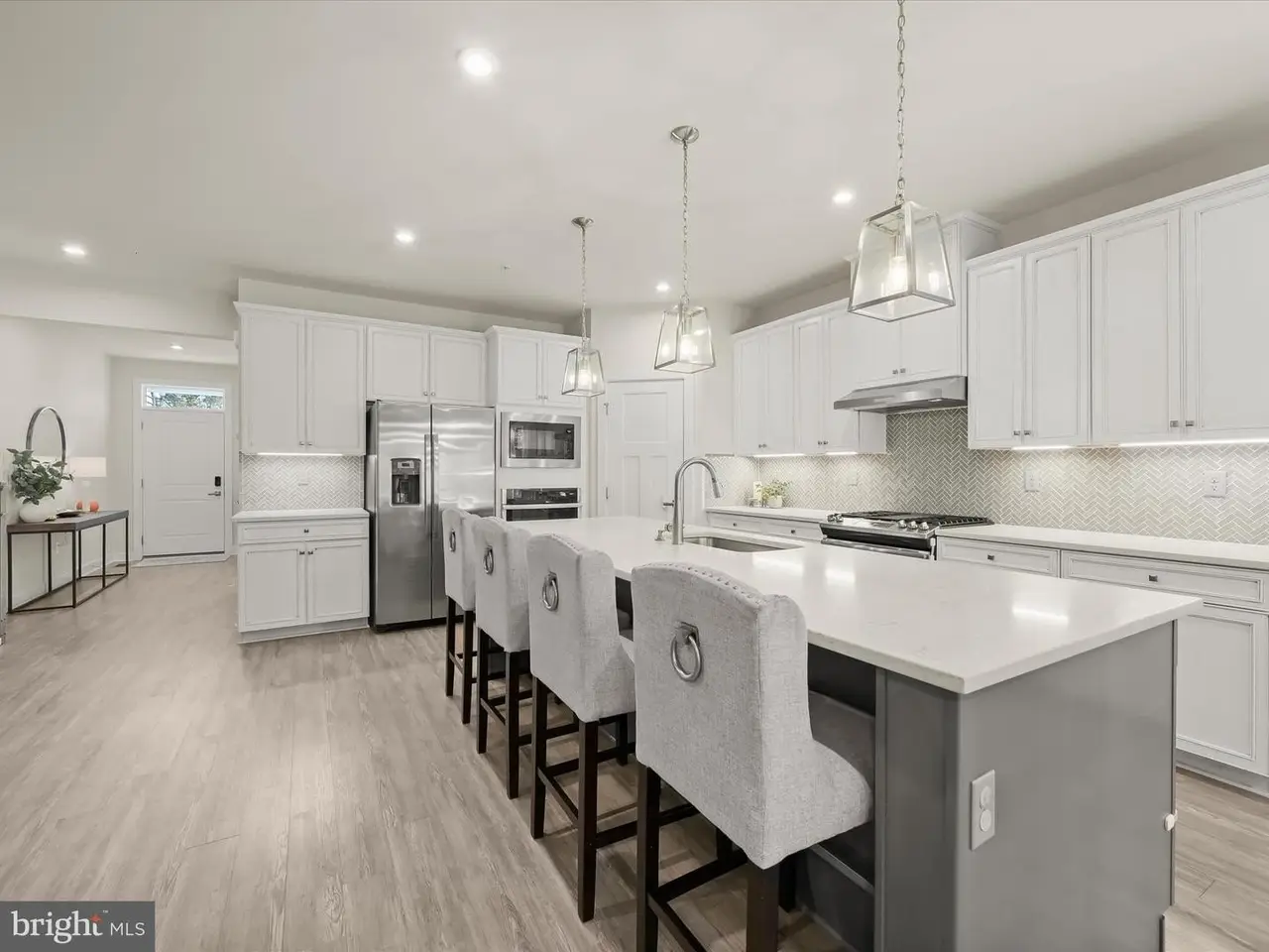 Introducing this exceptional six bedroom, four-and-a-half-bathroom home offering three finished levels of thoughtfully designed living space. Perfectly tucked away on a quiet cul-de-sac in the sought-after Solomons Choice neighborhood, the home backs to lush woods for a peaceful and private setting. A covered front porch extends a warm welcome as you arrive. Step inside the foyer to find a serene neutral color palette, tall ceilings, recessed lighting, and beautiful floors that create an inviting atmosphere. Off the foyer, French doors open to a bright front office that is ideal for working from home or a private study. The open-concept main living areas provide a seamless flow for modern everyday life. The well-appointed kitchen impresses with quartz countertops, a stylish herringbone tile backsplash, 42-inch soft-close cabinets with under-cabinet lighting, a large center island with seating, and a walk-in pantry. Stainless steel appliances include a five-burner gas range and a second wall oven, perfect for entertaining. Sliding glass doors in the dining area lead to a spacious rear deck overlooking the woods, while a floor-to-ceiling stacked stone gas fireplace anchors the living room with warmth and style. A versatile den adds a flexible space for a second office, playroom, or potential guest room. A half bathroom and mudroom area with access to the three-car garage finish the main level. Upstairs, a peaceful primary suite showcases a tray ceiling with crown molding, wooded views, and two walk-in closets. The ensuite bathroom feels like a retreat with a frameless walk-in shower featuring dual shower heads, a dual-sink vanity, and a separate water closet. Down the hall, a second bedroom suite has its own private bathroom. Completing the upper level are three additional bedrooms, a third shared bathroom, and a convenient laundry room. Downstairs, the fully finished lower level expands the living space with a large family room and walk-out stairs to the backyard. A sixth bedroom and fourth full bathroom with a walk-in shower offer privacy for guests, while a spacious utility room provides extra storage or the perfect setup for a home gym or hobby space. Outside, enjoy the tranquil wooded backdrop from the expansive deck that is an ideal spot for entertaining, relaxing, or simply soaking in the serenity of nature.