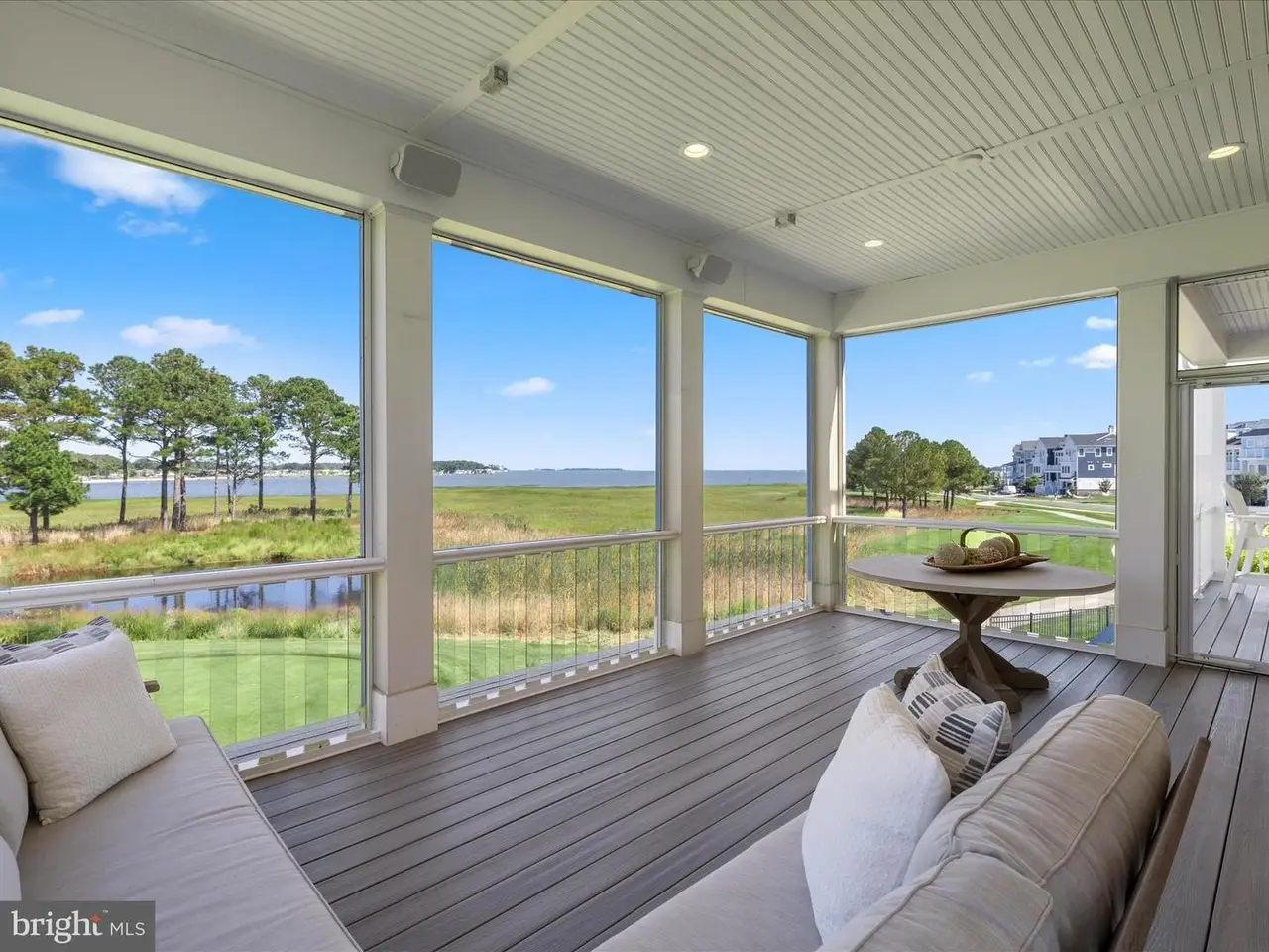 A Sanctuary of Coastal Elegance with Endless Views A one-of-a-kind masterpiece by Echelon Homes, this custom-designed residence marries contemporary coastal style with subtle industrial cues, delivering awe-inspiring luxury at every turn. Nestled within the prestigious Jack Nicklaus Signature Golf Course community of The Peninsula, this extraordinary home rises in the exclusive Sanctuary enclave, perched on the pinnacle of Sand Dollar Drive. Designed to maximize its spectacular position, the residence offers three levels of living with sweeping 360-degree views of the Indian River Bay, Lingo Creek, and the 8th Tee. From the moment you arrive, casual elegance blends seamlessly with quality craftsmanship and coastal sensibility. Wide-plank hardwood floors, shiplap, judges paneling, beamed ceilings, and custom built-ins unify the interiors, while designer lighting adds glimmering sophistication. The main level foyer opens to the great room, where floor-to-ceiling atrium sliders flood the space with natural light, showcase breathtaking views, and extend effortlessly to an expansive balcony deck. The living room is anchored by a soaring quartz-clad fireplace, accented with black steel and flanked by elegant glass-and-wood display cabinets. An open-beamed ceiling heightens the drama, creating a stunning focal point. This central gathering space flows into the gourmet kitchen and dining area, a showcase for both entertaining and daily life. Quartz surfaces span generous work areas and the oversized center island, complete with abundant storage, beverage and wine refrigerators, deep undermount sink, and built-in oven. A striking glass tile backsplash highlights the GE Monogram six-burner range with custom vent hood, while a suite of professional-grade stainless appliances completes the space. A walk-in pantry with custom floor-to-ceiling storage ensures both beauty and function. Dine casually at the breakfast bar, host formal meals in the adjacent dining room, or step through sliders to the screened porch, where dazzling sunsets over the bay make every evening extraordinary. This level also offers a refined home office with balcony access, a stylish hall bath, and the first of five bedrooms, complete with ensuite. Ride the elevator to the primary suite retreat, where panoramic views greet you from bed beneath a soaring cathedral ceiling of shiplap and beams. The spa-inspired ensuite rivals a five-star resort, with two vanities, soaking tub, walk-in shower, private water closet, and dual walk-in closets with abundant storage. Two additional guest suites, each uniquely styled with private ensuites, one with balcony access, ensure comfort for family and friends. A second-floor laundry adds convenience, while a welcoming family room with balcony access serves as the perfect gathering spot. From here, a staircase leads to a bonus loft and the crowning jewel of the home: a rooftop terrace offering unrivaled 360-degree views. The lower level, filled with natural light, high ceilings, and precise millwork, is designed for entertaining. A game and lounge room, sizable guest bedroom, hall bath, second laundry, and mudroom entry complement the oversized two-car garage and additional third garage. Beyond the garages, a pool bath leads to the outdoor oasis. Here, a hardscaped paradise awaits: heated pool, spa, firepit, lounging areas, covered bar patio, and a screened pavilion, all perfectly positioned to embrace the home's remarkable setting. As a resident of The Peninsula, you'll enjoy world-class amenities, including gated security, a stunning clubhouse, the Jack Nicklaus golf course and driving range, a state-of-the-art fitness center with indoor, outdoor, and wave pools, hot tubs, saunas, spa rooms, tennis and pickleball courts, dog park, community garden, nature center, bay beach, fishing pier, and miles of walking trails. Come home to comfort, luxury, and resort living at its finest.