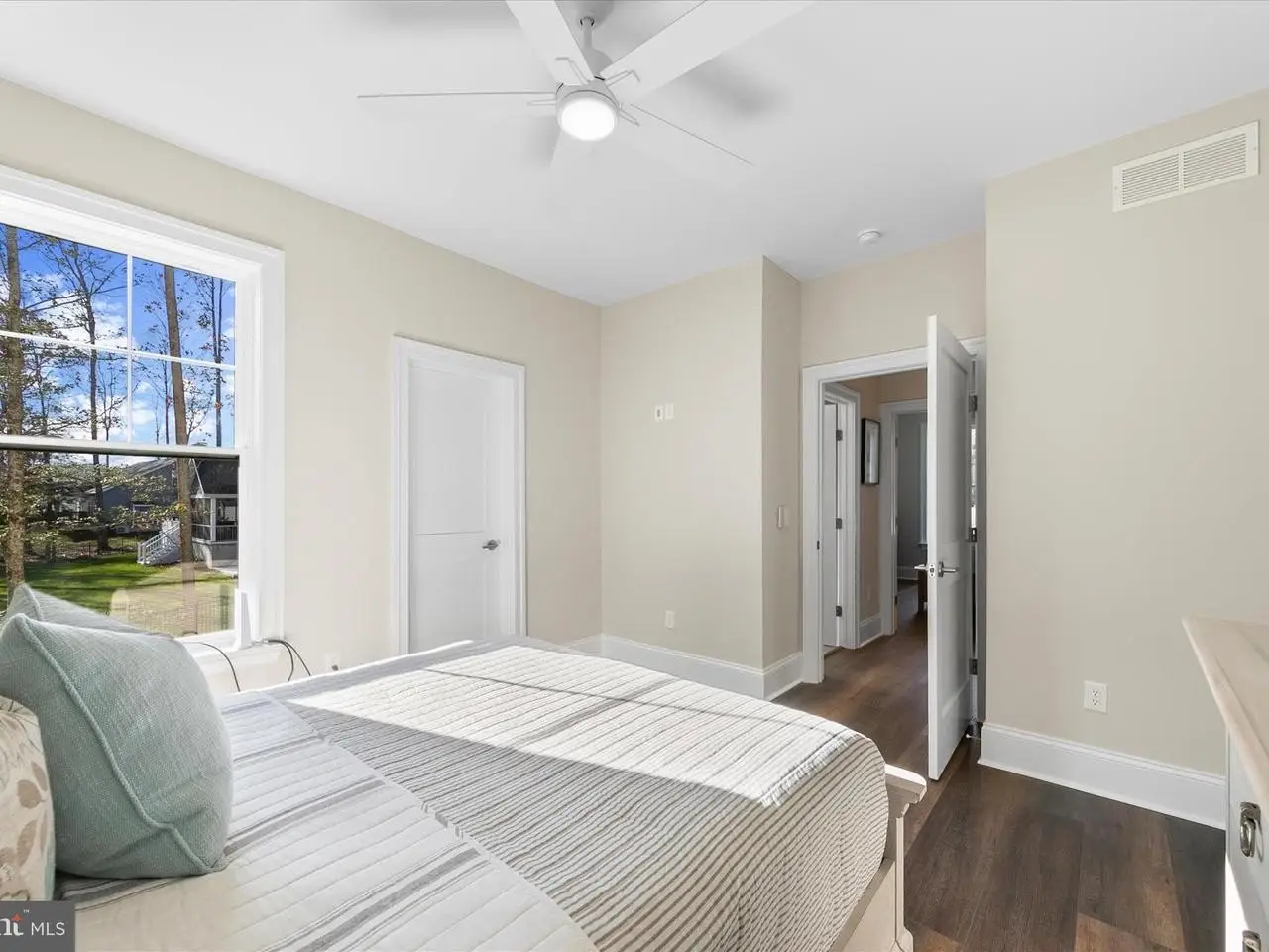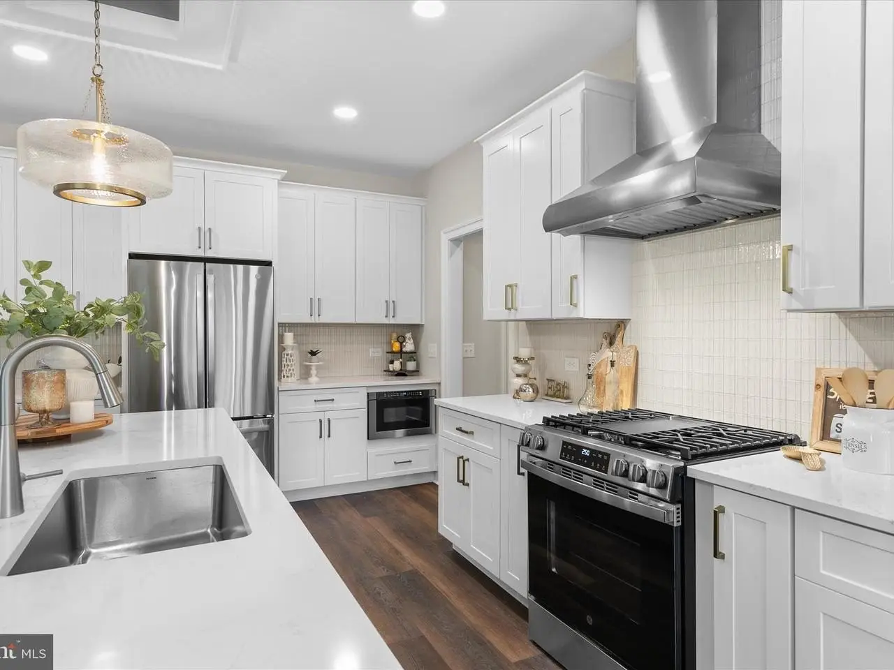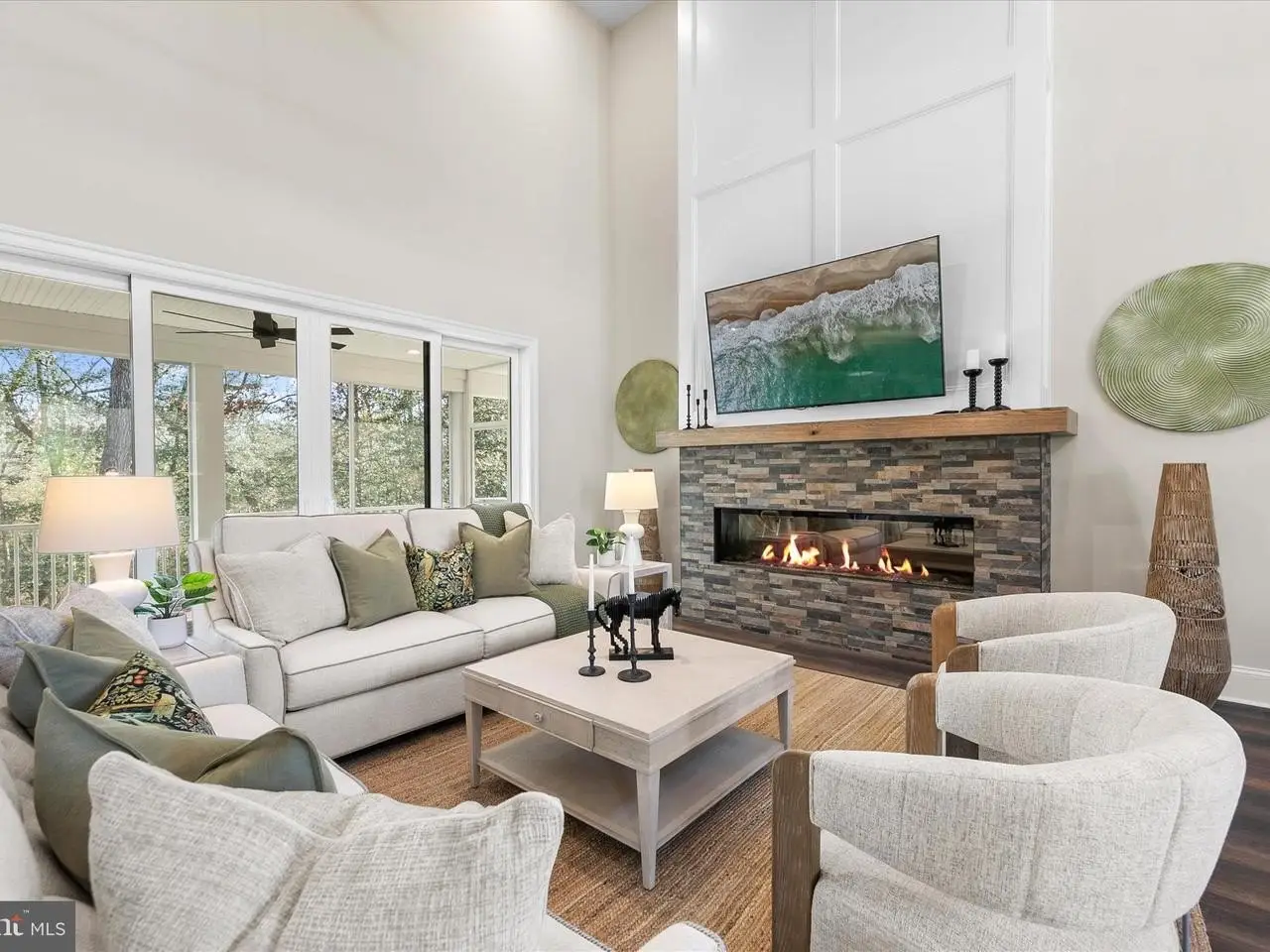 Introducing 24102 Ingram Drive, an architectural masterpiece crafted by Garrison Homes. This distinguished Georgetown model sits on a .82-acre homesite, privately backed by mature trees and designed to impress from every angle. The exterior blends modern and coastal elements with multiple roof peaks, a mix of horizontal, vertical, and shake siding accented by stone, and striking metal roof details. A sweeping walkway leads to the covered front porch, anchored by stately columns and double entry doors framed with sidelights, setting an inviting tone for what awaits inside. Step through the doors into a beautiful two-story great room featuring a sleek linear gas fireplace wrapped in stone, accented by a crisp white accent wall that carries to the ceiling. A dramatic wall of glass doors opens to the screened porch and composite rear deck, perfectly framing the wooded backdrop and flooding the interior with natural light. The open floor plan transitions effortlessly into a designer kitchen that is both functional and beautiful. A quartz island, illuminated by elegant pendant lighting, offers comfortable seating for casual meals and gatherings. The space is equipped with a full suite of stainless-steel appliances, including a five-burner gas range with a striking range hood, complemented by 42-inch soft-close cabinetry, detailed trim, and a stylish tile backsplash. Luxury vinyl plank flooring extends throughout the main level, unifying each space with a warm, contemporary aesthetic. The adjacent dining area, highlighted by coffered ceilings and a statement chandelier, provides the perfect atmosphere for entertaining. Just off the kitchen, a deep walk-in pantry offers ample storage, while a laundry room with cabinetry and a sink adds everyday convenience. A nearby mudroom with hooks creates an ideal drop zone for coats, bags, and shoes. The primary suite is a showpiece of craftsmanship and serenity, highlighted by a cathedral ceiling with white shiplap ceiling, dual walk-in closets, and a spa-like bath showcasing two vanities, a freestanding soaking tub beneath a chandelier, and a walk-in subway-tiled shower with dual showerheads and niches. Three additional bedrooms, each with walk-in closets and ceiling fans, provide comfortable accommodations on the main level. The side-entry two-car garage includes a separate exit door and a storage closet for convenience. Outside, the property is enhanced by professional landscaping with an irrigation system to keep it lush and green. The lower level offers endless potential with a full footprint of the home, walk-out access through glass sliding doors to a patio, and rough-in plumbing ready for customization. A third upper-level space with its own rough-in and two rooms adds flexibility for a future home office, gym, or guest retreat. Outside, the Ingrams Point community offers enchanting nature trails weaving through woodlands and along serene streams, as well as parks and open spaces, providing limitless opportunities for outdoor recreation. Indulge in nearby dining, shopping, and entertainment, while relishing the convenience of Delaware beaches and coastal amenities just a short drive away. Do not miss this rare opportunity to immerse yourself in the pinnacle of luxury living in the breathtaking Garrison Homes Georgetown model at Ingrams Point. Schedule your exclusive private tour today and embark on a journey of unparalleled refinement and sophistication.