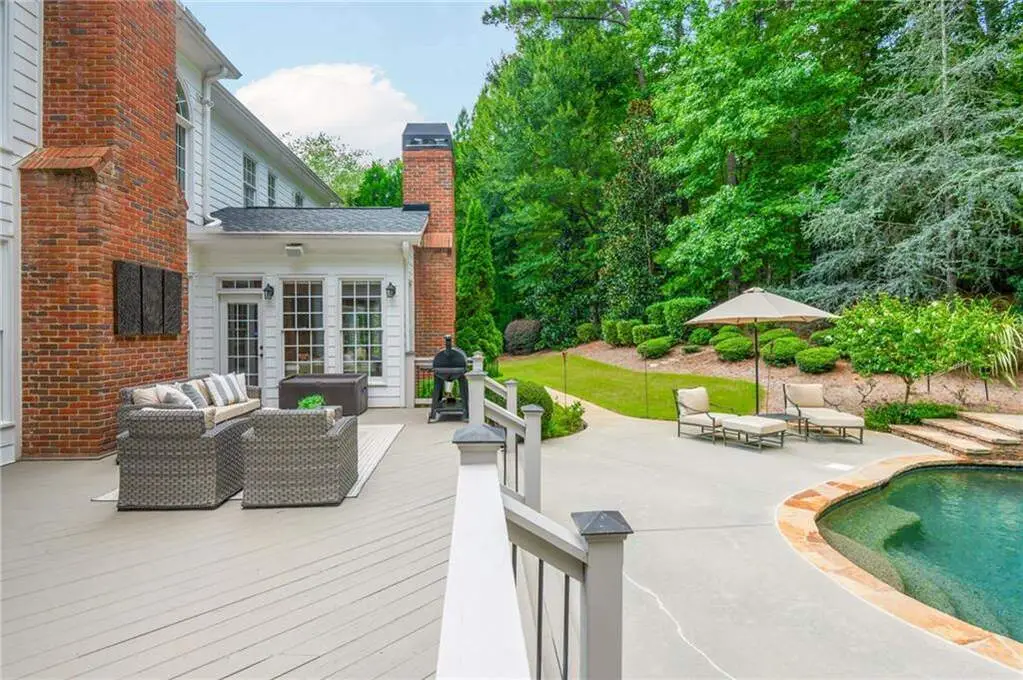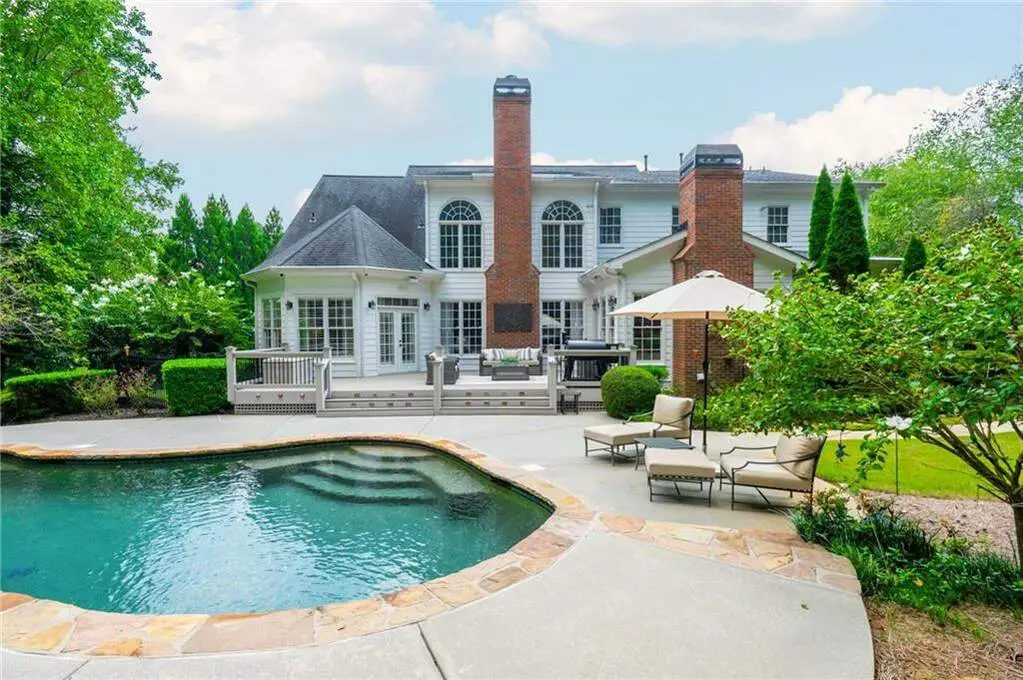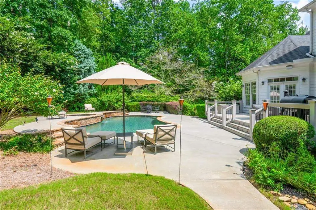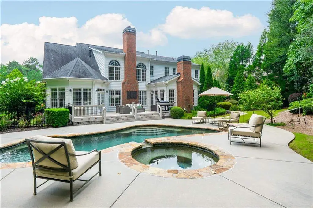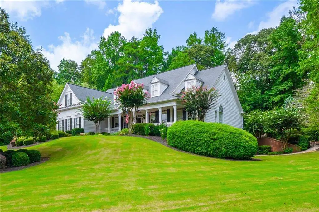 Luxury living in the gated section of White Columns Country Club - one of Milton's most prestigious communities. Discover timeless elegance and southern charm in this six-bedroom, five-and-a-half-bathroom estate perfectly positioned on a beautifully landscaped 1.27 acre lot in the gated section of White Columns Country Club. This home boasts a seamless blend of sophistication and functionality for the most discerning of buyers and has been immaculately maintained and upgraded. Charming front porch welcomes you into the unique floor plan designed for convenience and flexibility, featuring two bedrooms on the main level, including the spacious primary suite with a spa-like bathroom and large walk-in closet. The sun-filled main level offers soaring ceilings, inviting living spaces, a dedicated office, and a chef's kitchen that opens to the cozy keeping room and casual dining area. Step outside to your own backyard retreat - a walk-out pool and spa with private wooded views, ideal for entertaining or quiet relaxation. The upper level features four spacious bedrooms with two Jack and Jill bathrooms. The finished terrace level expands your finished living space with a recreation room, wet bar, living room, full bathroom, and custom touches throughout. Three-car garage provides ample storage and parking. Enjoy being just minutes away from nearby schools and popular shopping and dining options in popular Crabapple and Downtown Alpharetta. This home truly offers the best of both worlds: a luxurious, private retreat with resort-style amenities, all within a vibrant country club community.