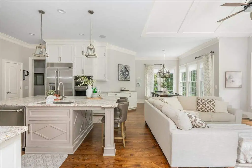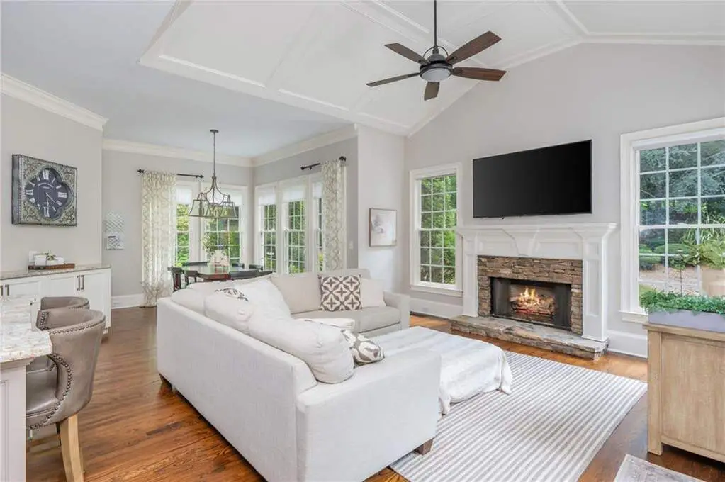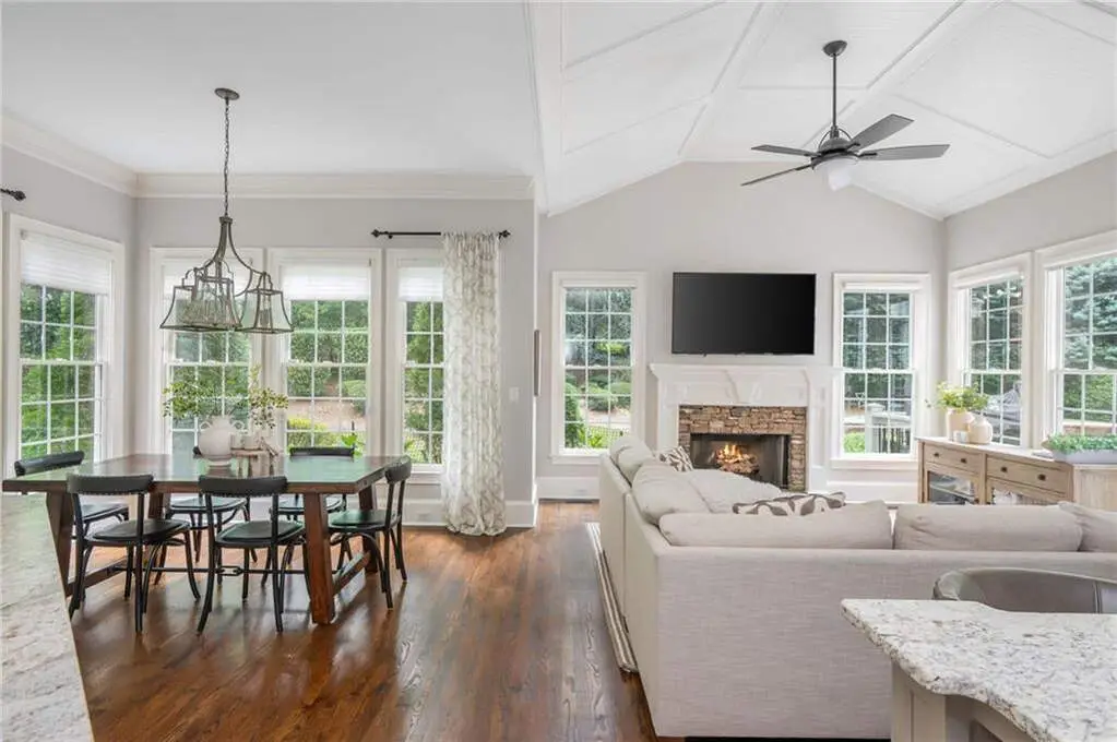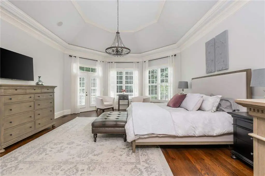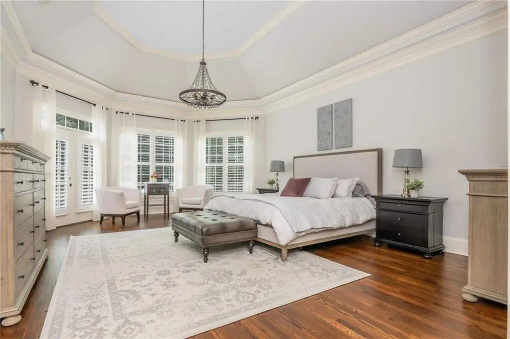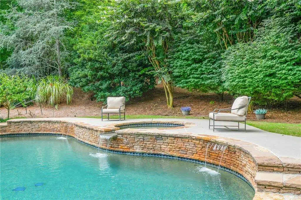 Luxury living in the gated section of White Columns Country Club - one of Milton's most prestigious communities. Discover timeless elegance and southern charm in this six-bedroom, five-and-a-half-bathroom estate perfectly positioned on a beautifully landscaped 1.27 acre lot in the gated section of White Columns Country Club. This home boasts a seamless blend of sophistication and functionality for the most discerning of buyers and has been immaculately maintained and upgraded. Charming front porch welcomes you into the unique floor plan designed for convenience and flexibility, featuring two bedrooms on the main level, including the spacious primary suite with a spa-like bathroom and large walk-in closet. The sun-filled main level offers soaring ceilings, inviting living spaces, a dedicated office, and a chef's kitchen that opens to the cozy keeping room and casual dining area. Step outside to your own backyard retreat - a walk-out pool and spa with private wooded views, ideal for entertaining or quiet relaxation. The upper level features four spacious bedrooms with two Jack and Jill bathrooms. The finished terrace level expands your finished living space with a recreation room, wet bar, living room, full bathroom, and custom touches throughout. Three-car garage provides ample storage and parking. Enjoy being just minutes away from nearby schools and popular shopping and dining options in popular Crabapple and Downtown Alpharetta. This home truly offers the best of both worlds: a luxurious, private retreat with resort-style amenities, all within a vibrant country club community.