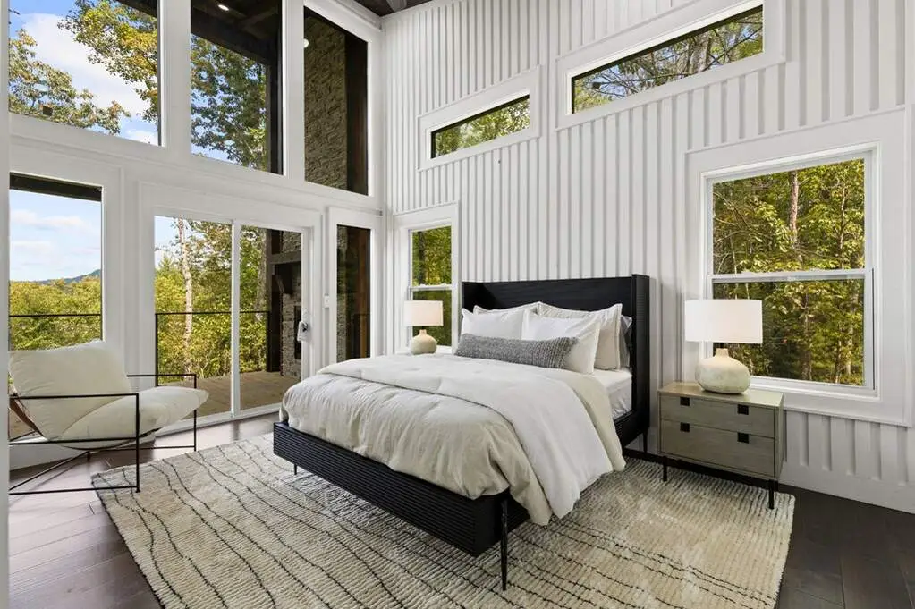 Modern Mountain Luxury Home with Panoramic Long-Range Views This 4-bedroom, 3-bath contemporary retreat blends modern mountain living with high-end luxury and investment potential. Perched high to capture breathtaking long-range mountain views, it offers style, comfort, and flexibility for vacation rental, short-term rental, or full-time residence. The open-concept design showcases a striking mix of metal, steel, and concrete accents, soaring ceilings, and expansive walls of glass that flood the interiors with natural light while framing the scenery. The gourmet chef's kitchen features high-end appliances, custom cabinetry, and dramatic granite waterfall countertops designed for both everyday cooking and entertaining. A luxury wine closet stores and displays your collection with elegance. Two oversized levels of outdoor decks extend the living space, creating seamless indoor-outdoor flow for alfresco dining, entertaining, or relaxing while taking in the views. Primary and guest suites offer privacy and spa-like baths. Located just minutes from Blue Ridge, Ellijay, and the Ocoee River, this home combines architectural excellence, panoramic vistas, and strong rental potential into one turn-key modern mountain retreat perfectly suited for discerning buyers looking for a statement property in the North Georgia mountains.