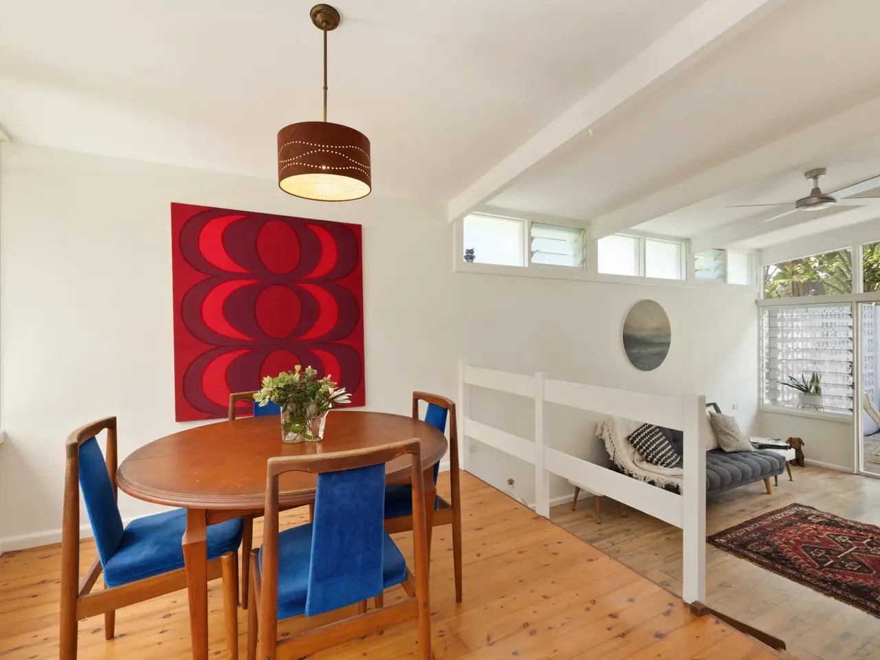 Tucked into a serene pocket of Mona Vale, this rare 1962 Pettit & Sevitt residence captures the essence of mid-century coastal living, defined by strong architectural lines and a deep connection to the surrounding landscape. Framed by lush greenery and elevated to harness sunlight and breezes from every direction, the home unfolds across striking split-level interiors with vaulted ceilings, wide glazing and an effortless sense of flow. Original pine floorboards, louvred windows and natural cross-ventilation speak to timeless design principles that continue to resonate today, while thoughtful modern updates enhance everyday comfort. Two distinct living zones provide flexibility for family life, opening to a covered entertaining terrace to the front, or a leafy west-facing backyard with established gardens and pergola-covered terrace. With three generous bedrooms, plus a flexible fourth bedroom or study, along with a single lock-up garage, this classic home balances architectural character, lifestyle ease and privacy just moments from Pittwater, Mona Vale Beach, local schools and the vibrant village centre. • Iconic 1962 Pettit & Sevitt home in tranquil Mona Vale setting • Distinctive mid-century modern design with soaring vaulted ceilings • Split-level interiors with sunken lounge and defined dining zone • Light-filled interiors are framed by wide glazing and leafy views • Original pine floorboards, louvred windows, great cross ventilation • Modern kitchen with stone benches, gas cooktop and dishwasher • Rear entertainer's terrace and west-facing garden with veggie beds • Front patio and east-facing garden bathed in morning sunlight • Three generous bedrooms, main with ensuite and built-in robes • Flexible fourth bedroom or office with wet bar and built-in robes • Stylish modern main bathroom with frameless glass shower • Single lock-up garage, driveway parking, serene tree-lined street