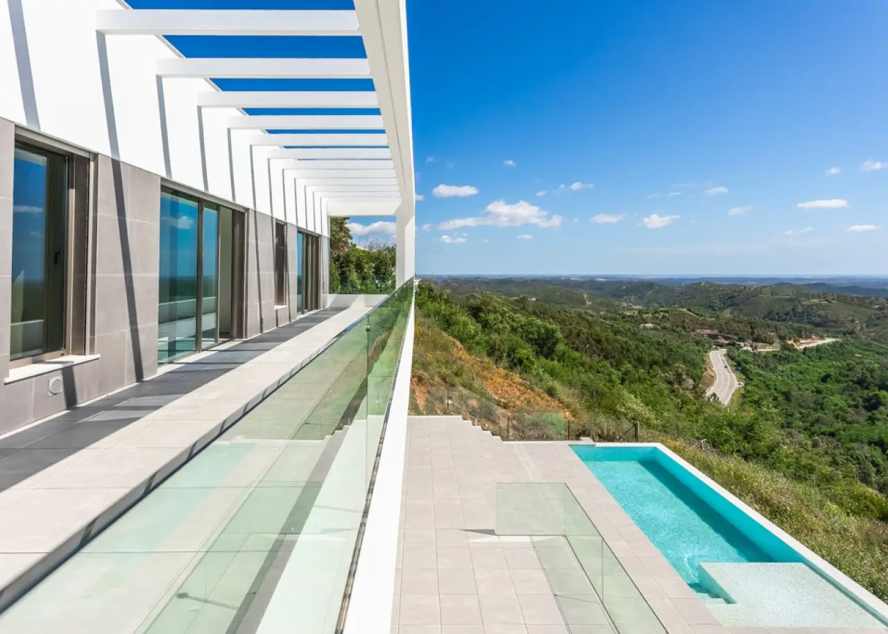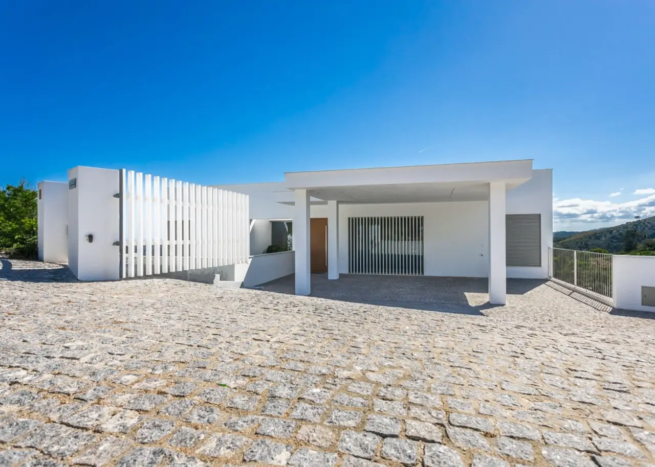 This fantastic three-bedroom luxury villa, all en suite, is located very close to the Monchique thermal baths, with stunning views of the mountains and the coast on the horizon. With a modern and unique architecture, spread over two floors, all the rooms are designed to take advantage of the wonderful view and the existing outdoor spaces have, like the interior, maximum comfort and harmony. On the upper floor, we find the three spacious suites, with access to the spectacular balcony that runs the width of the house. Going downstairs, or using the elevator, we find an open-plan kitchen, living room and dining room with fantastic areas, with sophisticated details and finishes in every corner. Outside, in addition to the generous terrace, there is also a surprising infinity pool and a spectacular garden that values privacy and tranquility and fits in perfectly with the landscape and beauty outside. Outside the villa, there is private parking for up to four cars. This villa is set in an area of true natural beauty, unique in the Algarve region, surrounded by greenery, just 15 minutes from the region's best beaches, and around 45 minutes from Faro International Airport. CHARACTERISTICS: Plot Area: 2 000 m2 | 21 528 sq ft Area: 300 m2 | 3 229 sq ft Deployment Area: 215 m2 | 2 314 sq ft Bedrooms: 3 Bathrooms: 4 Energy efficiency: A+ FEATURES: 3 bedrooms Fully equipped kitchen Balcony / Terrace Elevator Garden Infinity pool Private parking