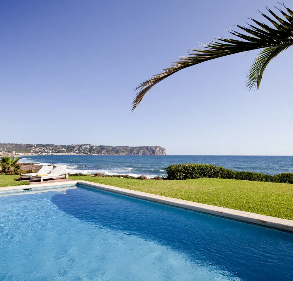 Exclusive villa with a front-line position in the prestigious area of Montañar II, with direct access to the sea and with fantastic views over Jávea Bay. The property stands on a 1,800 sq.m plot and the living space is spread over one floor. Of modern style, with straight lined design, the home comprises of very comfortable and practical living spaces, at only a few minutes stroll from all amenities and several leisure facilities at Jávea's Arenal beach. The villa features a dining room with tall panoramic windows which frame fantastic views of the sea. Outdoors there is a swimming pool and a BBQ area. The property further comprises 4 double bedrooms with walk-in wardrobes, 3 family bathrooms, a fully-equipped kitchen with an office area and with access onto the outdoor patio and the utility room. The residence enjoys a privileged location, surrounded by beautiful gardens filled with Mediterranean plants and palm trees. Next to the pool there is an outdoor terrace with awnings, from which one can enjoy the unbeatable views and the Mediterranean sea breeze. Other notable features include; A/C, a large garage and an alarm system. All the rooms have wooden flooring and the lounge has stone walls, a feature typical of properties in Jávea, creating a very welcoming atmosphere. From the terrace one can enjoy the impressive views over the sea. This is one of the most exclusive front-line homes in Jávea with direct access to the sea.