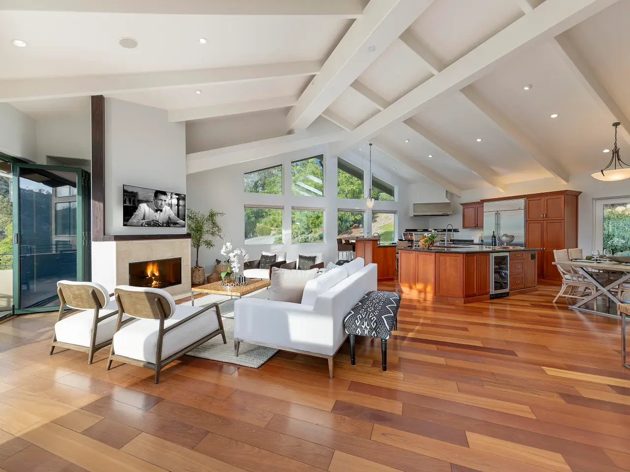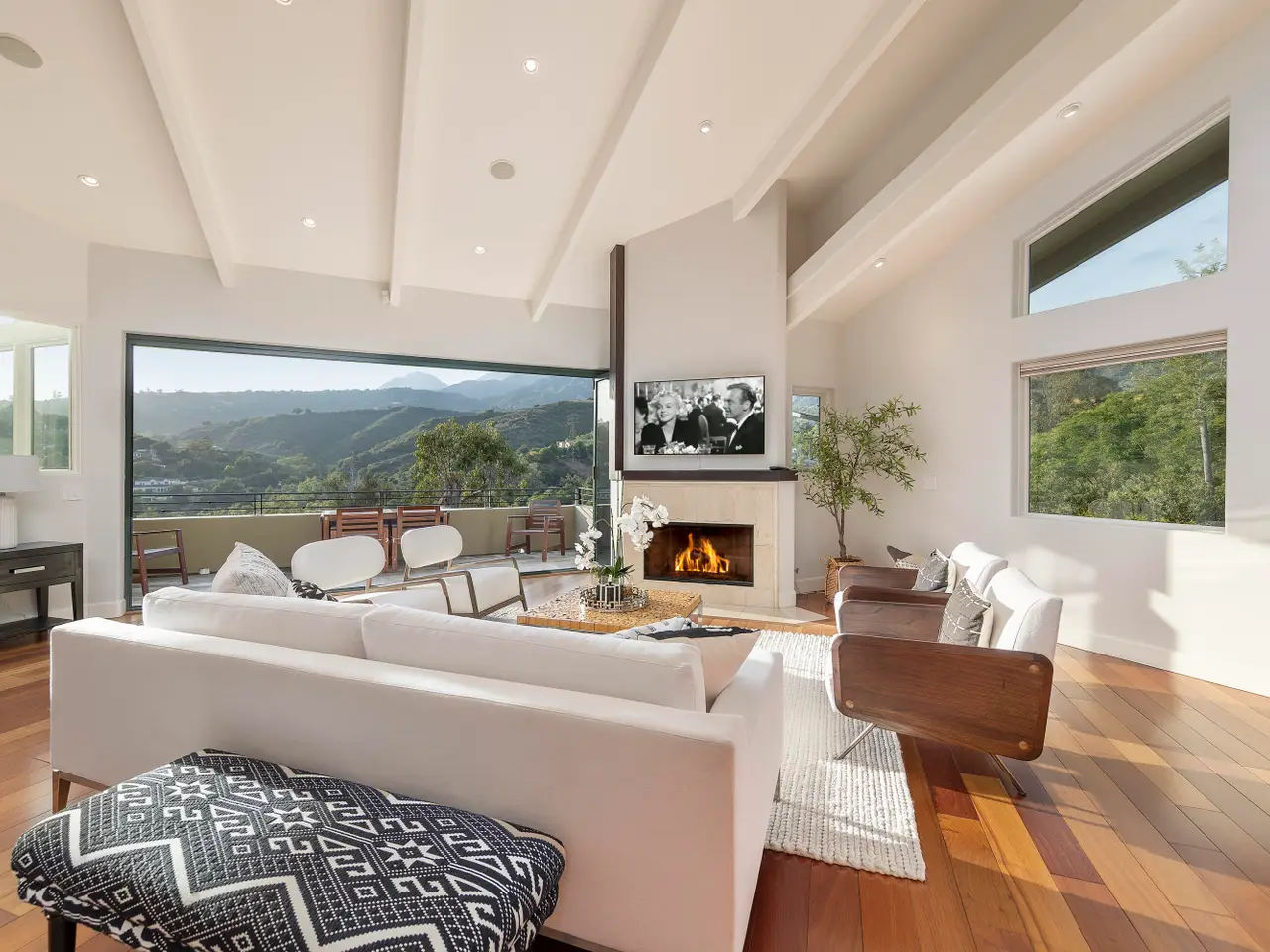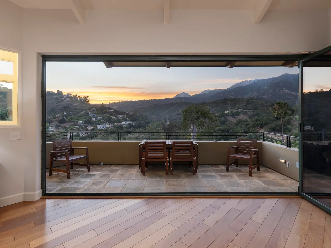 Situated above Sycamore Canyon on Montecito's western edge, 62 Canon View is a stunning contemporary retreat that offers privacy, quality, and breathtaking mountain and canyon views. Located in the Eucalyptus Knolls community and within the award-winning Cold Springs School District, this gorgeous four bedroom, three- and one-half bath home on a private one-acre parcel provides a serene sanctuary just minutes from both Coast Village Road and Downtown Santa Barbara. Quality construction is evident from the moment one passes through the large custom copper front door. Views abound from nearly every room, deck, and patio. The open floor plan seamlessly integrates the main living areas, including the kitchen, dining, and living rooms, all of which feature soaring ceilings and hardwood floors. A cozy fireplace anchors the living room, and a dramatic six-panel bi-fold glass wall perfectly frames the stunning view of Cathedral Peak. The luxurious primary suite is a private retreat, complete with its own view deck, fireplace, vaulted ceilings, multiple walk-in closets, a spa-like jetted tub, and a glass enclosed shower. The additional three bedrooms feature French doors which provide access to the yard and allow in copious amounts of natural light. Designed with both relaxation and entertainment in mind, the outdoor spaces have been meticulously upgraded with beautifully hardscaped walls, stairways, and rock features. Fruit trees, custom low-voltage landscape lighting and irrigation enhance the lush landscaping, while paver walkways and turf create inviting yet drought tolerant outdoor living areas. Modern amenities elevate the home's comfort and efficiency, including multi-zone heating and air conditioning, high-speed Ethernet cabling, and WiFi-enabled LED lighting with dimmer switches. Remote-controlled Hunter Douglas shades provide effortless privacy, and built-in infrared outdoor heaters on the upstairs terrace allow for year-round enjoyment. A top-of-the-line whole-house reverse osmosis system ensures premium water quality at every fixture and appliance, while Nest thermostats, smart smoke and carbon monoxide alarms, and Arlo high-definition security cameras offer state-of-the-art convenience and peace of mind. Additional upgrades include an enhanced built-in sound system, high-flow HVAC vents for efficient heating and cooling, an EV charger, and smooth, WiFi-enabled garage door openers. The oversized two-car garage offers ample storage and a workshop area, while the flexible floor plan presents a convenient dual-living option. Combining contemporary elegance, cutting-edge features, and an unbeatable Montecito location, 62 Canon View is a rare opportunity to experience the best of canyon living.