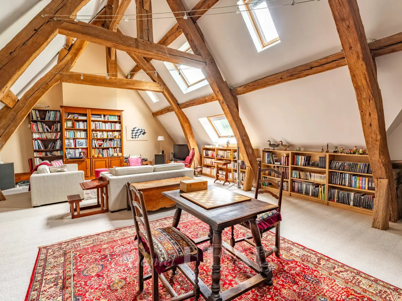 This entirely renovated property dating back to the 16th century is set in an enclosed walled garden in the heart of Montfort l’Amaury. Oozing with period charm, it includes an over 100 sqm living/reception room, a semi open-plan kitchen, a pantry, an extensively glazed conservatory opening onto a paved courtyard, a study and a shower room. Upstairs are a spacious suite with a bathroom and dressing room, two further bedrooms, a shower room, a utility room, and a convertible near 85 sqm room. With a vaulted cellar.